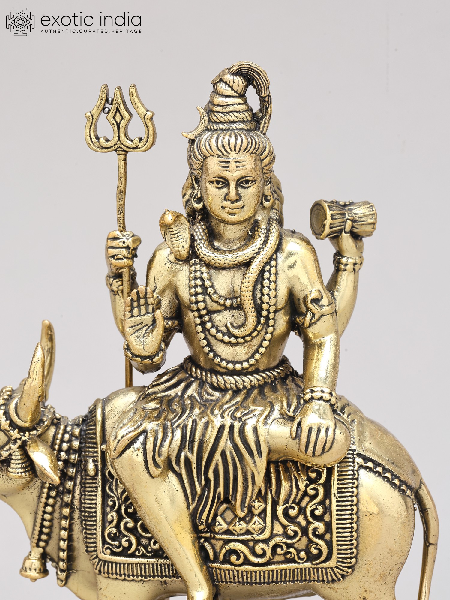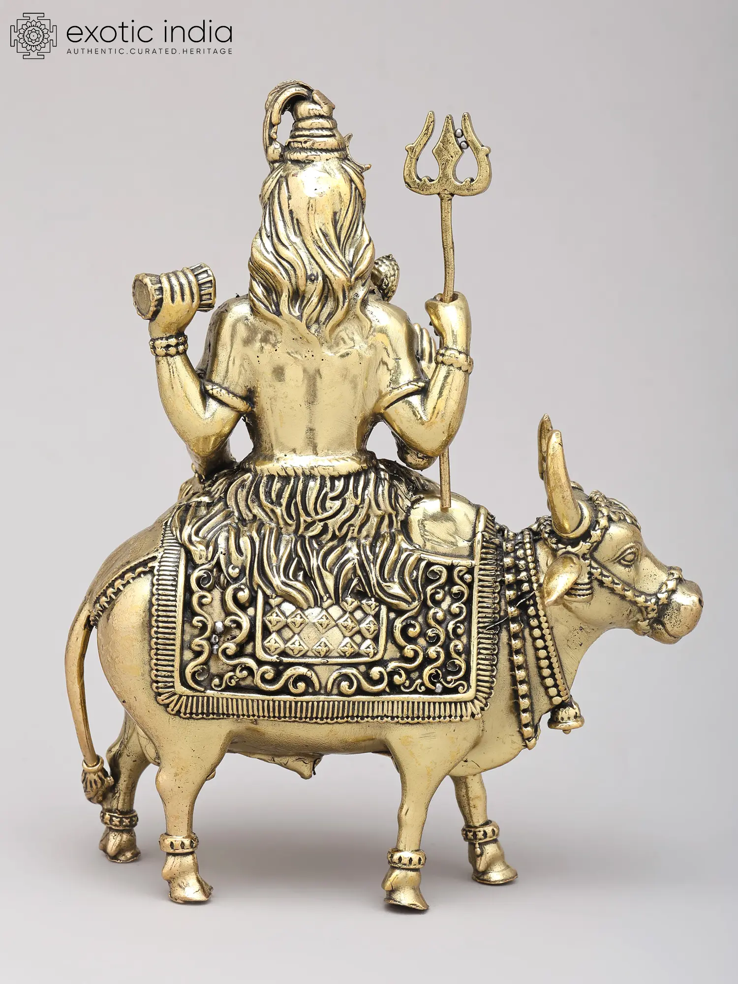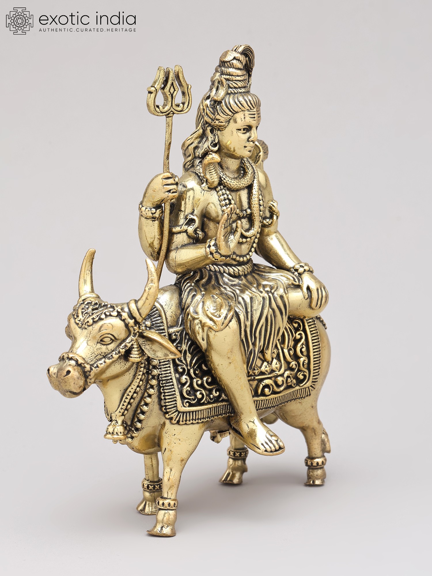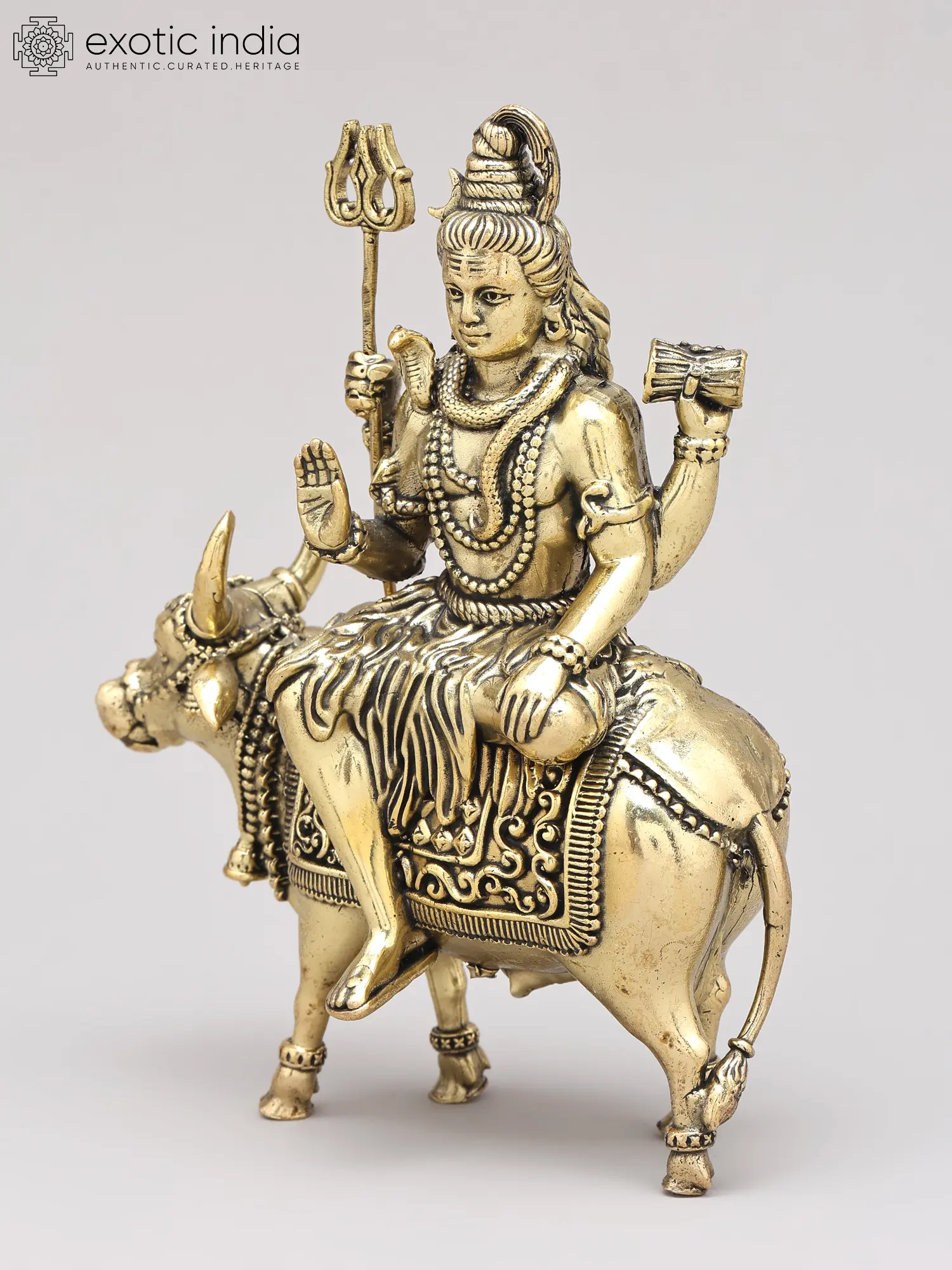 9" Brass Superfine Lord Shiva with Nandi and Shivalinga on Wood Base