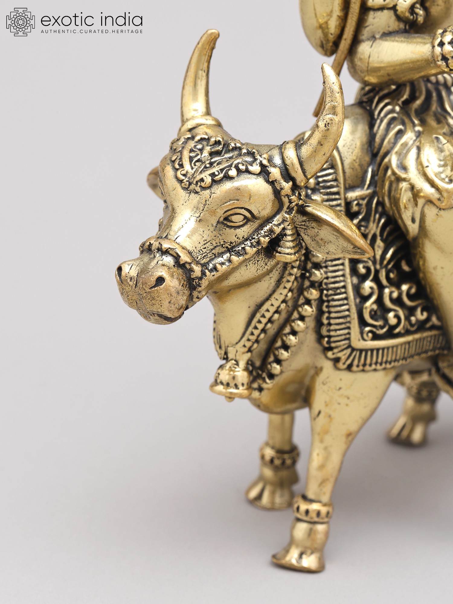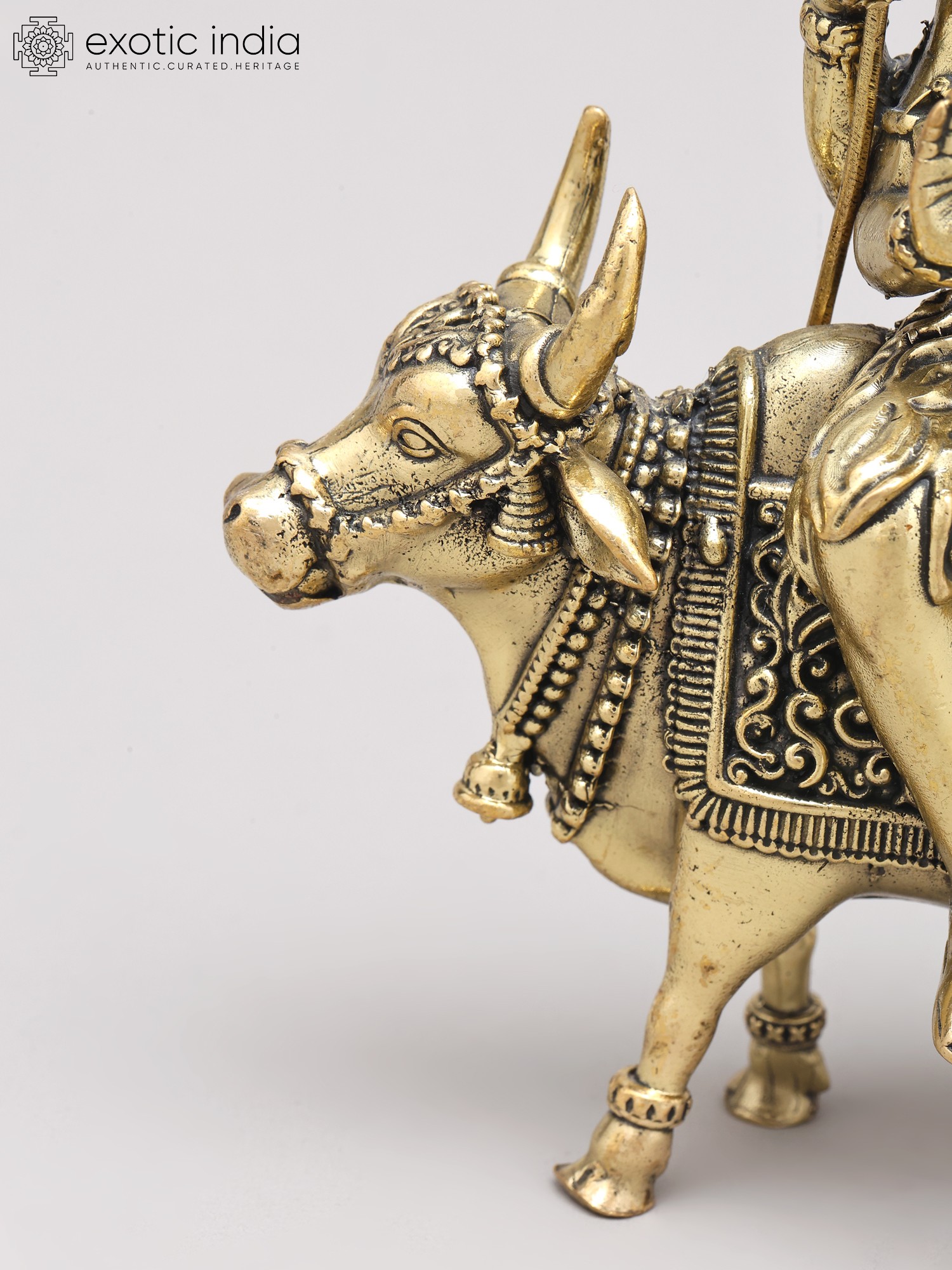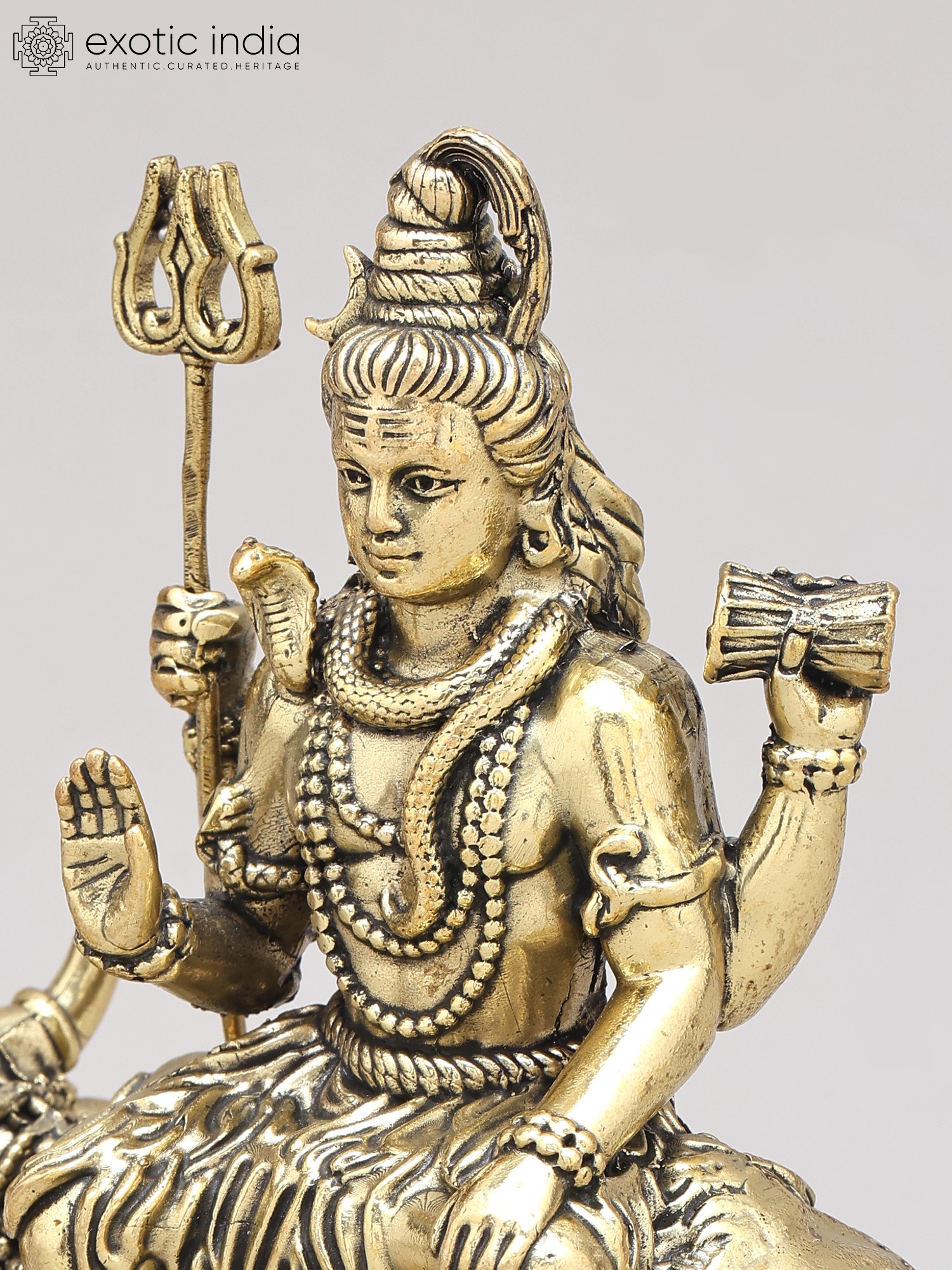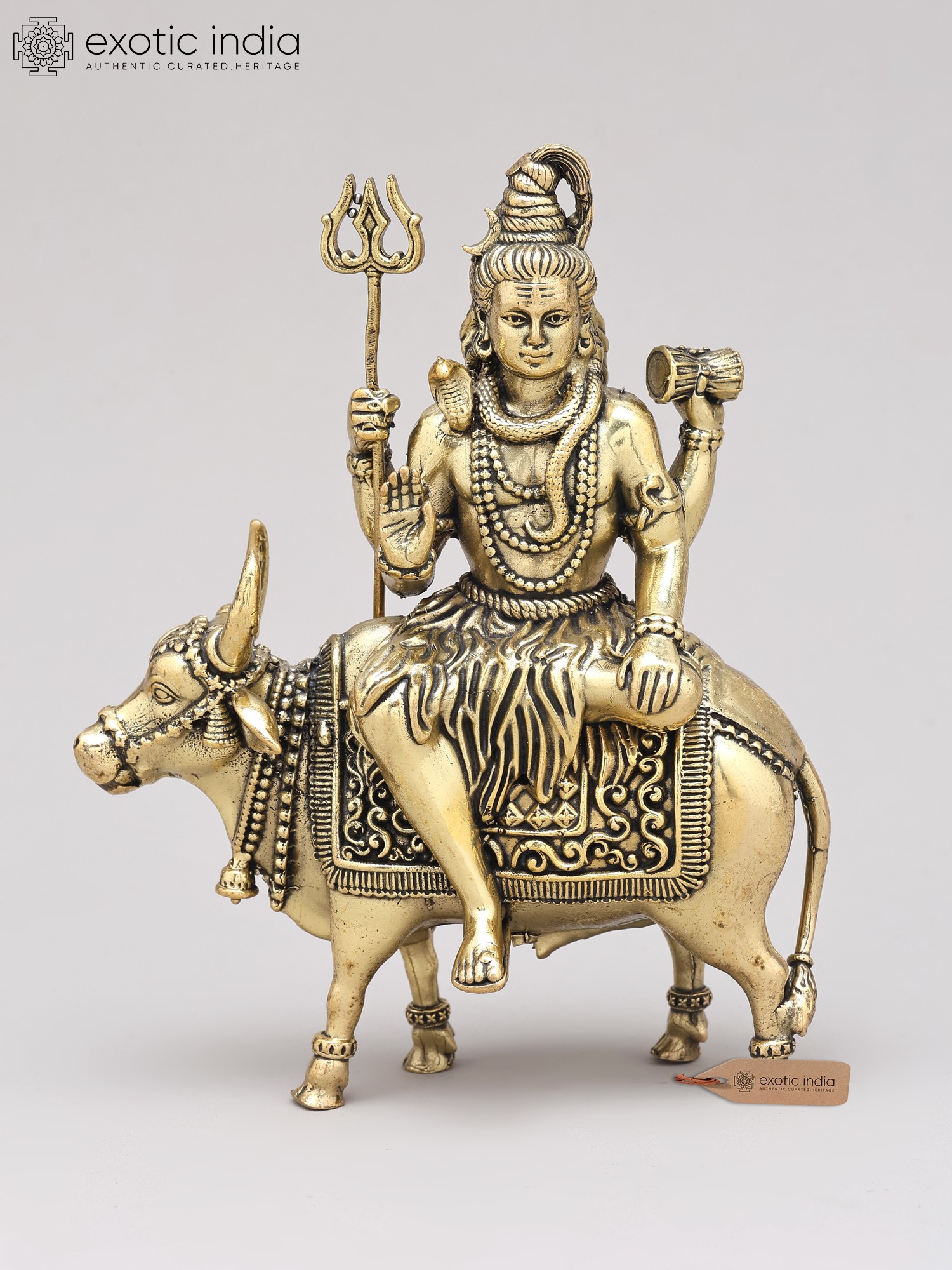 9" Brass Superfine Lord Shiva with Nandi and Shivalinga on Wood Base