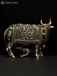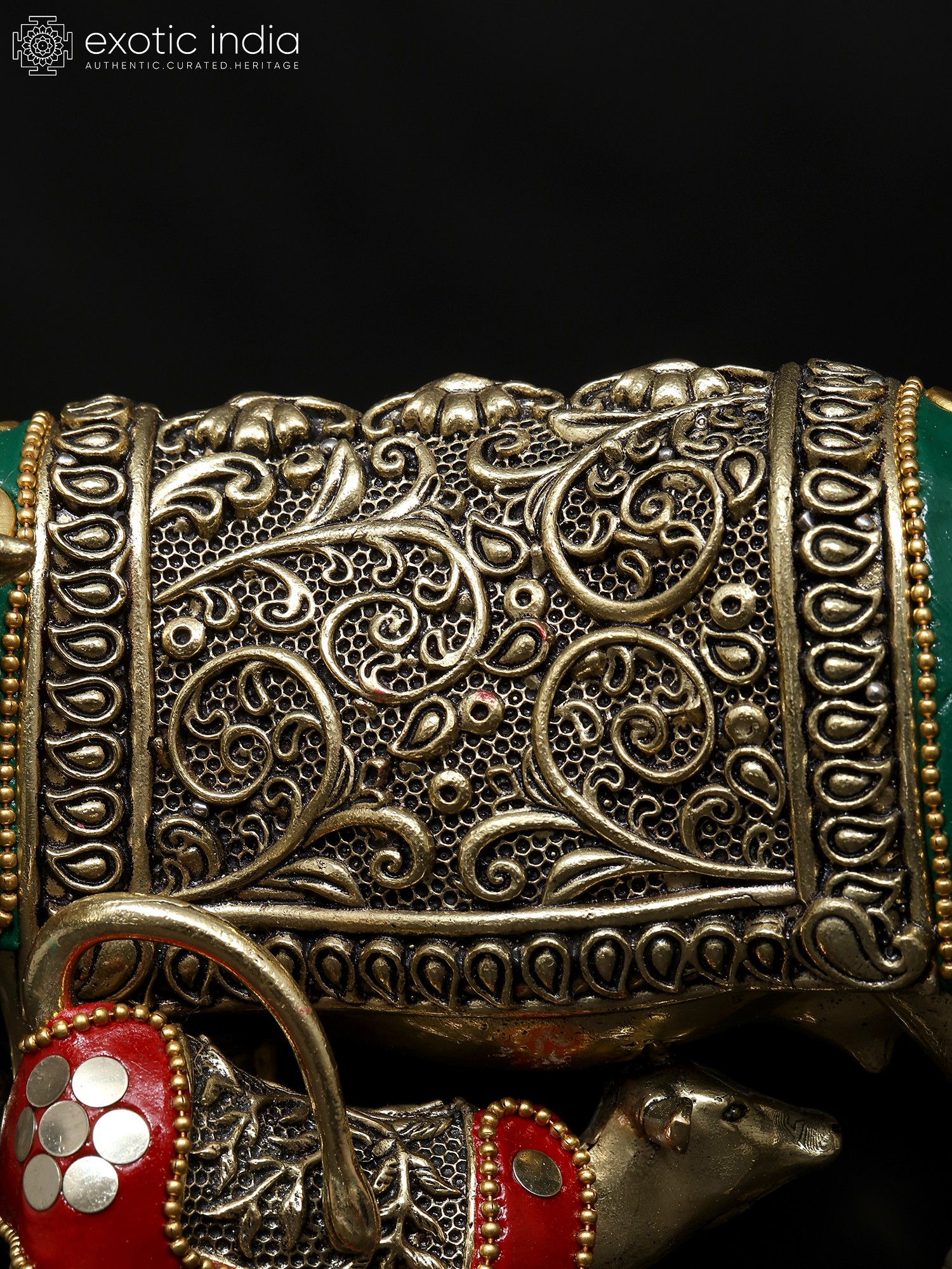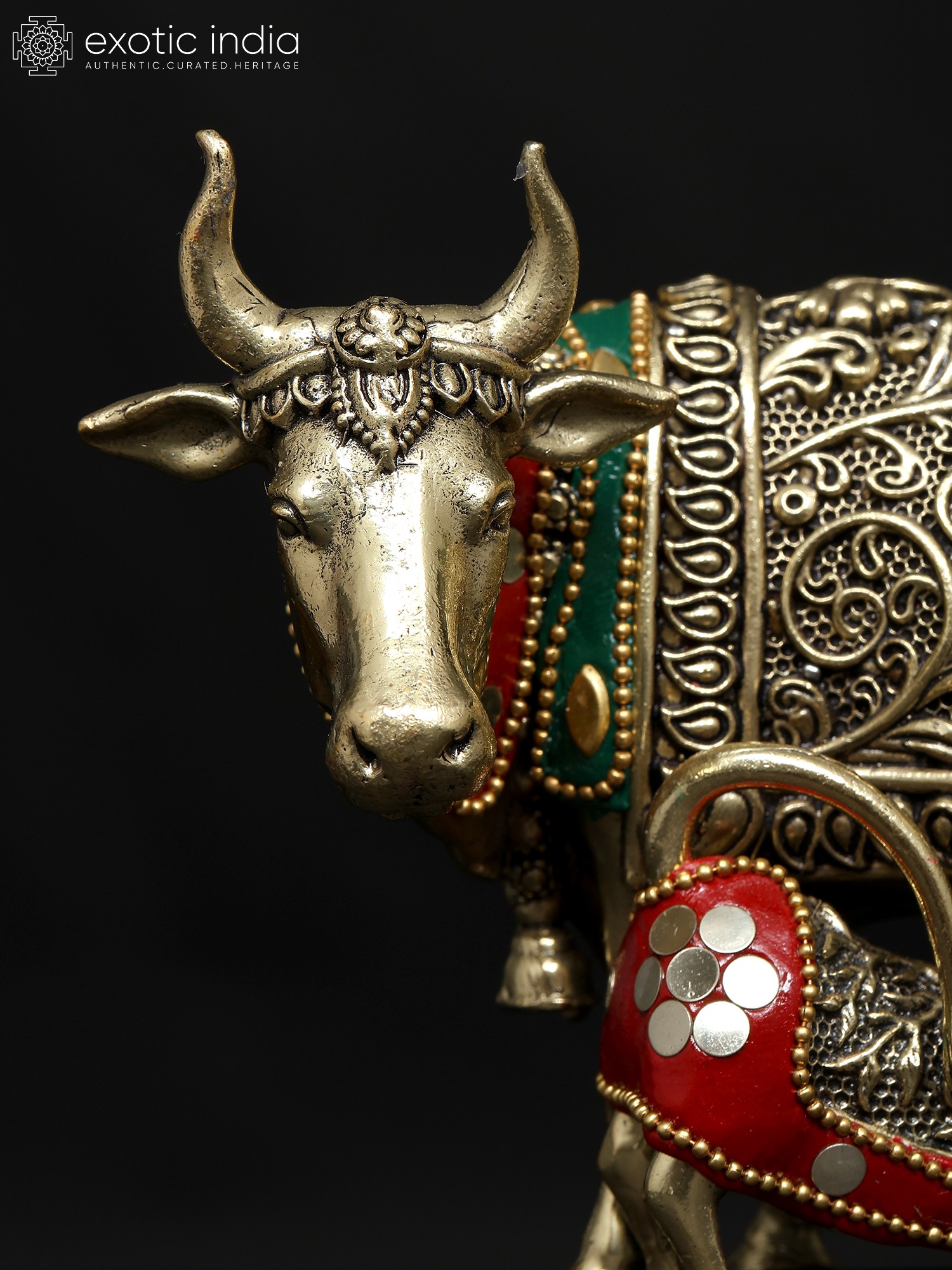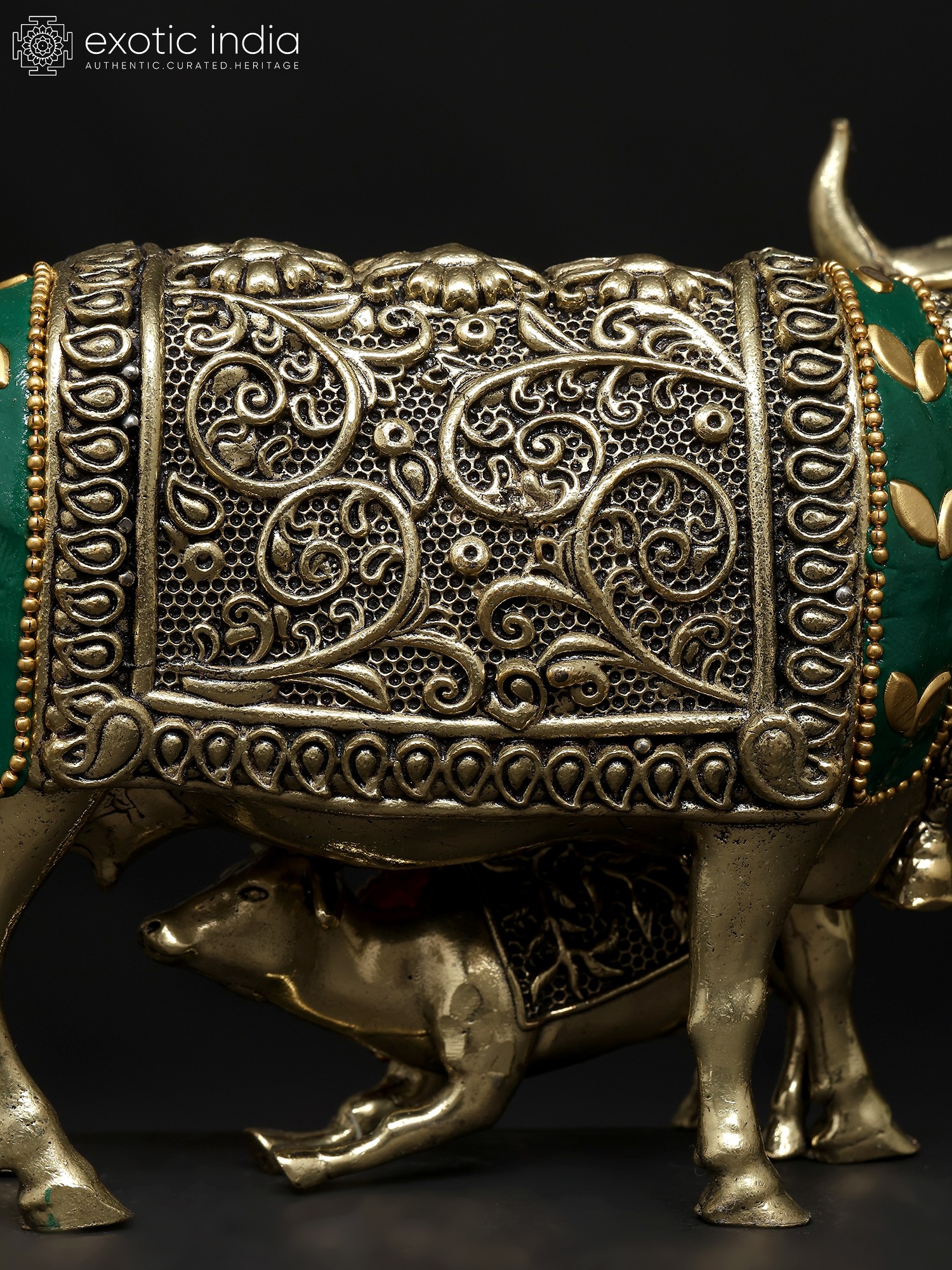 10" Brass Cow and Calf Gullak | Brass Statue with Inlay Work