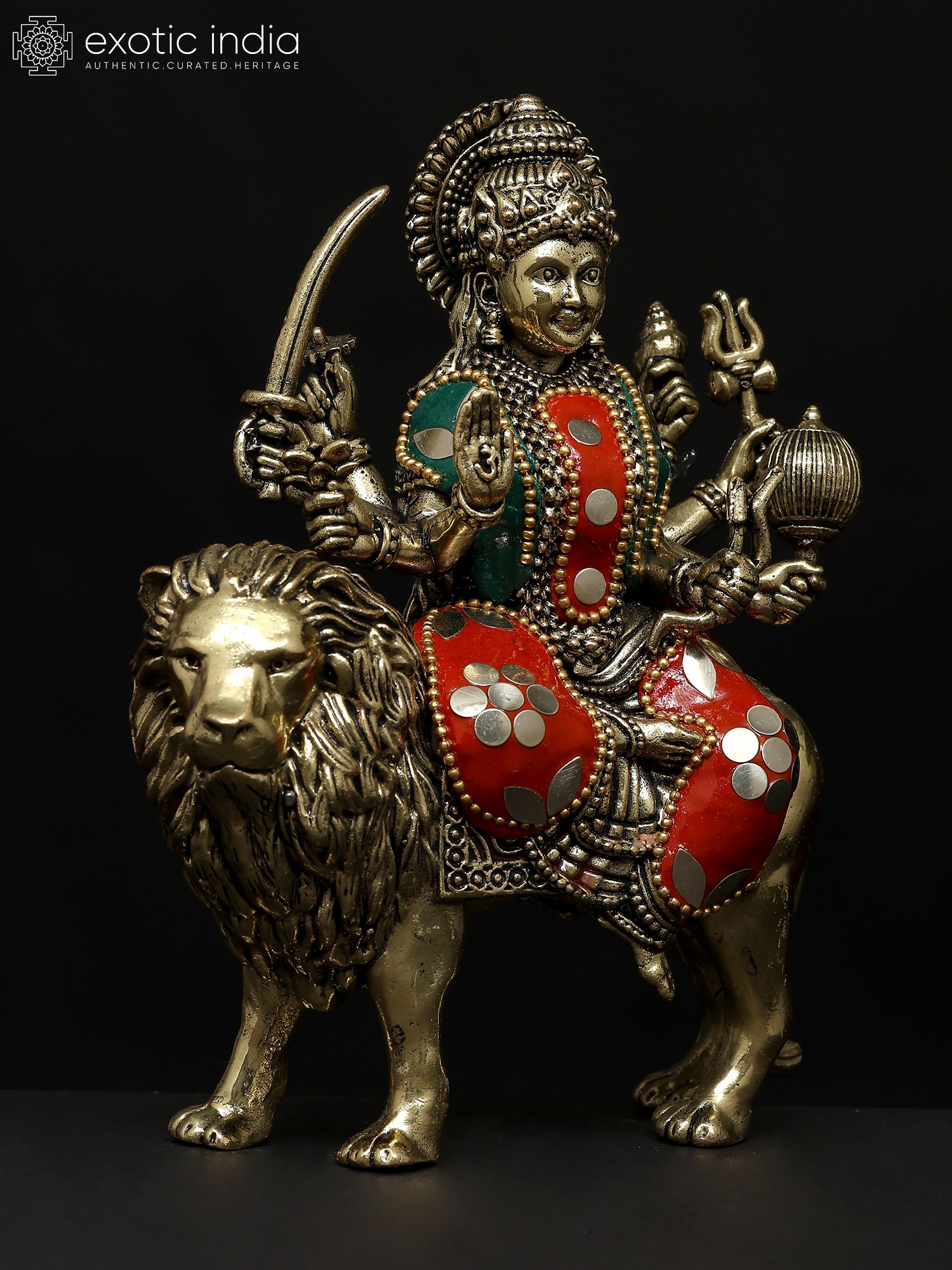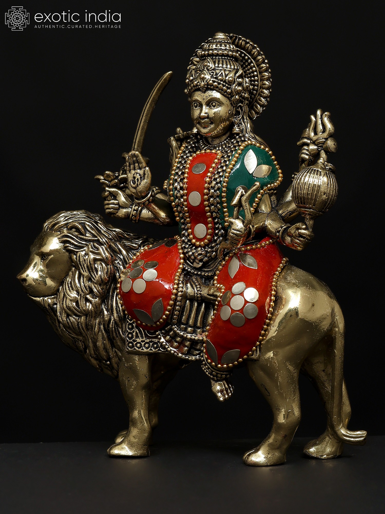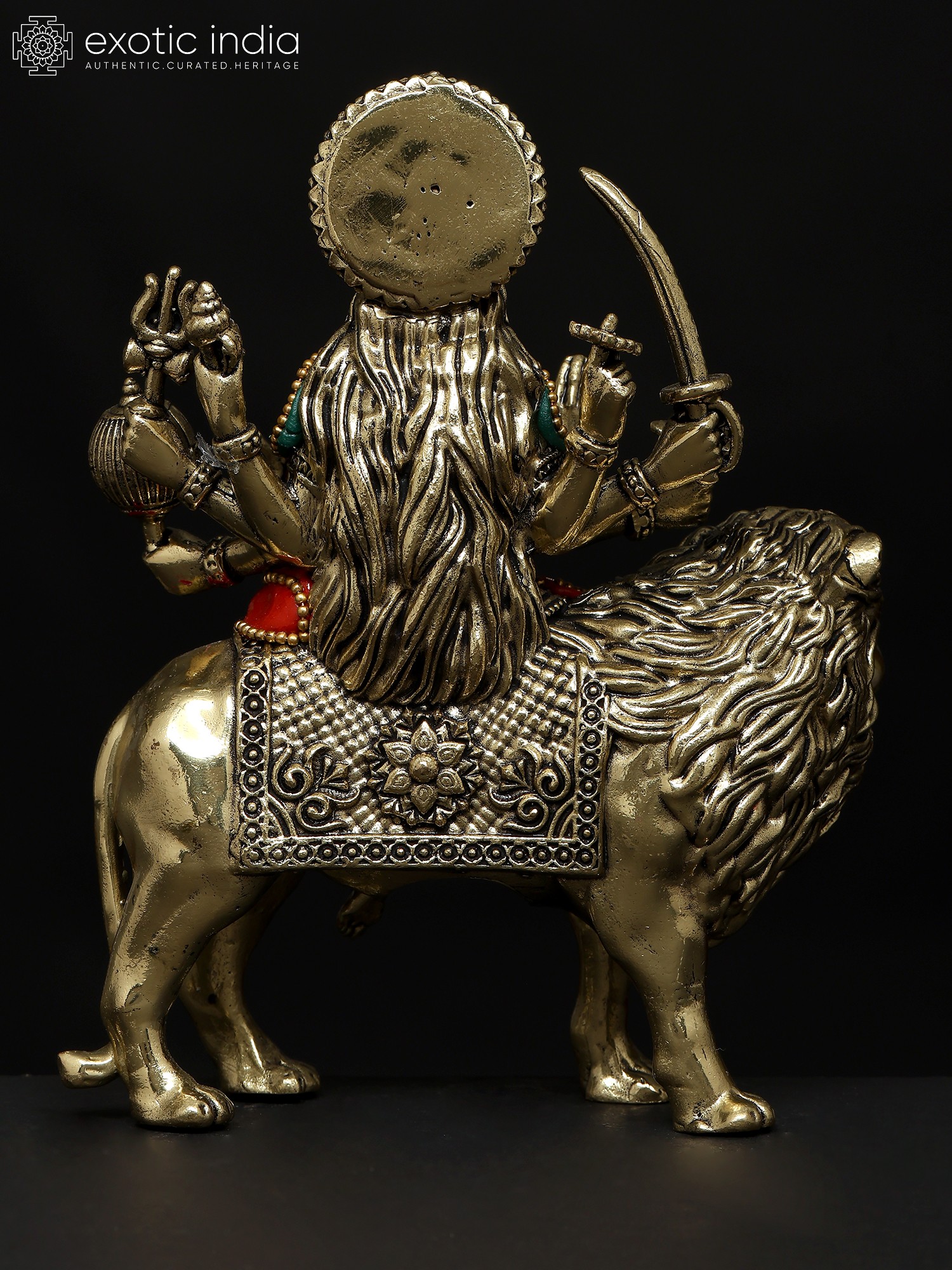 6" Small Eight Armed Goddess Durga (Sherawali Maa) | Brass Statue