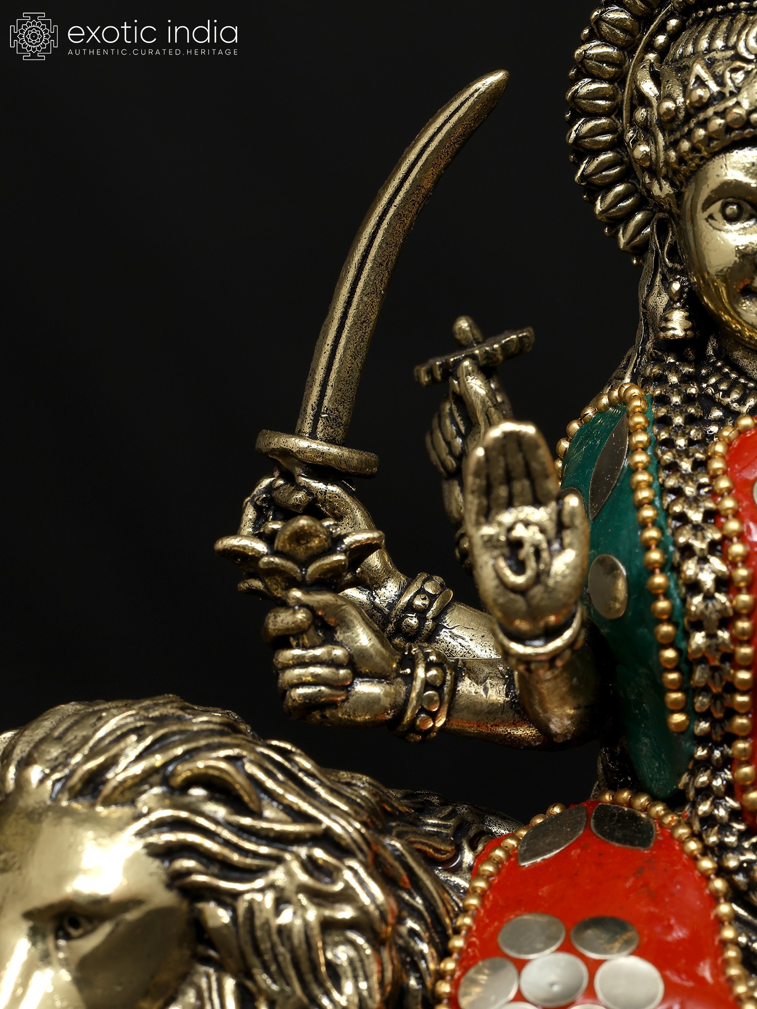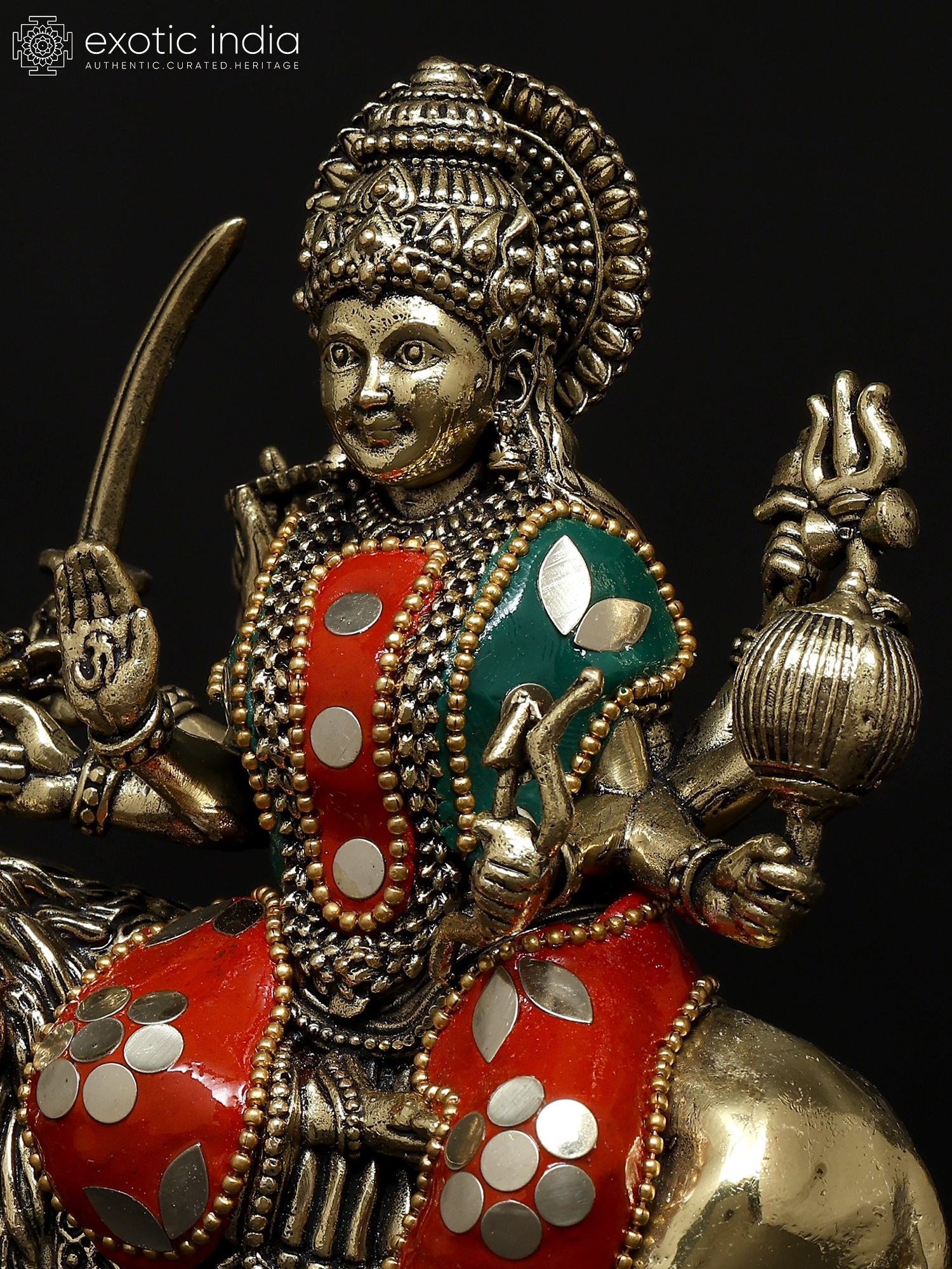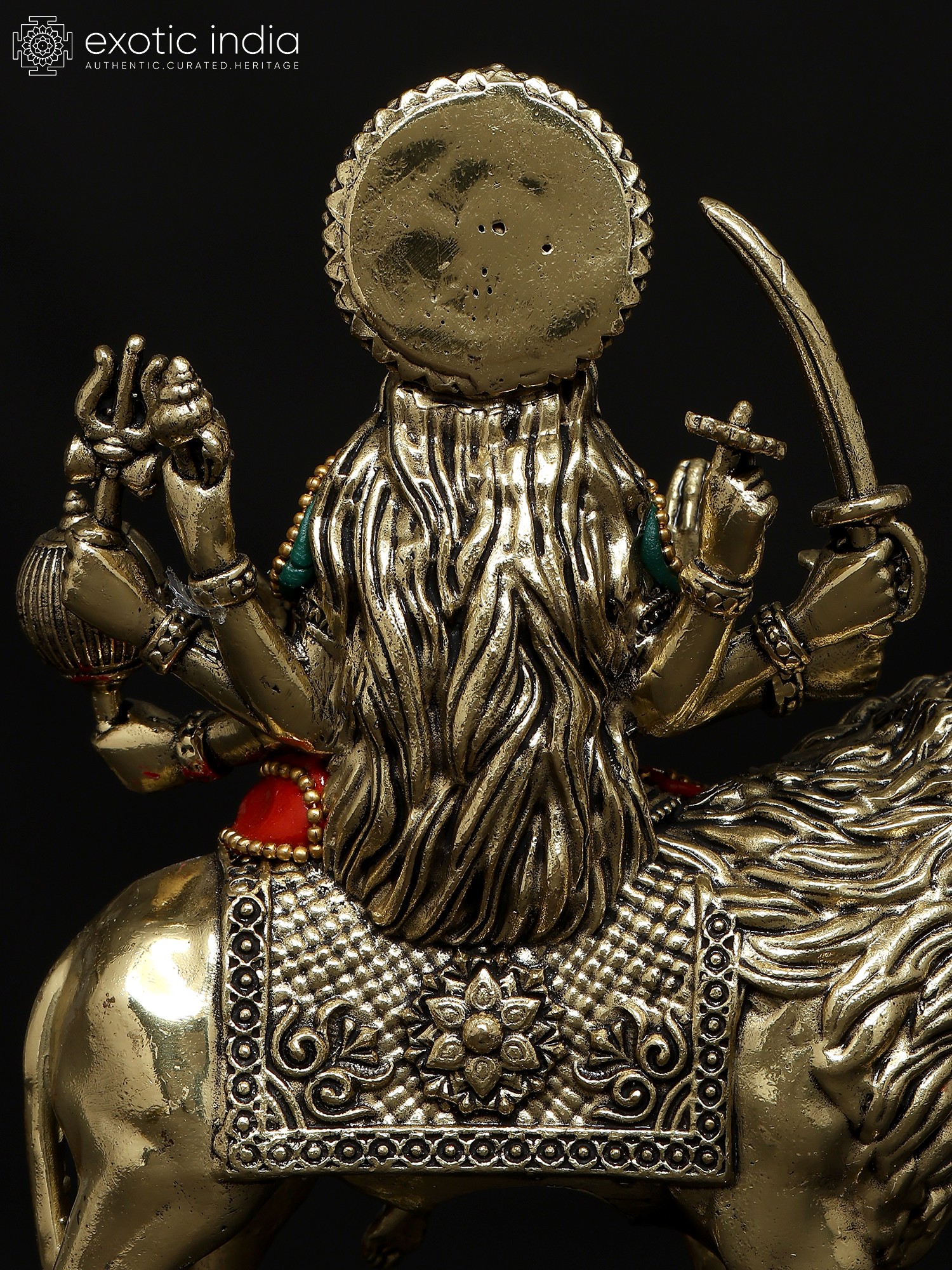 6" Small Eight Armed Goddess Durga (Sherawali Maa) | Brass Statue
