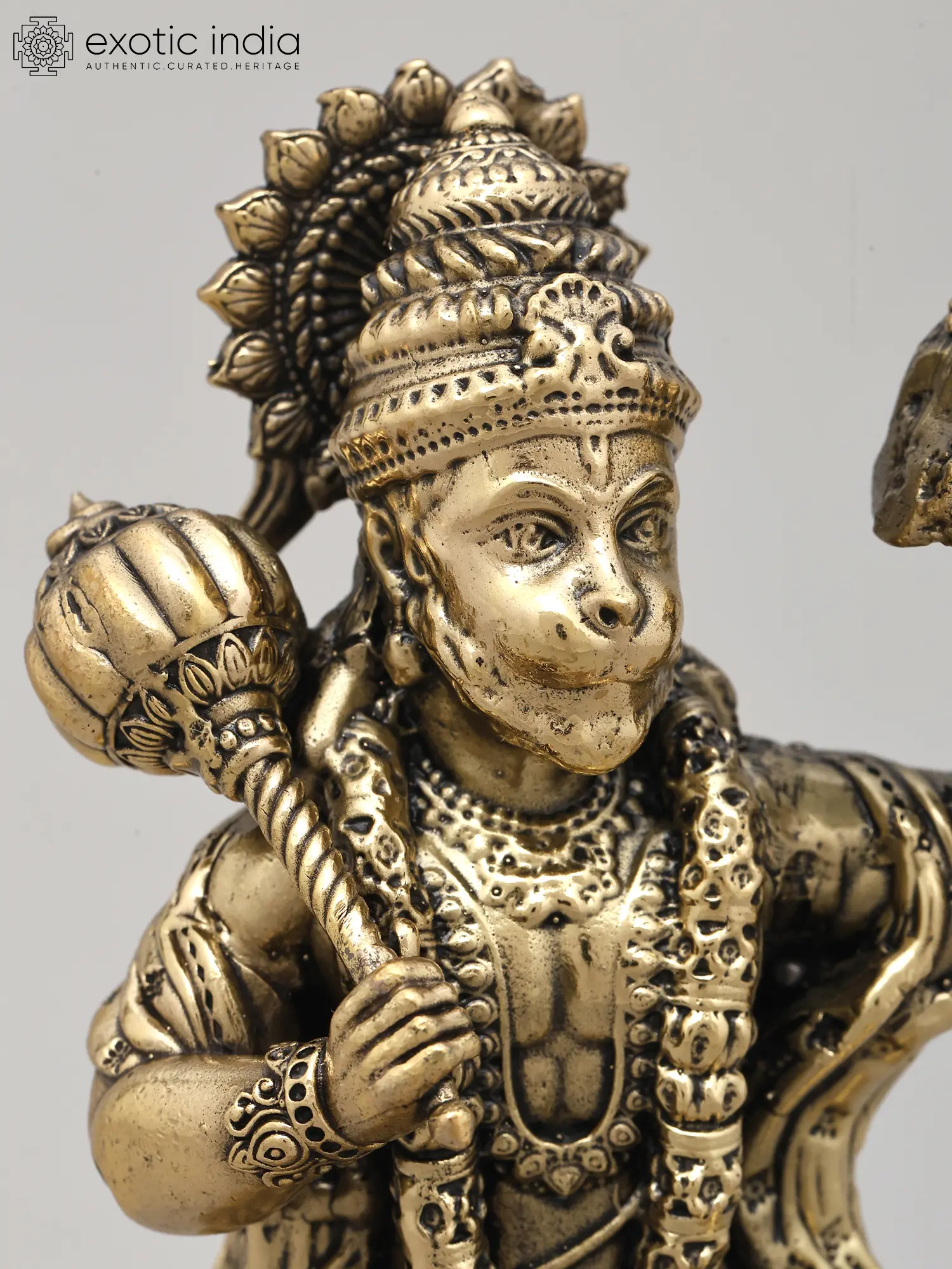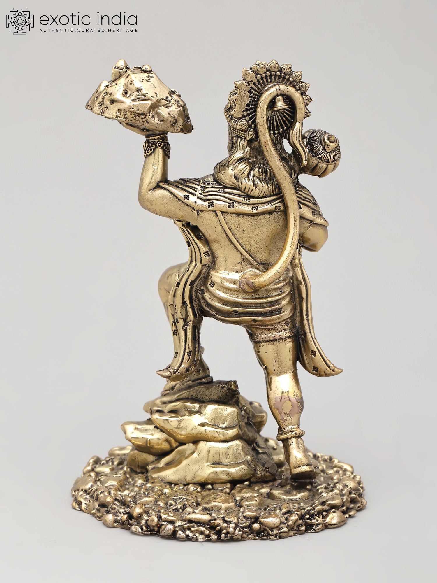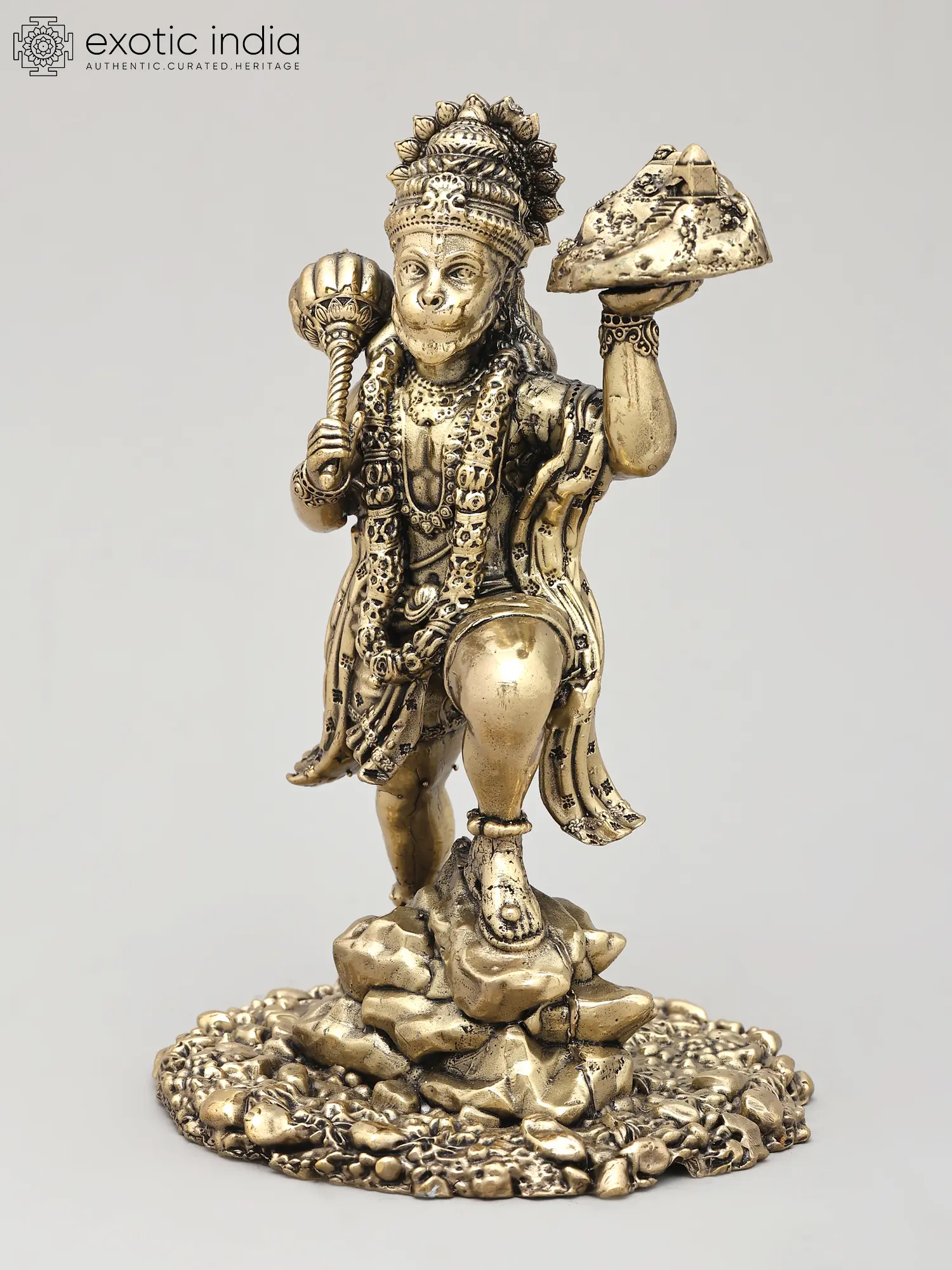 9" Lord Hanuman Lifting Sanjivani Mountain In Brass | Handmade | Made In India