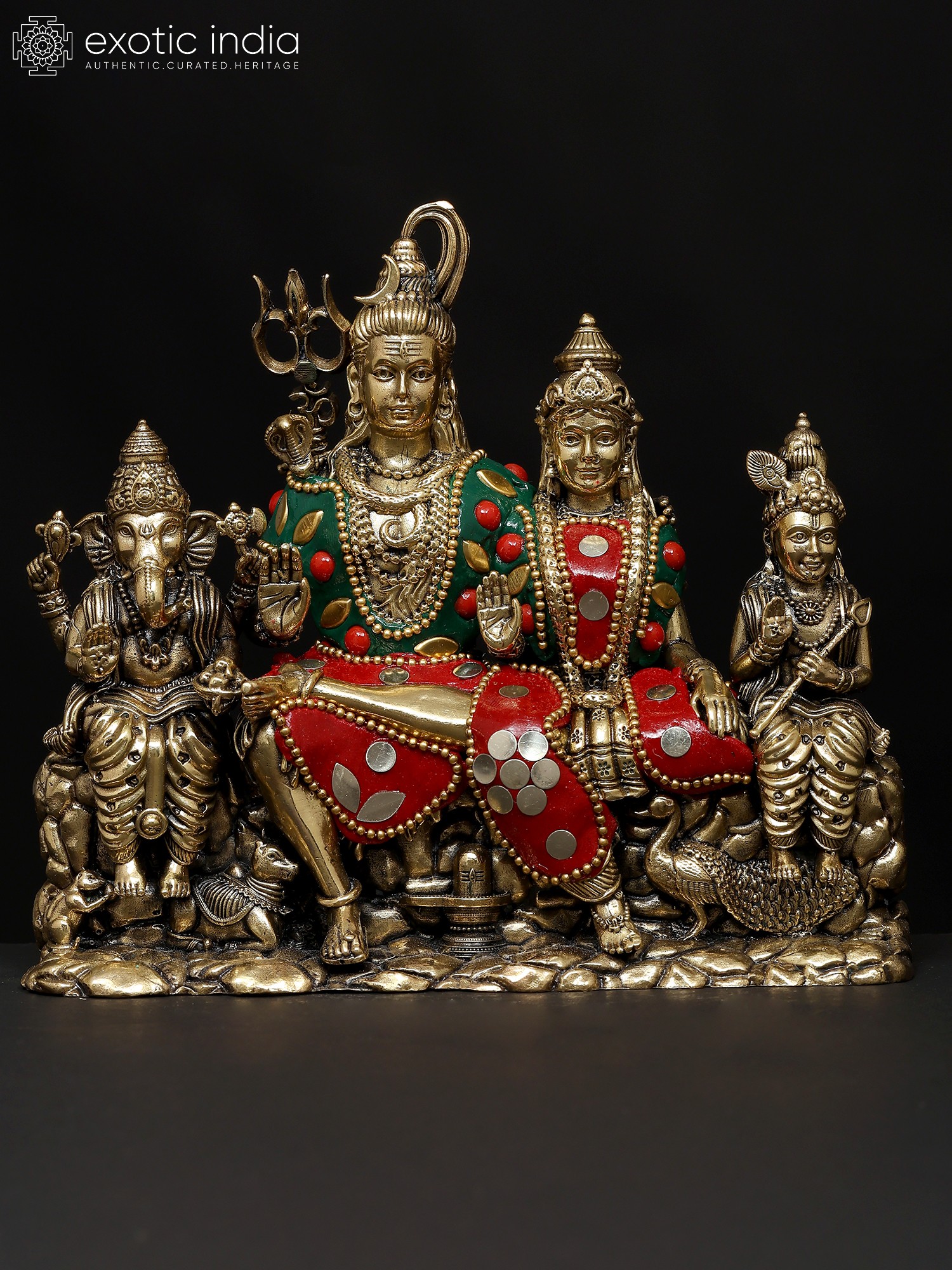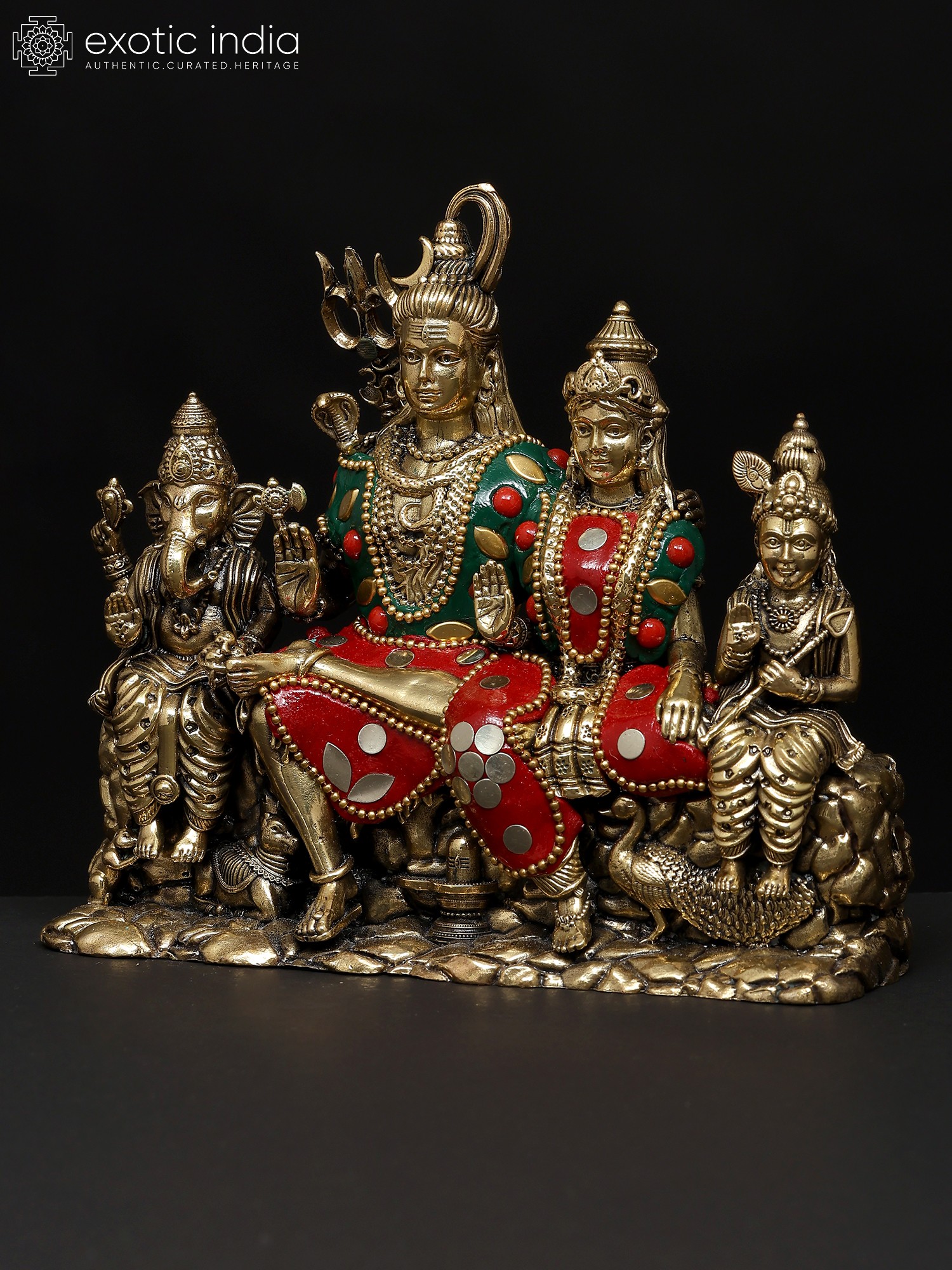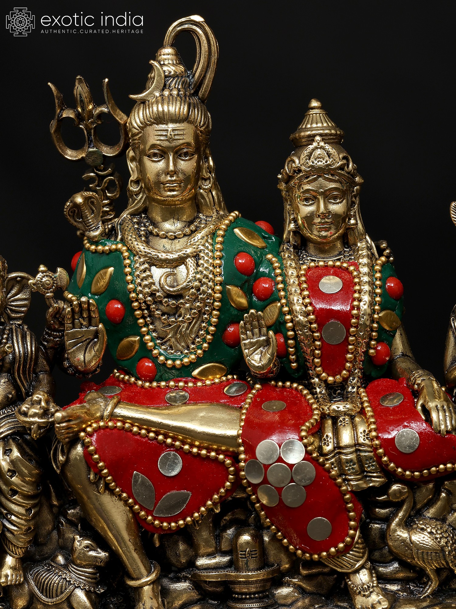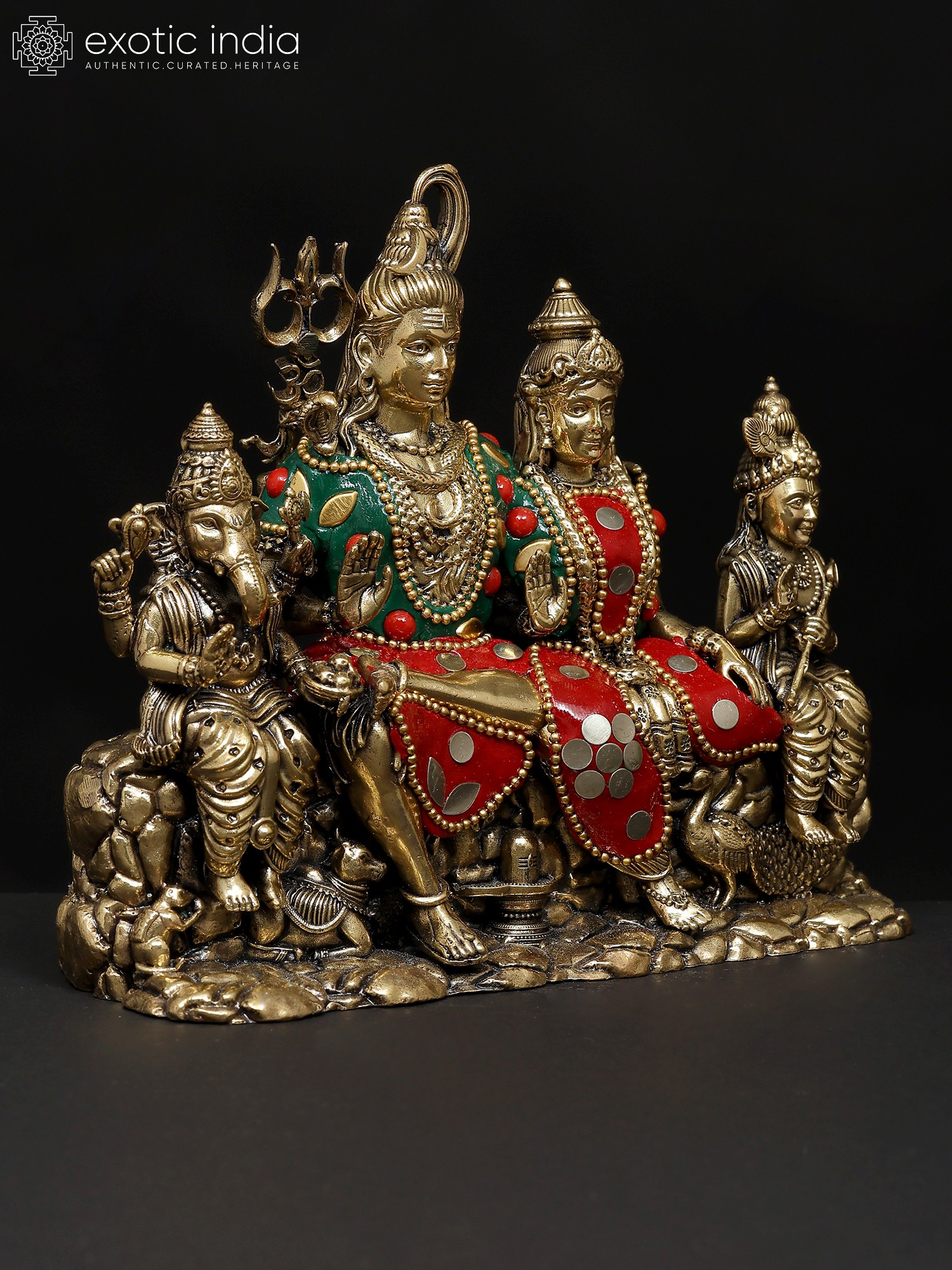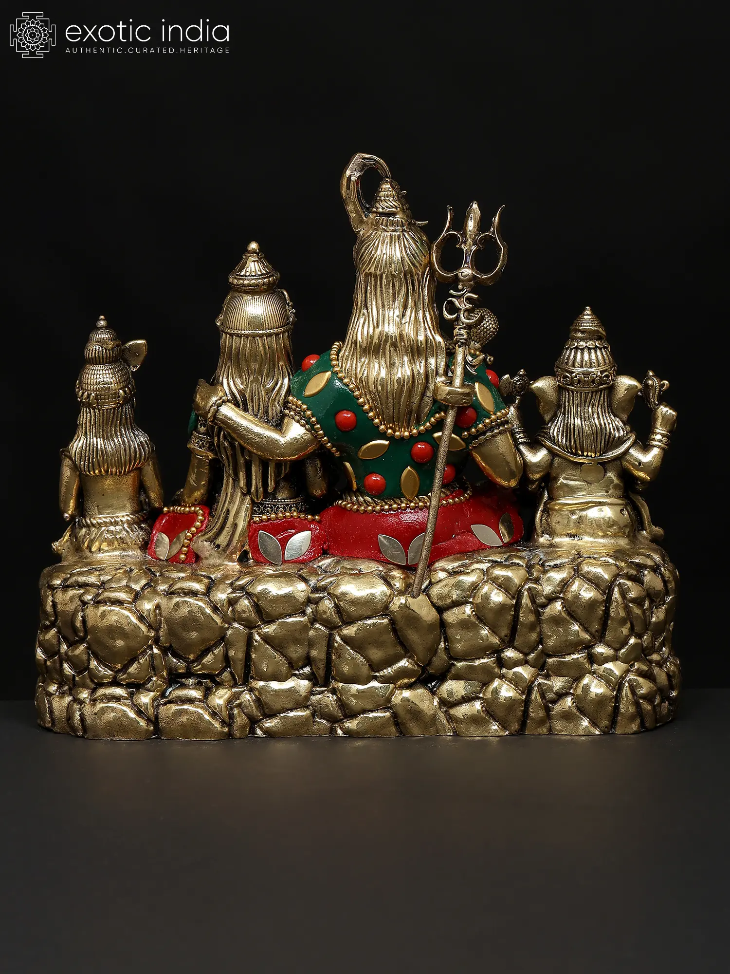 7" Shiva Family on Kailash Parvat | Brass Statue