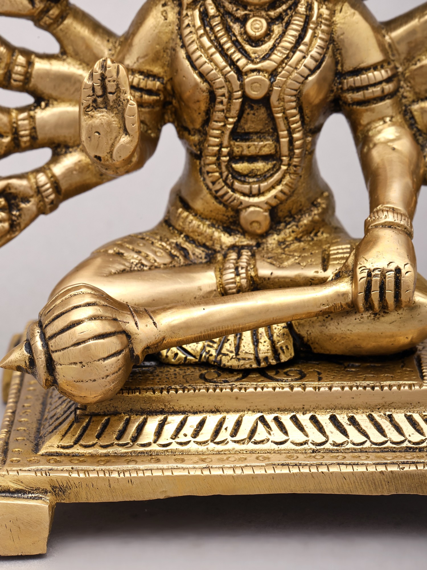 7" Superfine Ten Armed Panchamukhi Hanuman Seated on Wood Base | Brass Sculpture