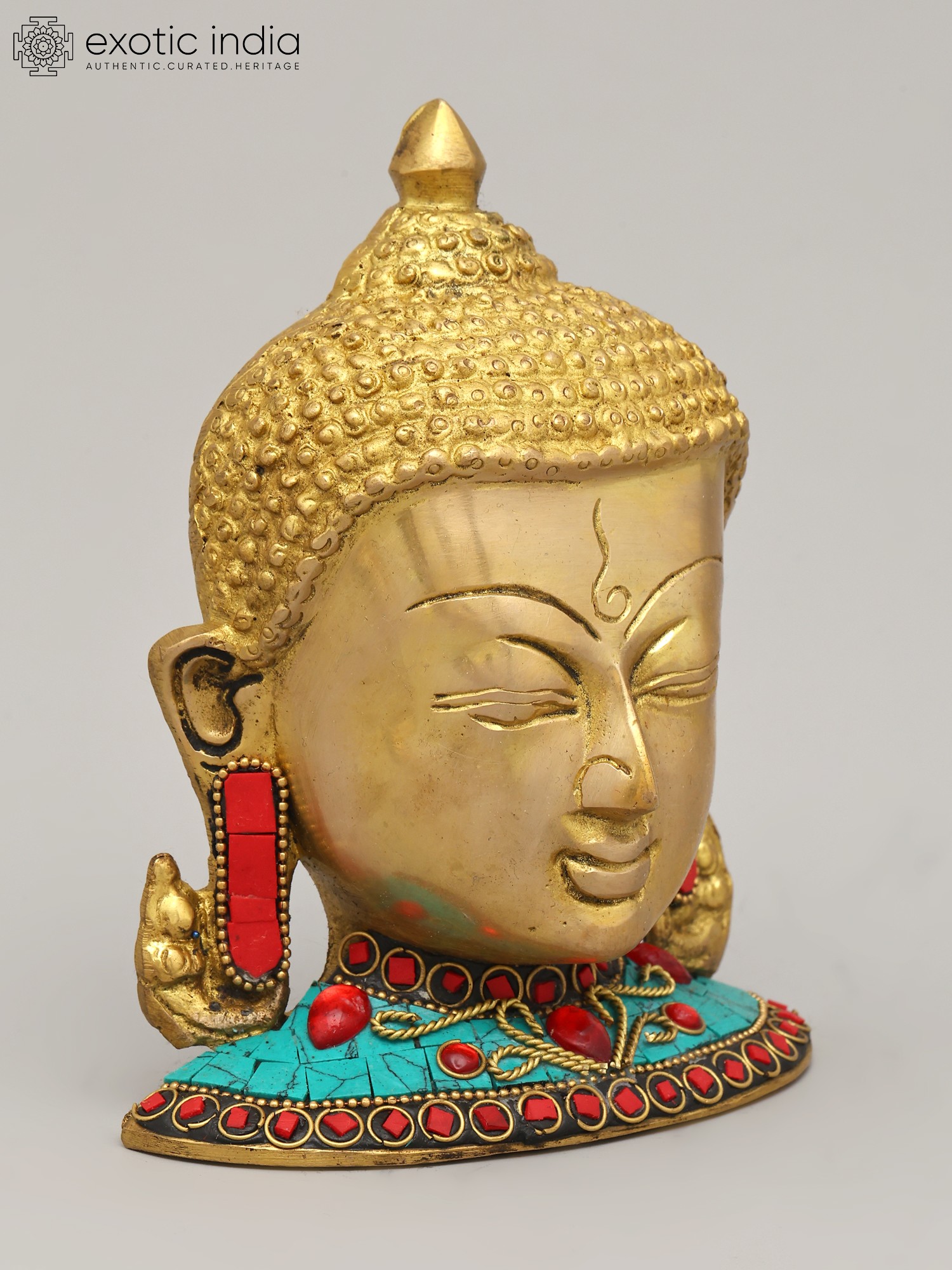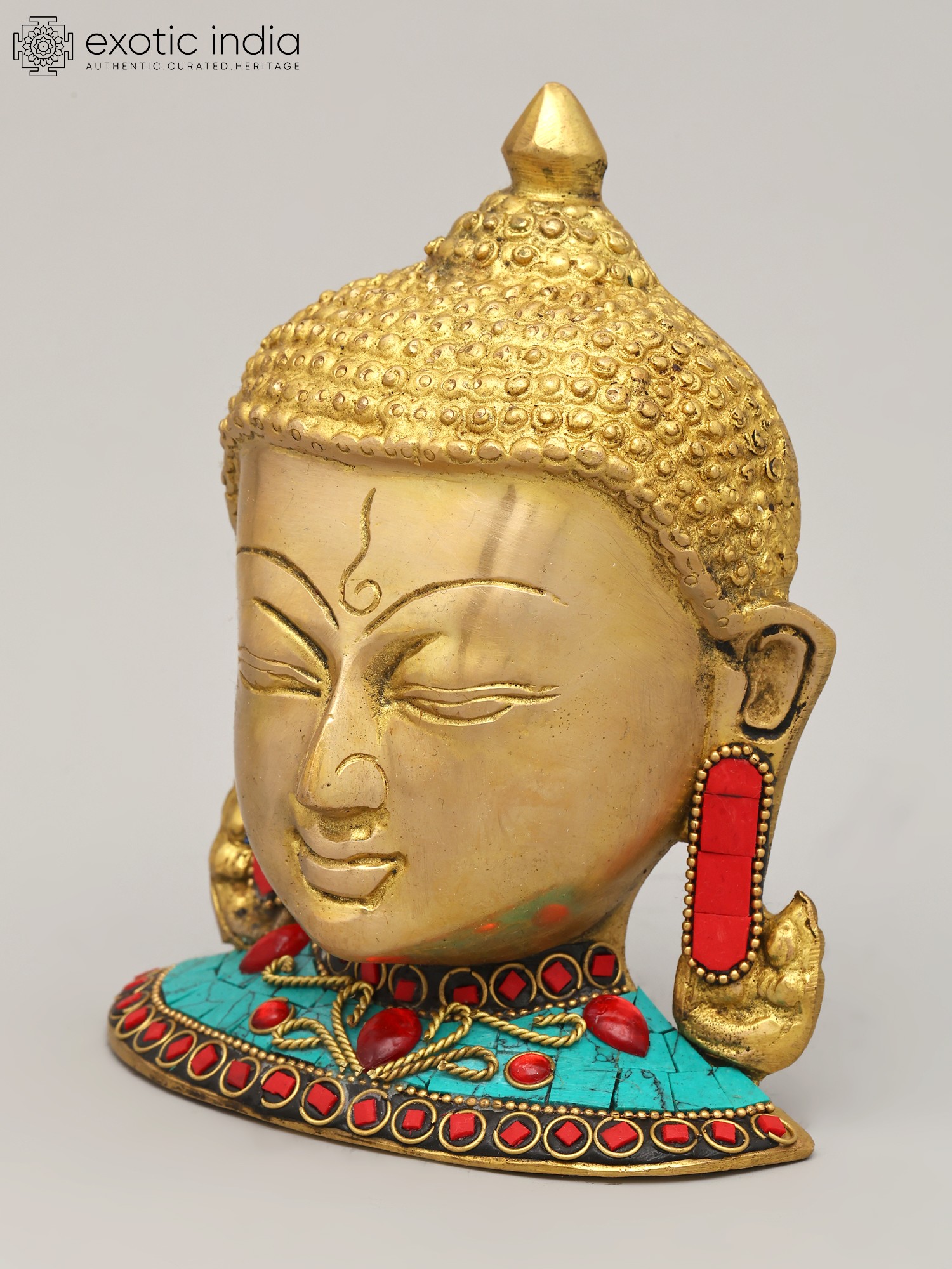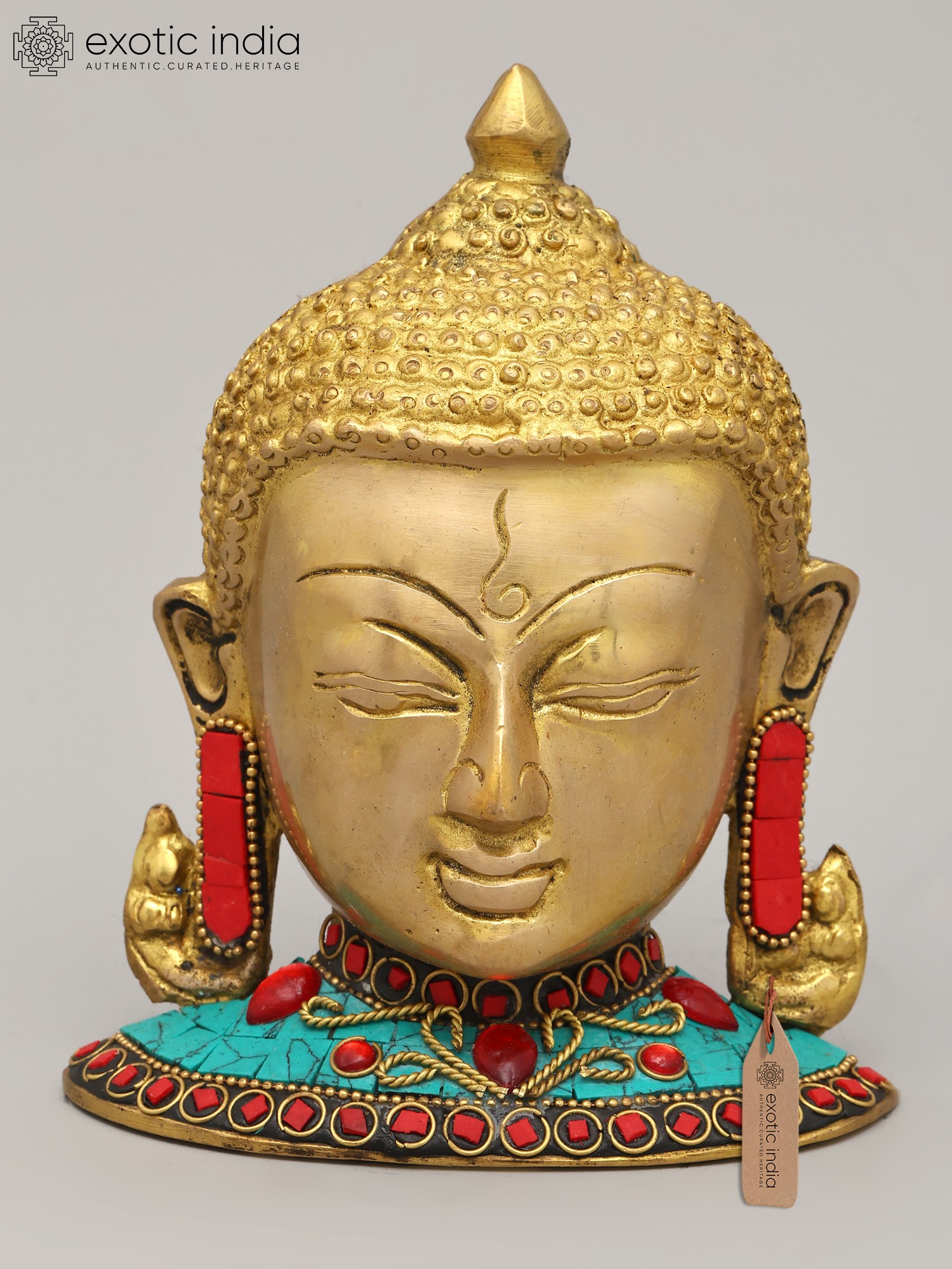 11" Lord Buddha Wall Hanging Mask In Brass | Handmade | Made In India