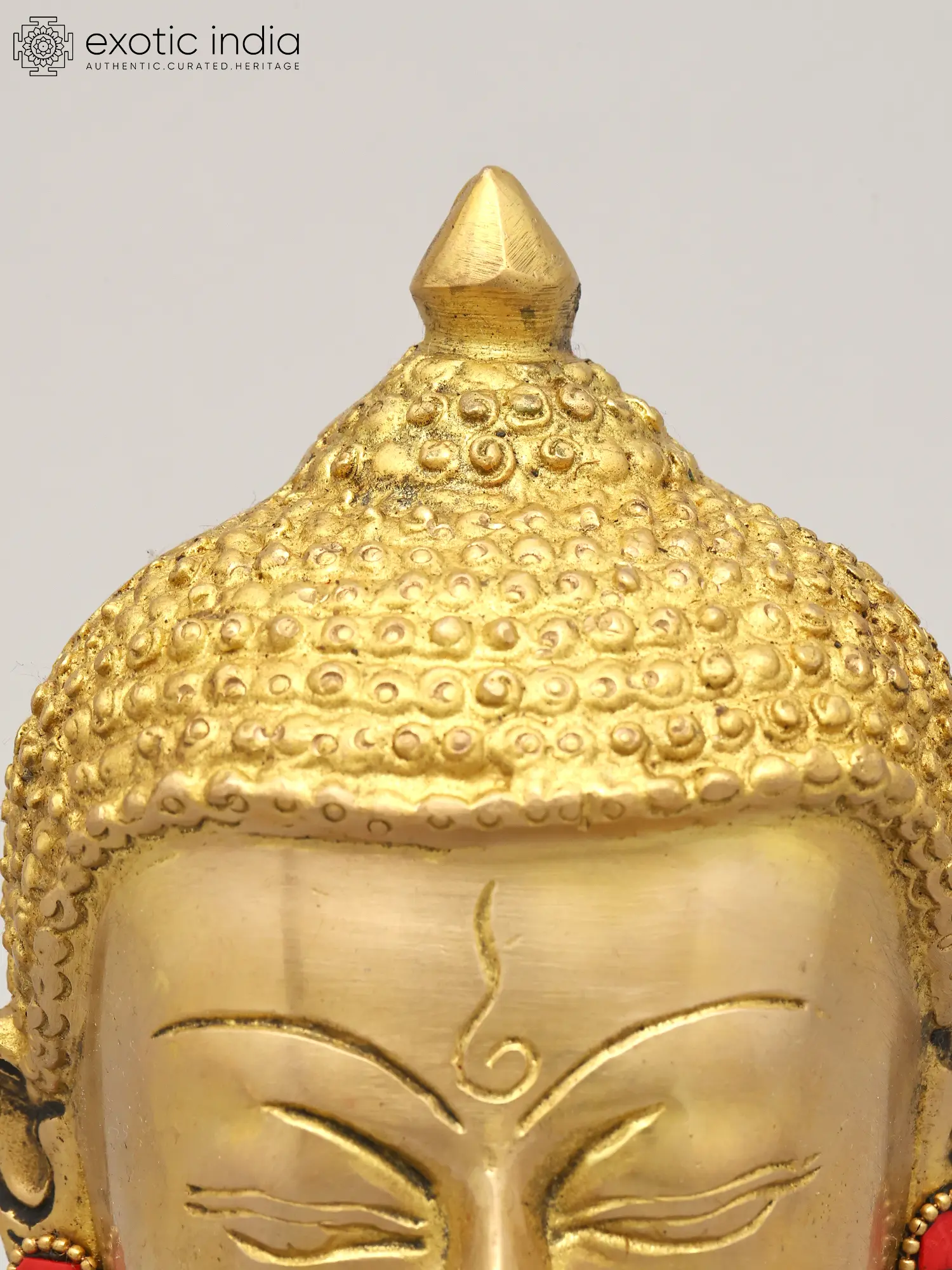 10" Contemplative Buddha Wall-Hanging Mask with Hints of Gold Colour