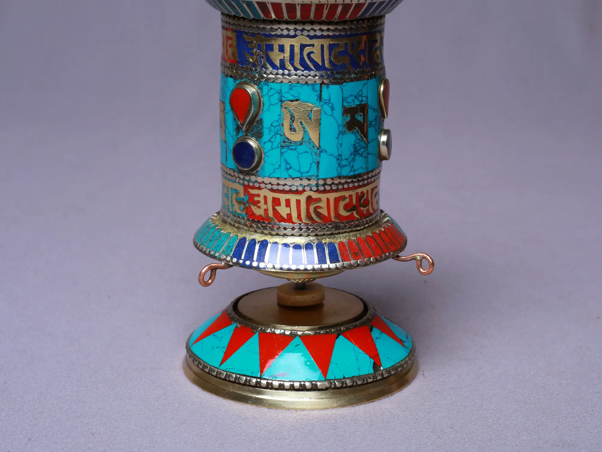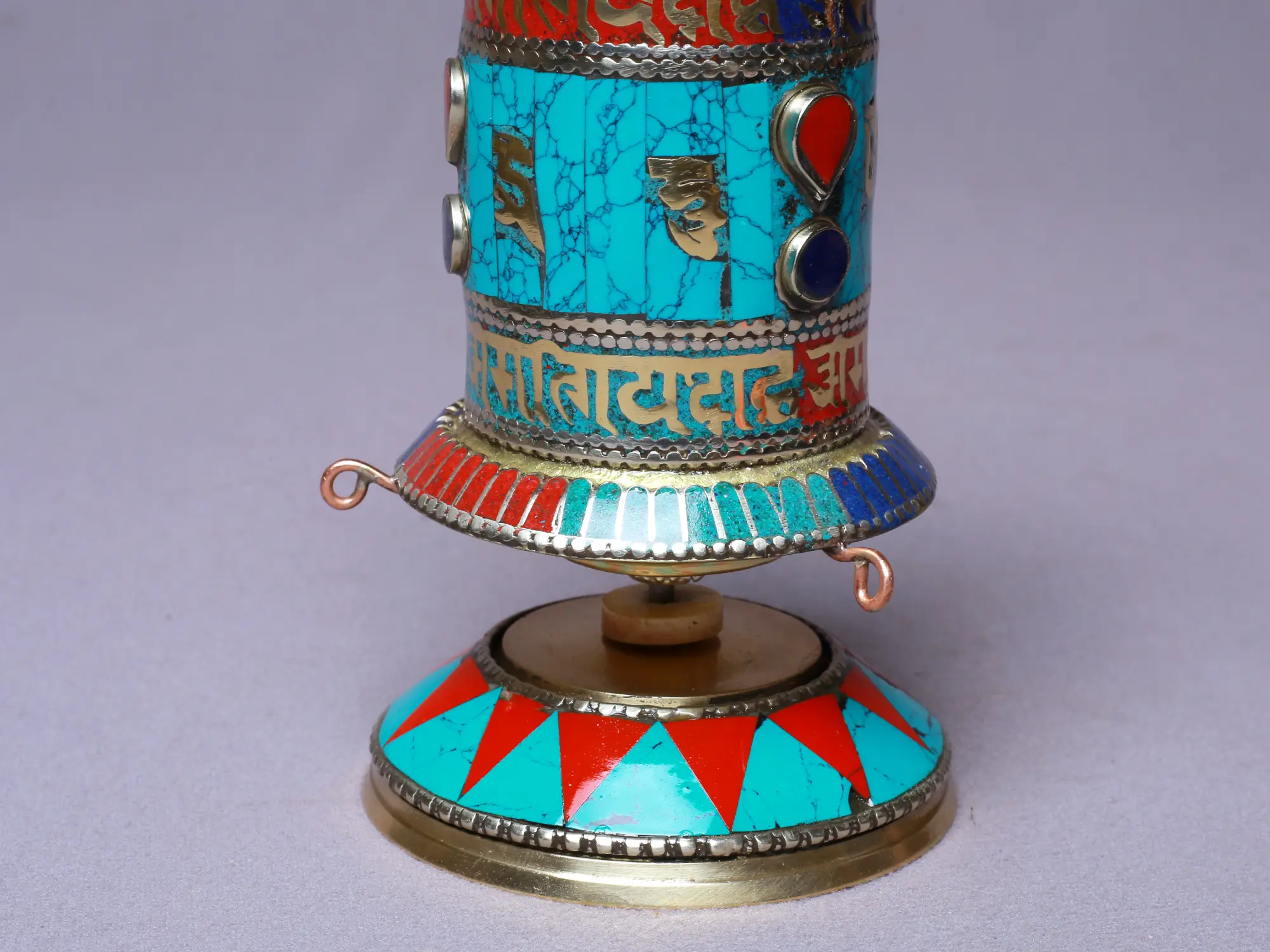 6" Spinning Prayer Wheel with Stone Work | Made In Nepal