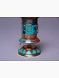 This meticulously crafted 6-inch spinning prayer wheel, handmade in Nepal, is more than just a beautiful ornament; it’s a tangible connection to centuries of spiritual practice and deep cultural heritage. The vibrant turquoise, coral, and lapis lazuli stones inlaid into the copper body evoke the rich colours of the Himalayas and the mystical energy they hold. Each turn of the wheel, with its gentle whirring sound, whispers ancient mantras, carrying prayers and positive energy into the world.
