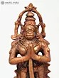 This exquisite copper statue captures Lord Hanuman in a moment of profound reverence and devotion. Standing tall and majestic, he holds his hands together in the Namaskar Mudra, a gesture of greeting, respect, and prayer. The intricate details of this sculpture bring to life the beloved Hindu deity, known for his unwavering loyalty, immense strength, and spiritual devotion to Lord Rama. The warm, earthy tones of the copper enhance the divine aura of the figure, making it a truly captivating piece for any sacred space or as a symbol of inspiration.