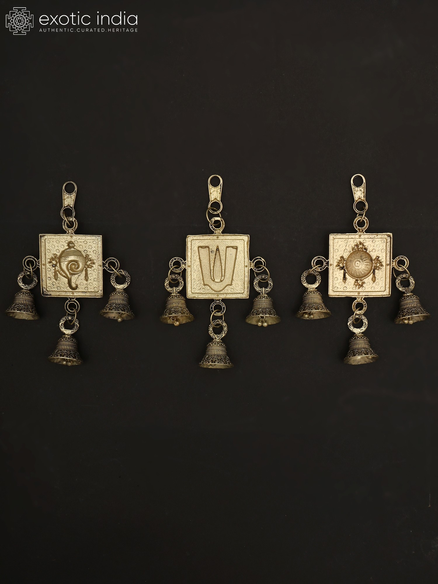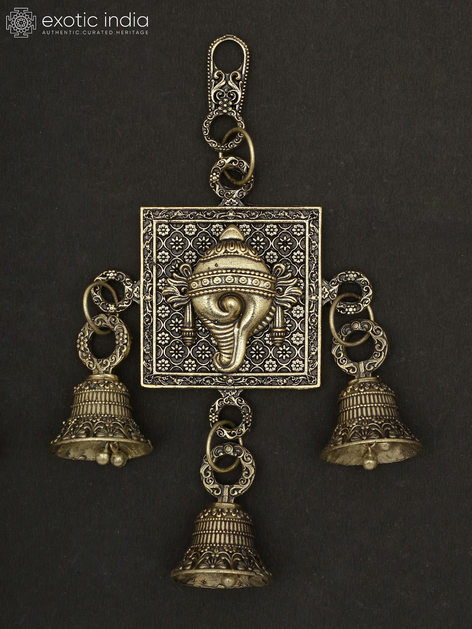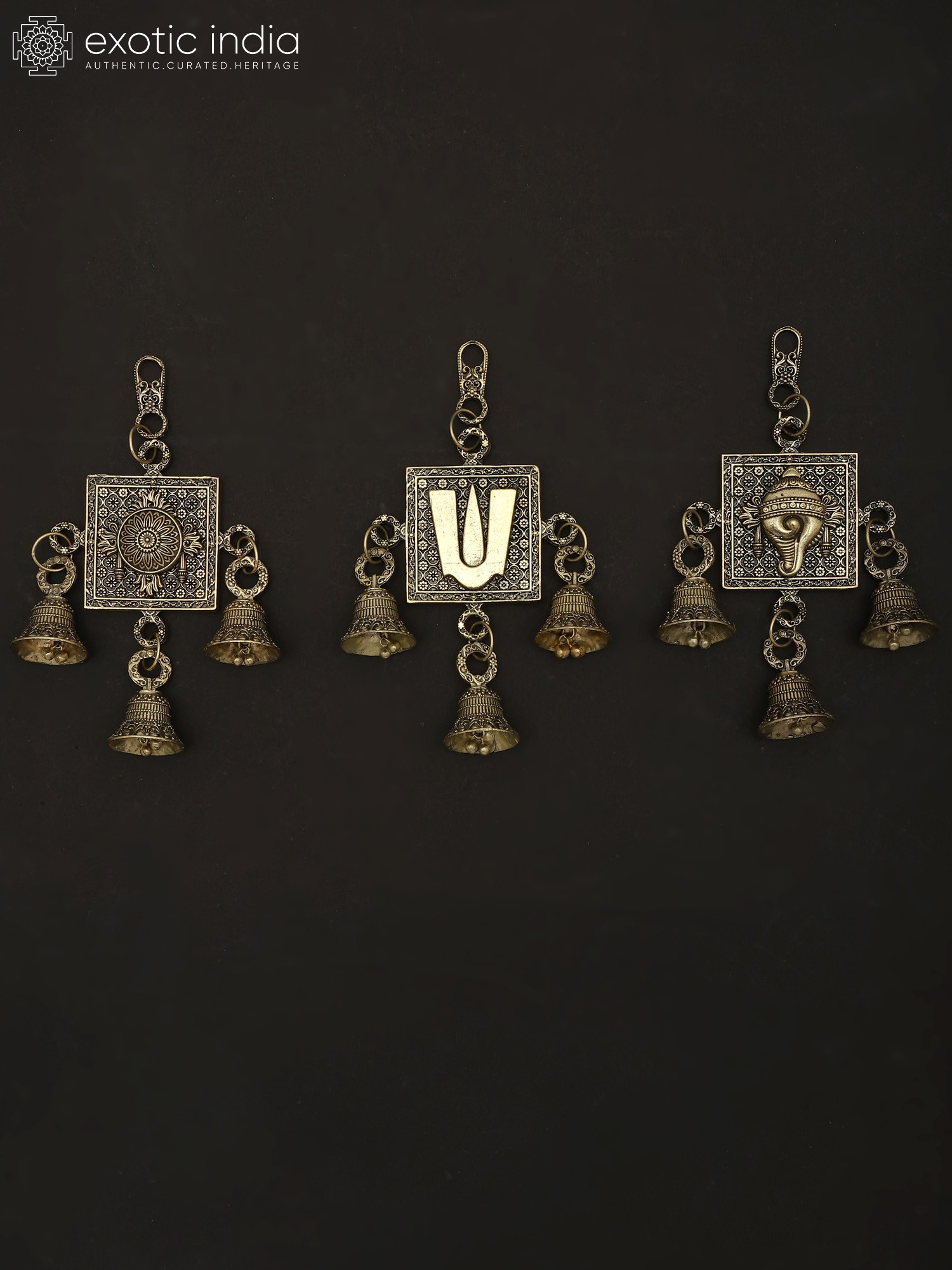 26" Brass Vighnaharta Ganesha Design Wall Hanging Bells