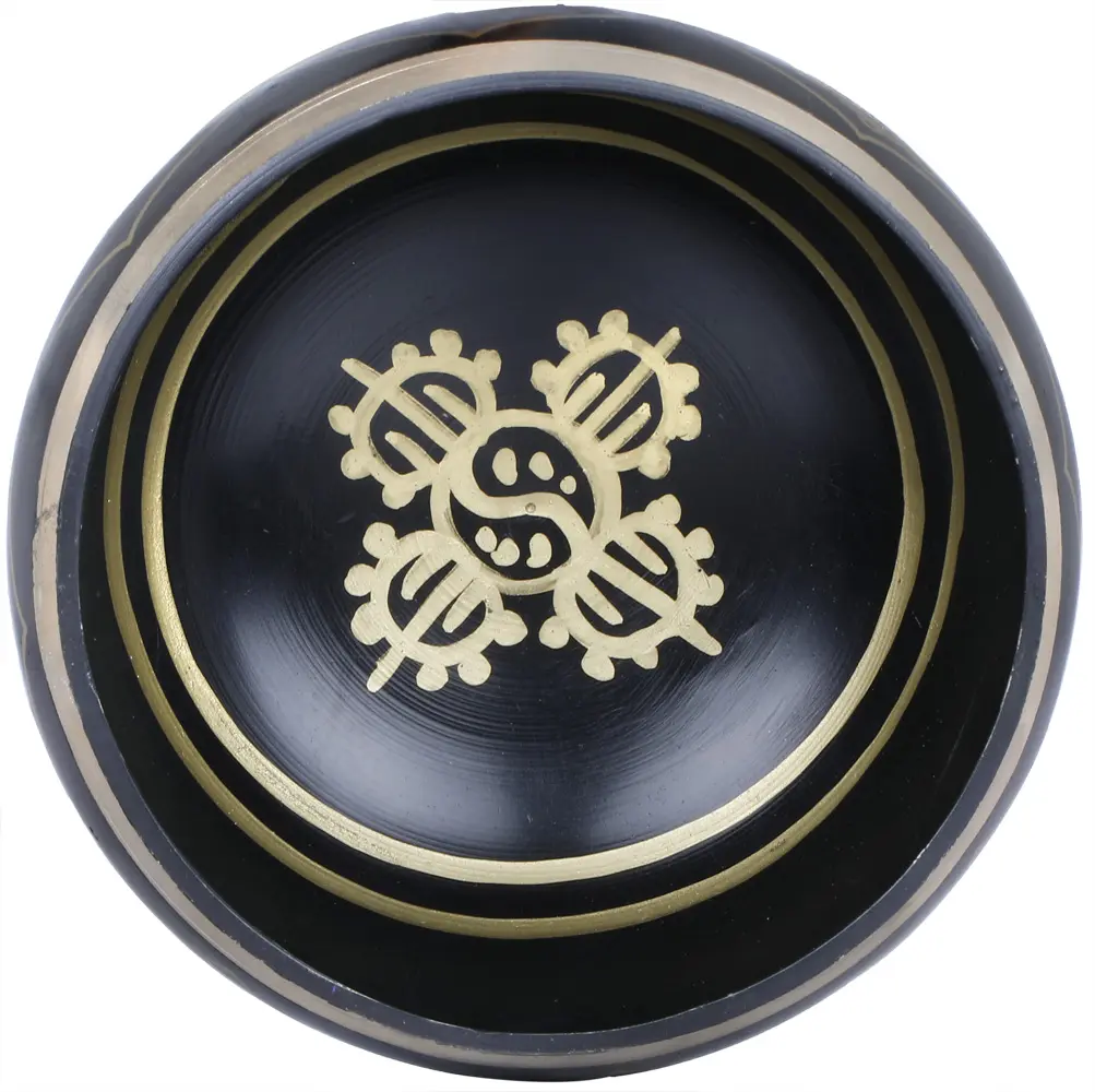 From the Highland of Tibet, where spirituality and ancient traditions converge, we present to you a unique embodiment of serenity and meditation: the Buddhist Black Singing Bowl in Brass. This gorgeous instrument resonates with the essence of the Himalayas, inviting you to explore the depths of your inner self. Its gleaming surface is adorned with a rich, black hue, a unique blend of serenity and mystique - embodying the balance between light and darkness.