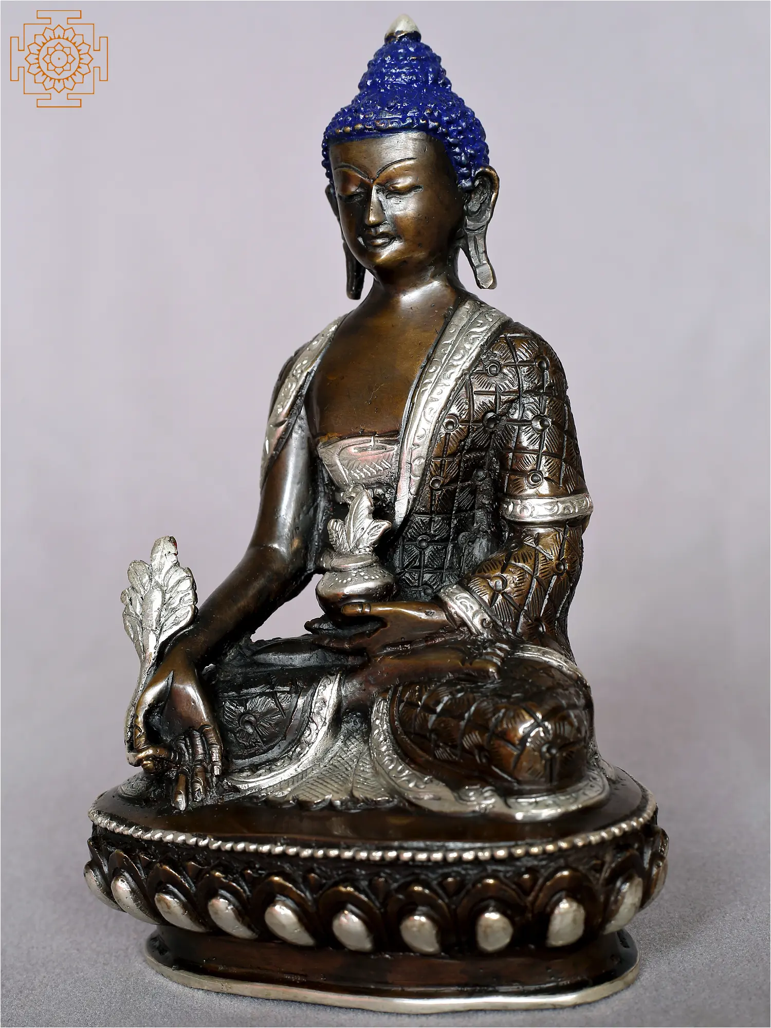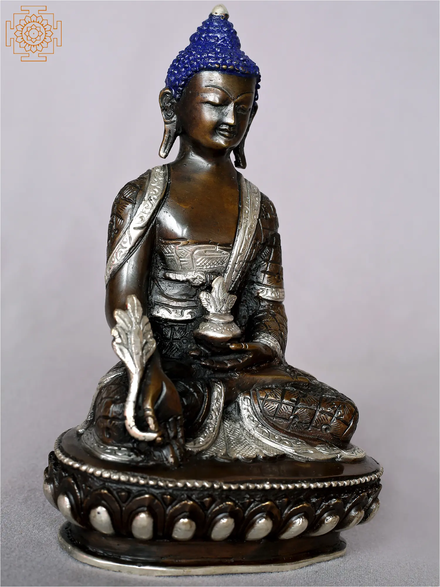 6" Tibetan Buddhist Deity Black and Silver Medicine Buddha