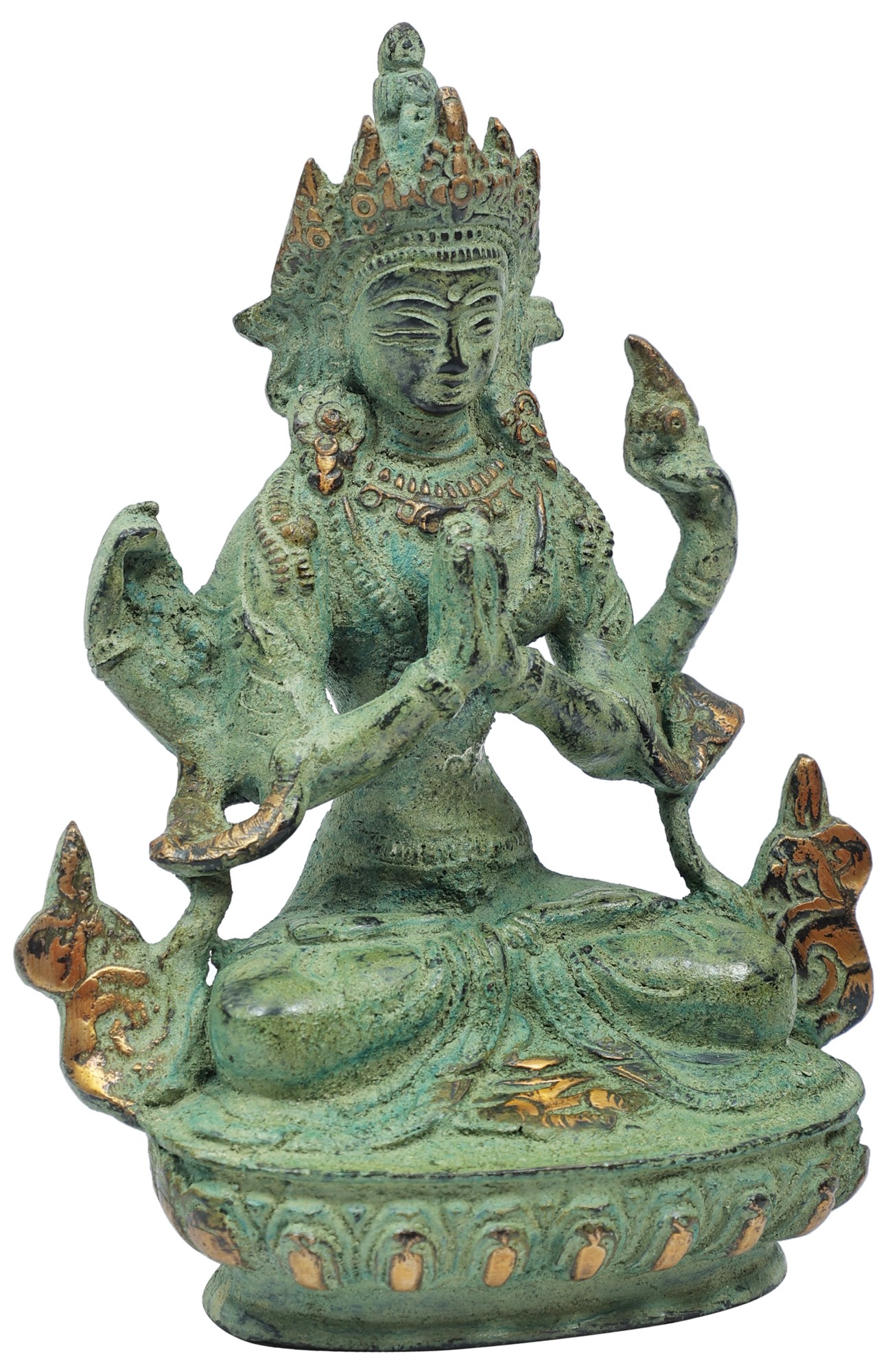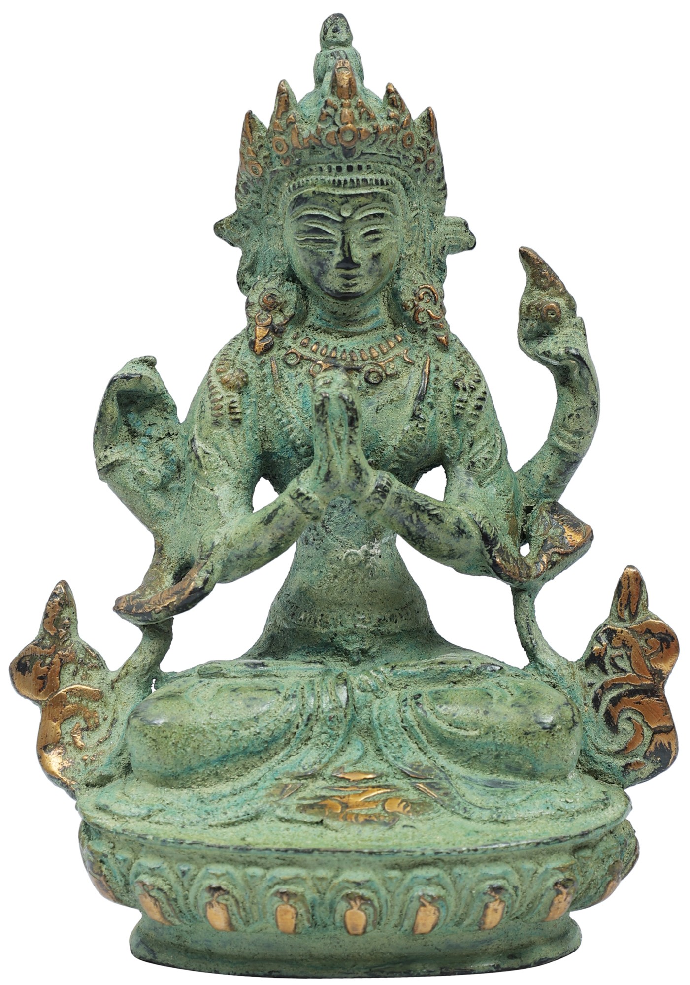 Chenrezig, also known as Shadakshari Lokeshvara, is a profoundly revered and beloved deity in Tibetan Buddhism. This bodhisattva of compassion is typically depicted with a thousand arms and eyes, symbolizing boundless compassion and vigilance. His white form signifies purity and compassion, and he is associated with the mantra "Om Mani Padme Hum," widely recited for invoking the blessings of compassion and wisdom. Chenrezig is believed to hear the cries of suffering beings and respond to their aid, embodying the highest ideals of compassion and altruism. He can manifest in various forms, each representing different aspects of compassion and the means to alleviate suffering. Chenrezig's presence is central in Tibetan Buddhism, inspiring practitioners to cultivate compassion and work towards alleviating the suffering of all sentient beings.