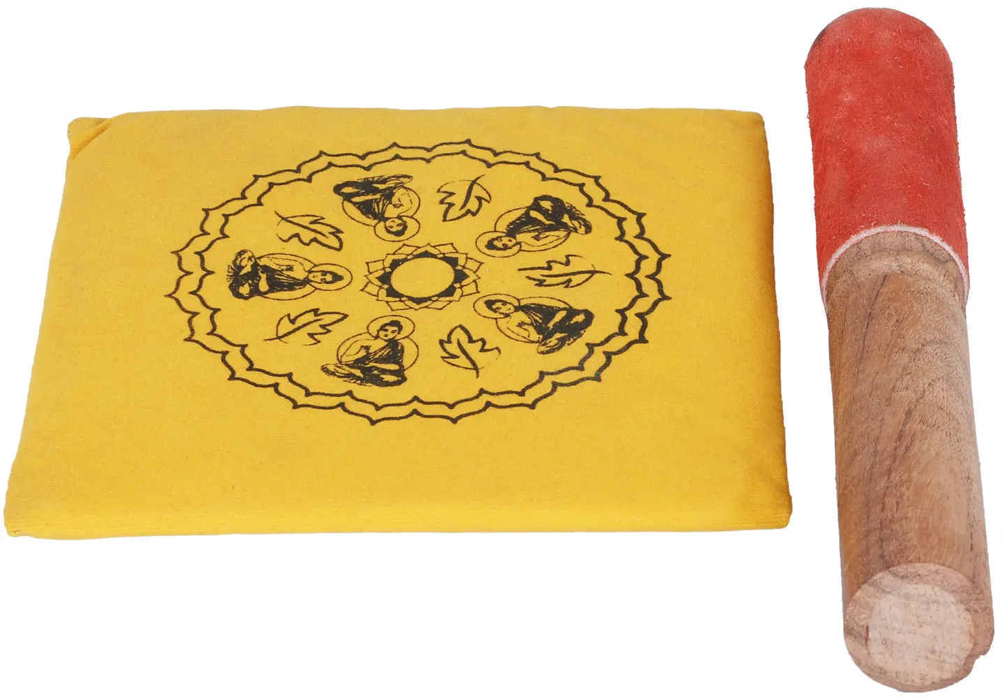 Engraved with the sacred symbol of "Om," this Singing Bowl becomes a gateway to a realm where sound and spirituality intertwine. Its ethereal tones echo the primordial sound of creation, reminding you of the interconnectedness of all life and the eternal cycle of existence. The rich yellow colour embodies the qualities of abundance, wisdom, and enlightenment.