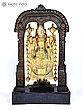 12" Superfine Sitting Lakshmi Ganesha with Dangling Bells | Wood Framed Brass Sculptures | Wall Hanging