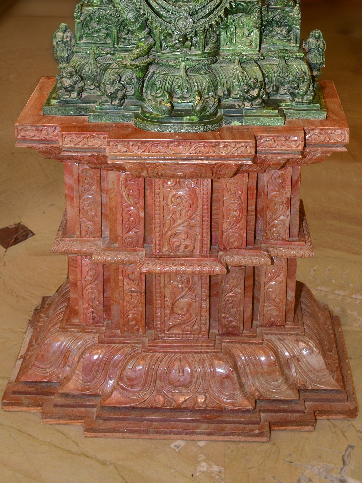 10" Devi Saraswati Statue in Pink Serpentine Stone