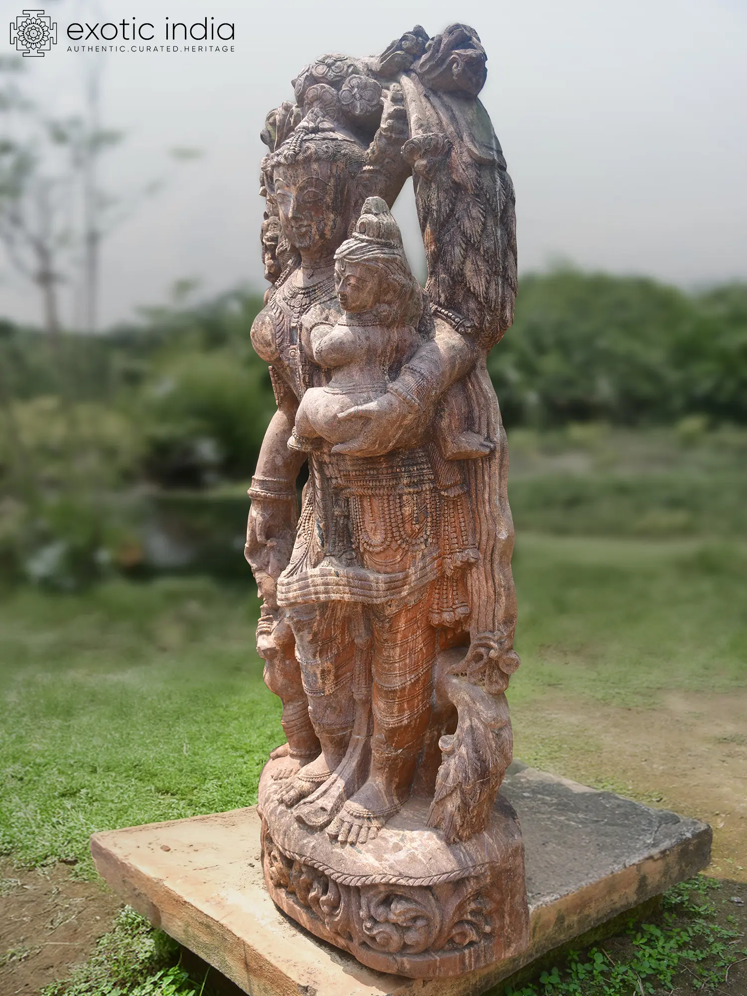 62" Radha and Krishna Playing Flute | Sandstone Statue | Exquisite Handmade Indian Art