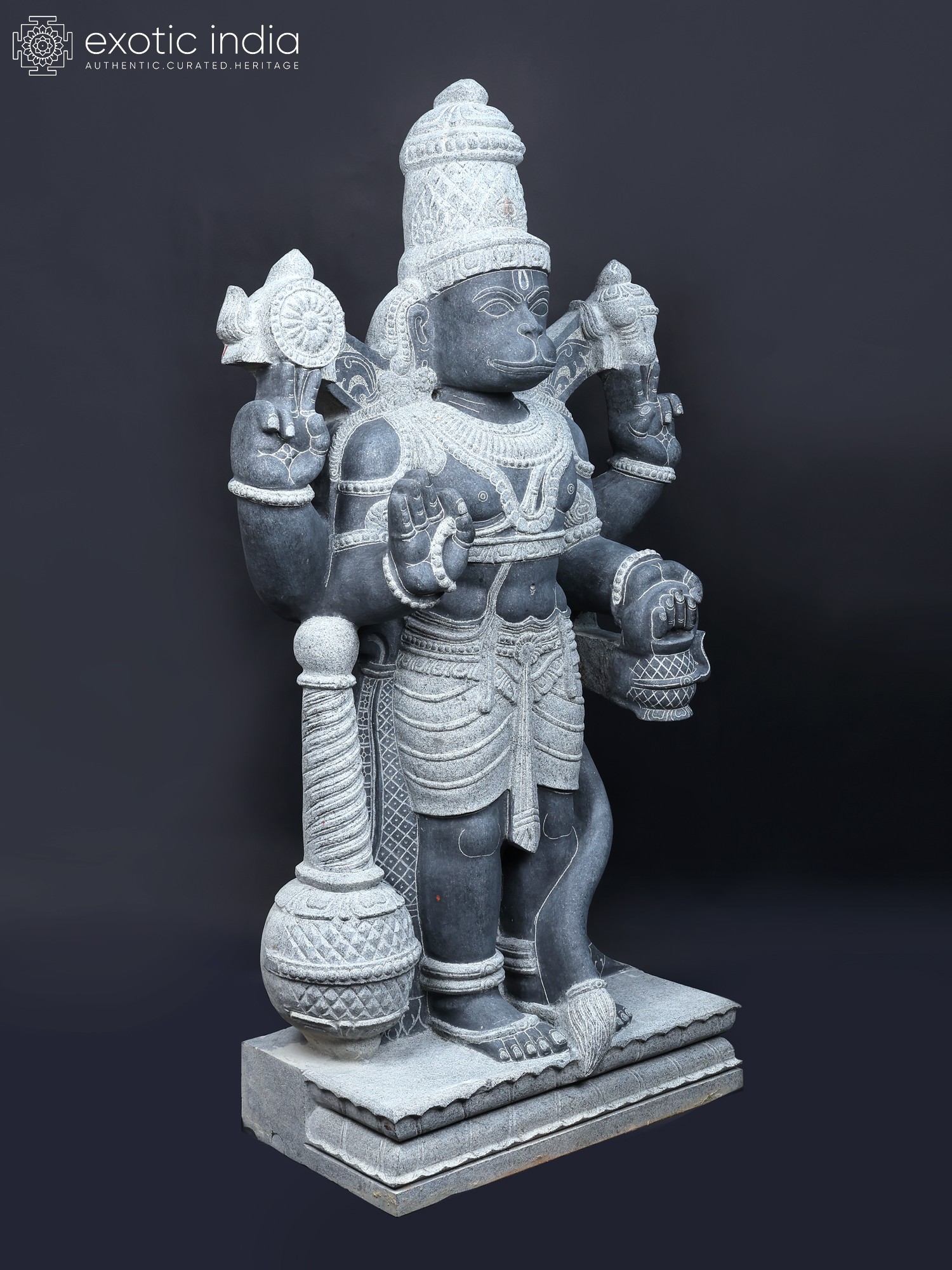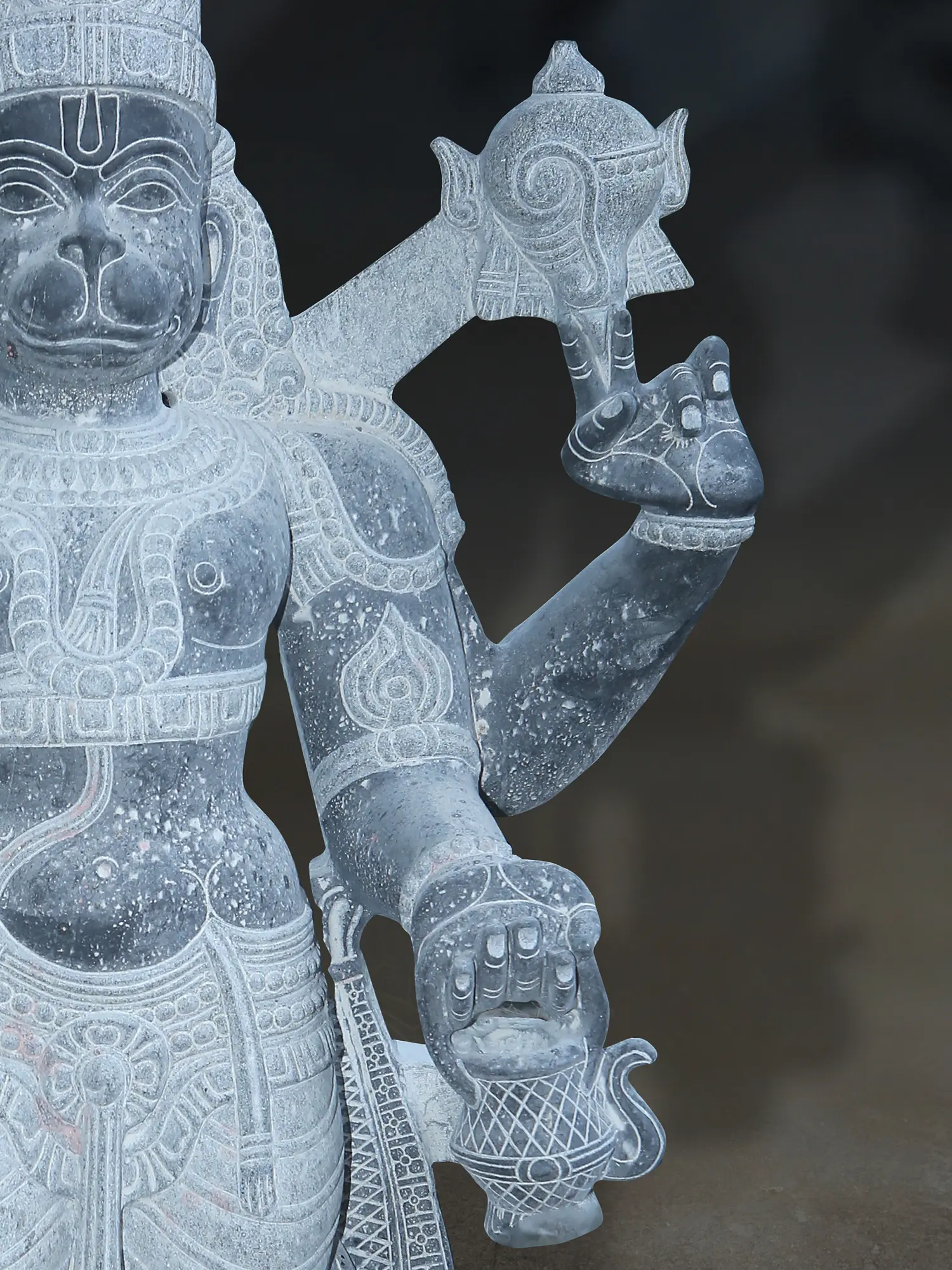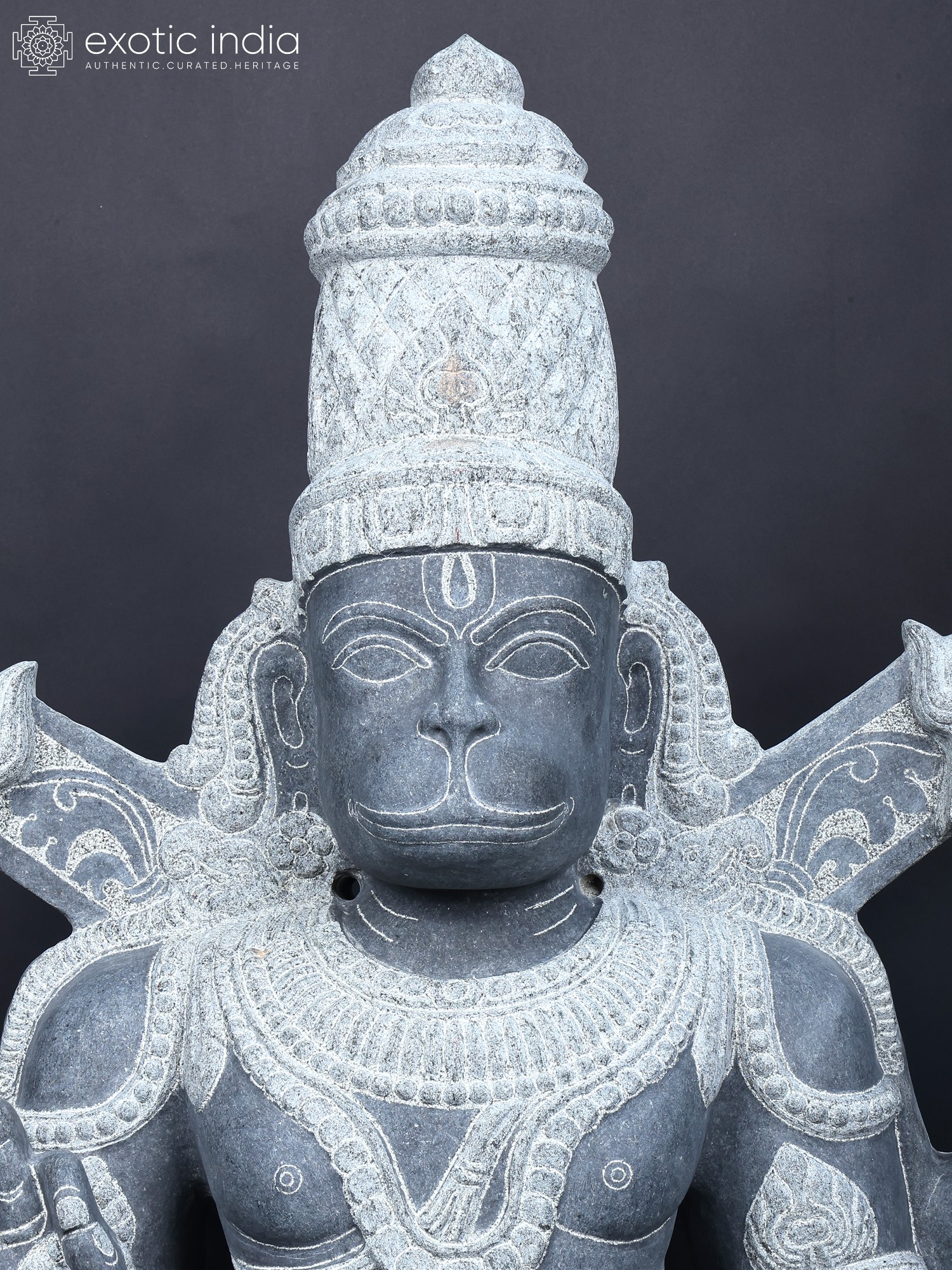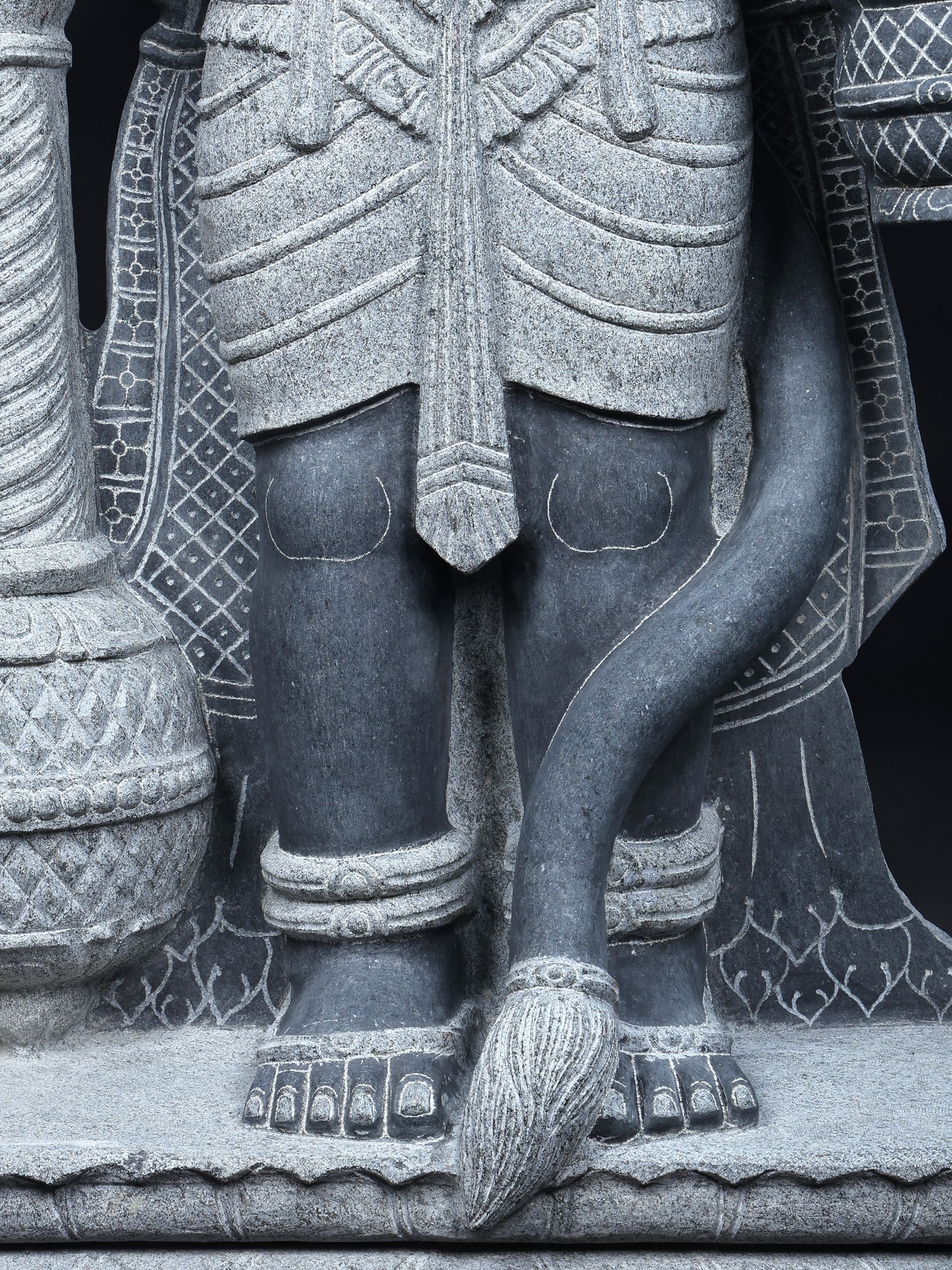 This statue of Lord Hanuman reflects the essence of the respected deity recognized for his devotion, power, and protective nature.