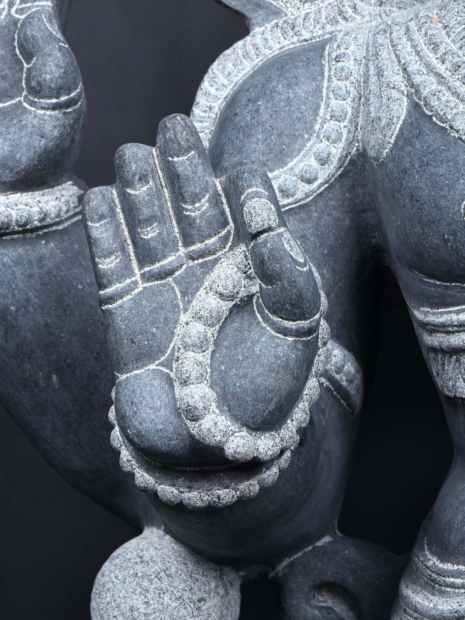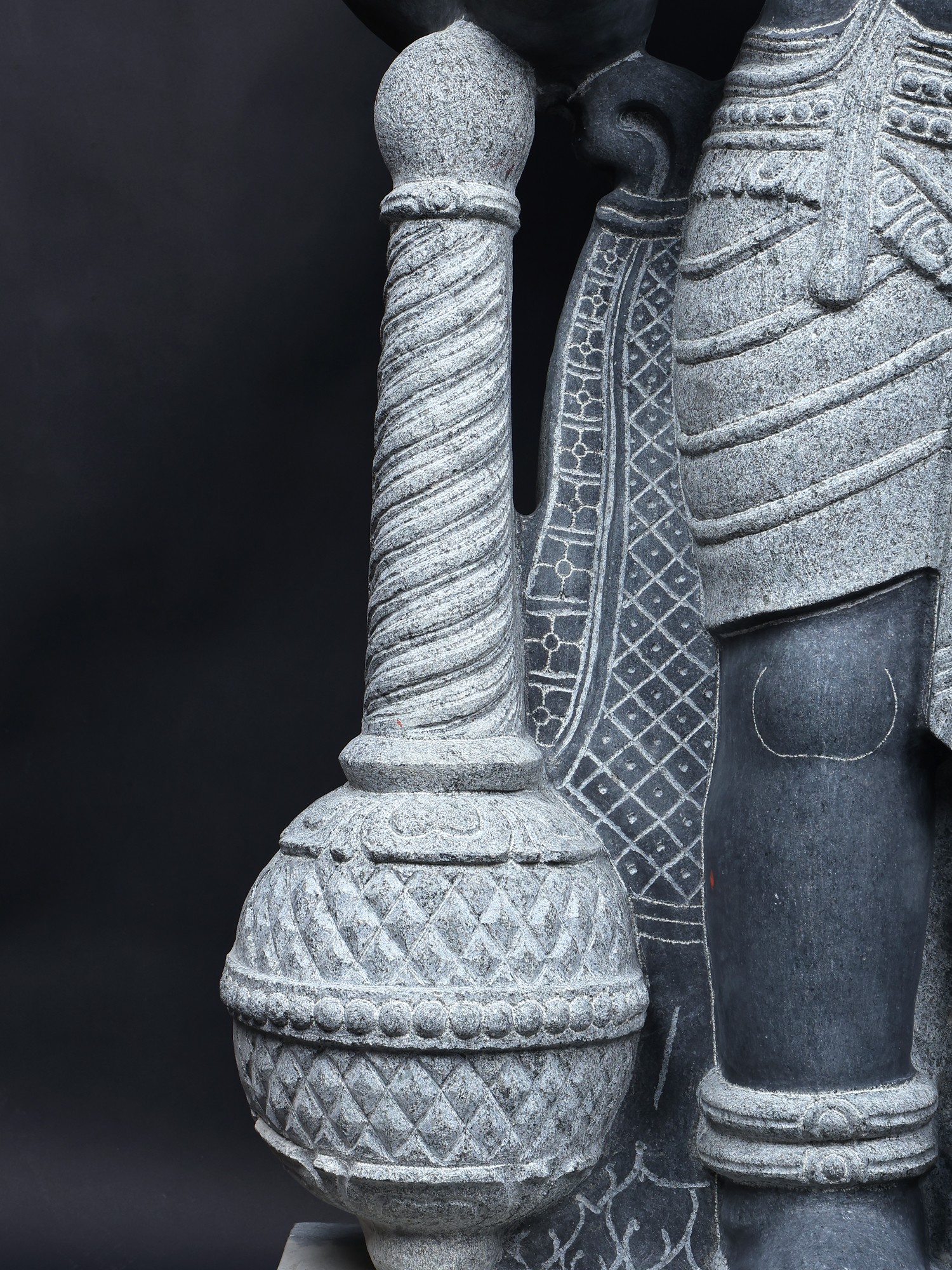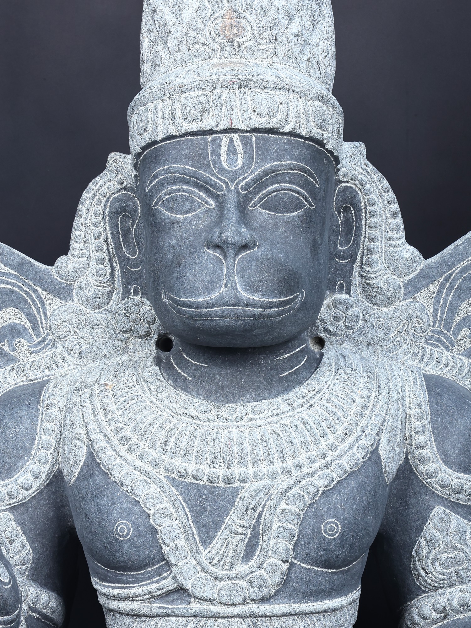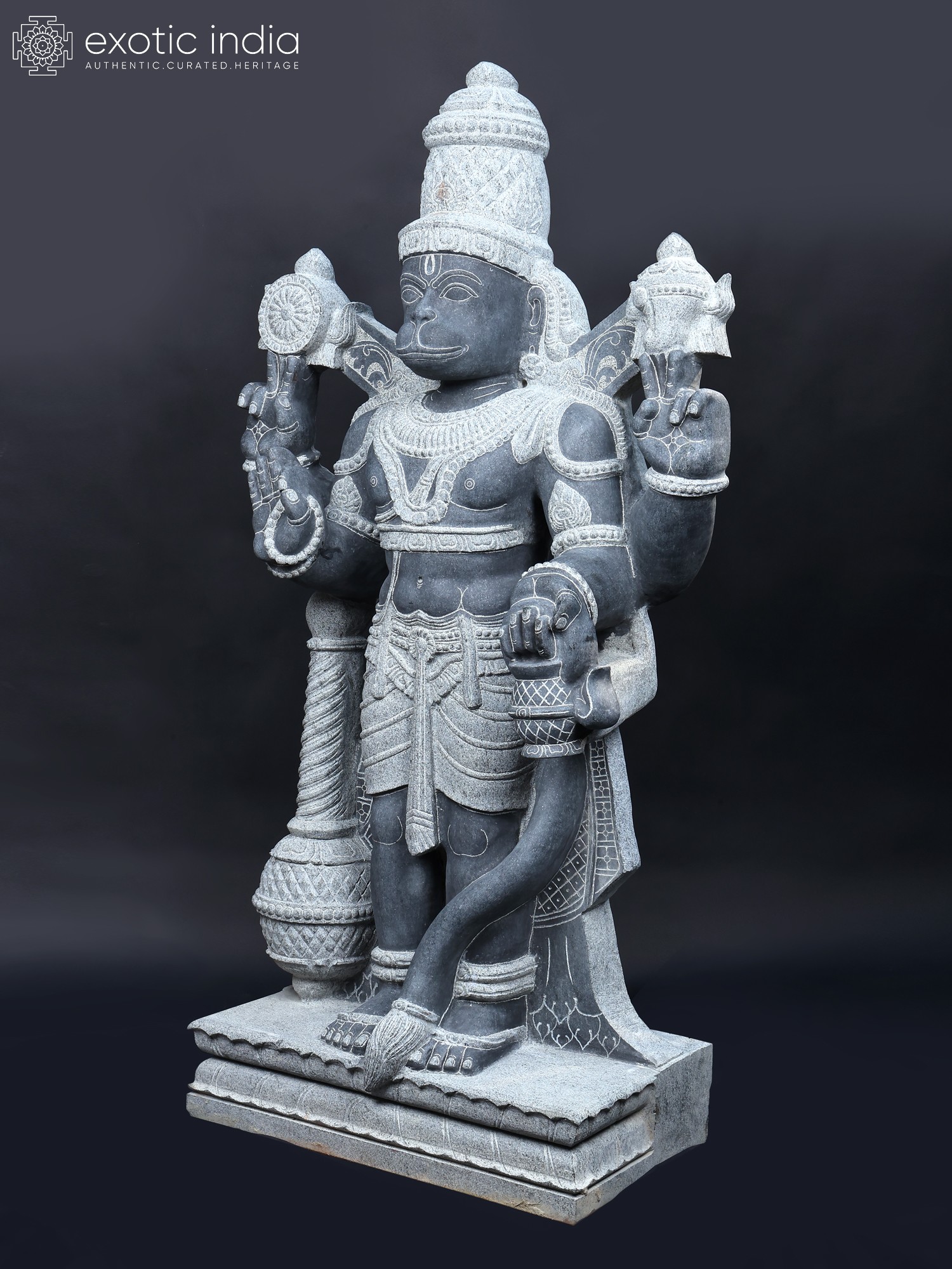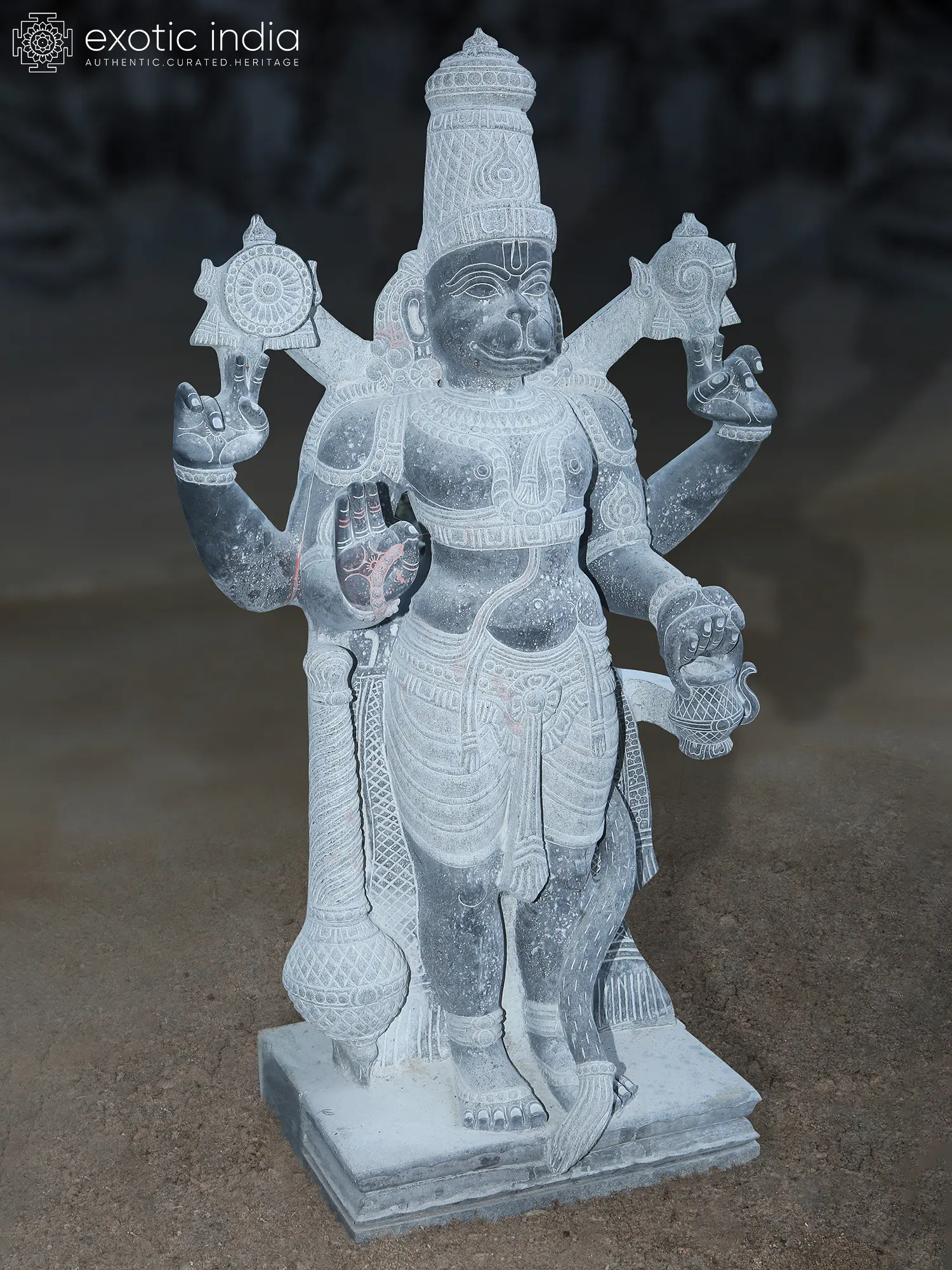 This statue of Lord Hanuman reflects the essence of the respected deity recognized for his devotion, power, and protective nature.