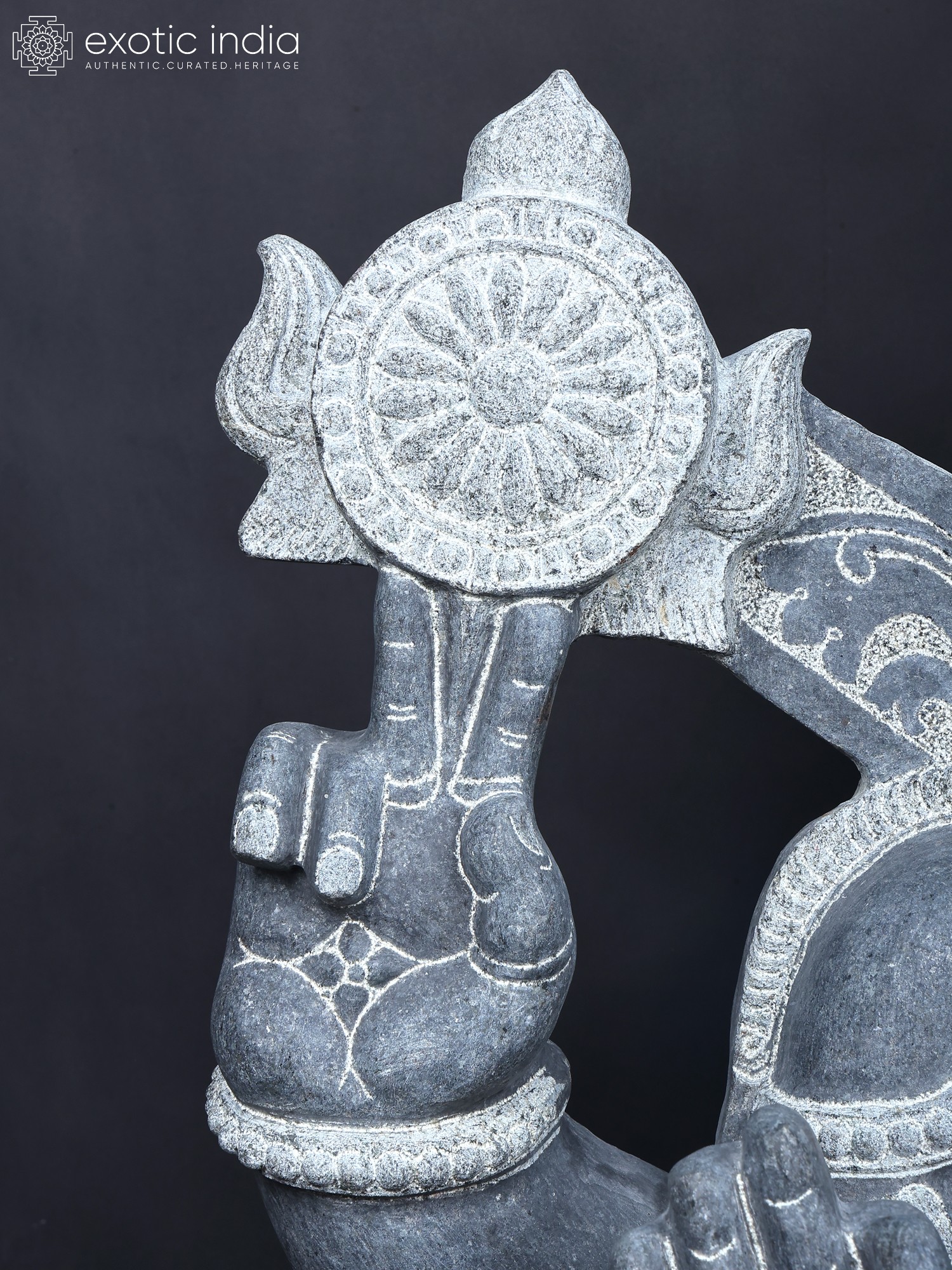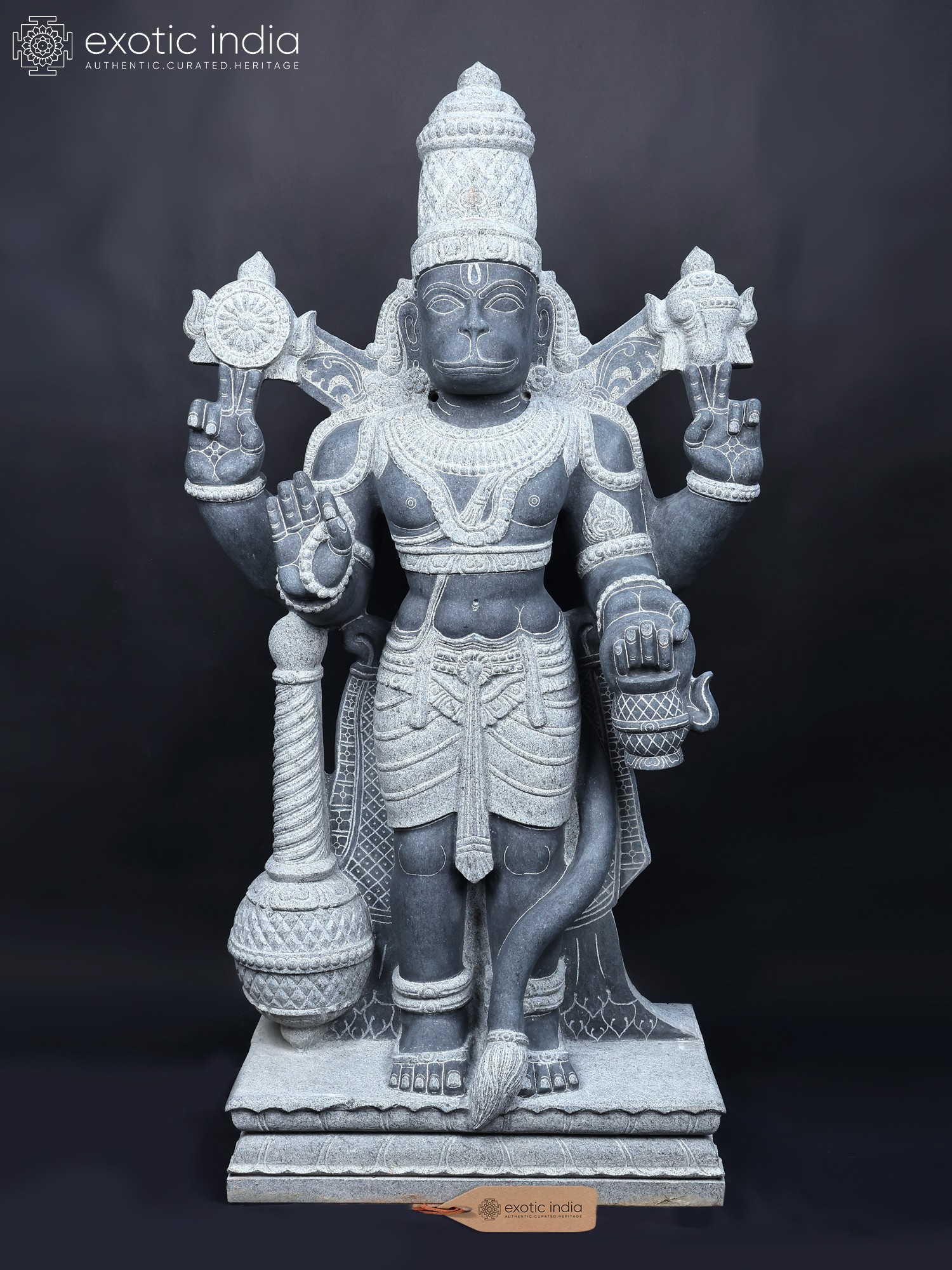 His other hand could wield a mace (gada), which represents power and valour, or a sanjeevani herb, which represents healing and energy.