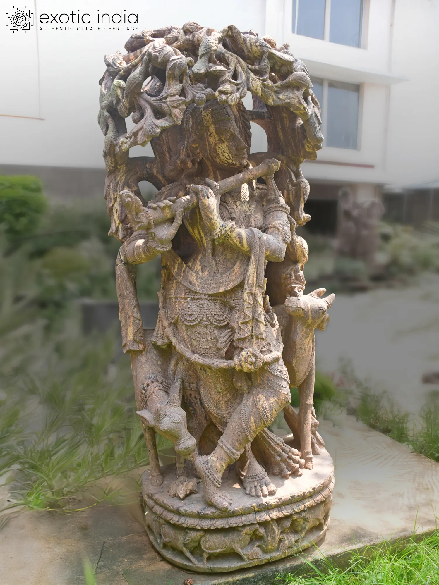 20" Lord Krishna - Murlidhar | Orissa Stone Statue | Exquisite Handmade Indian Art