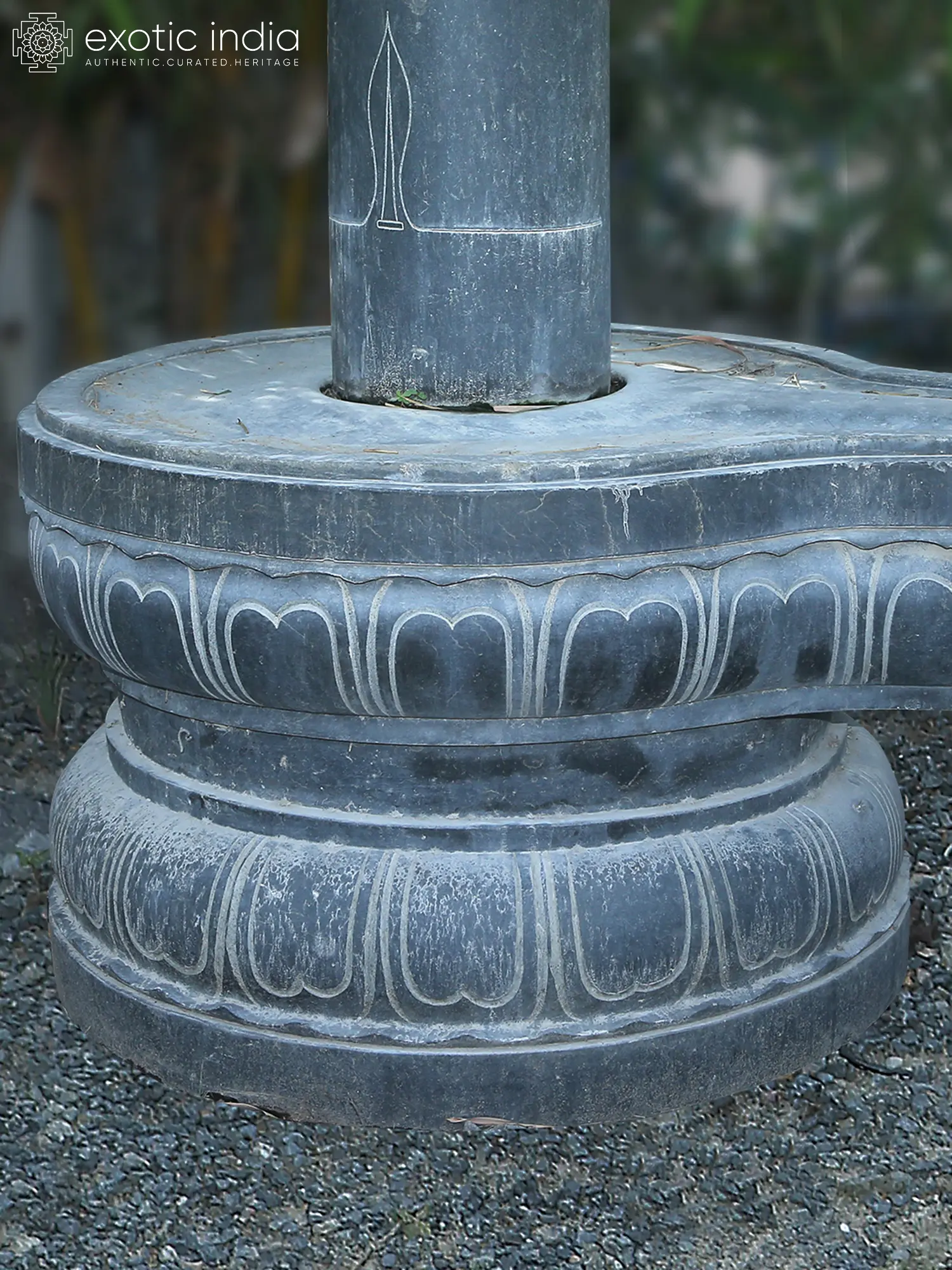 The smooth surface of the granite highlights the intricate details of the linga, while the tilak serves as a reminder of Shiva’s presence and protection.