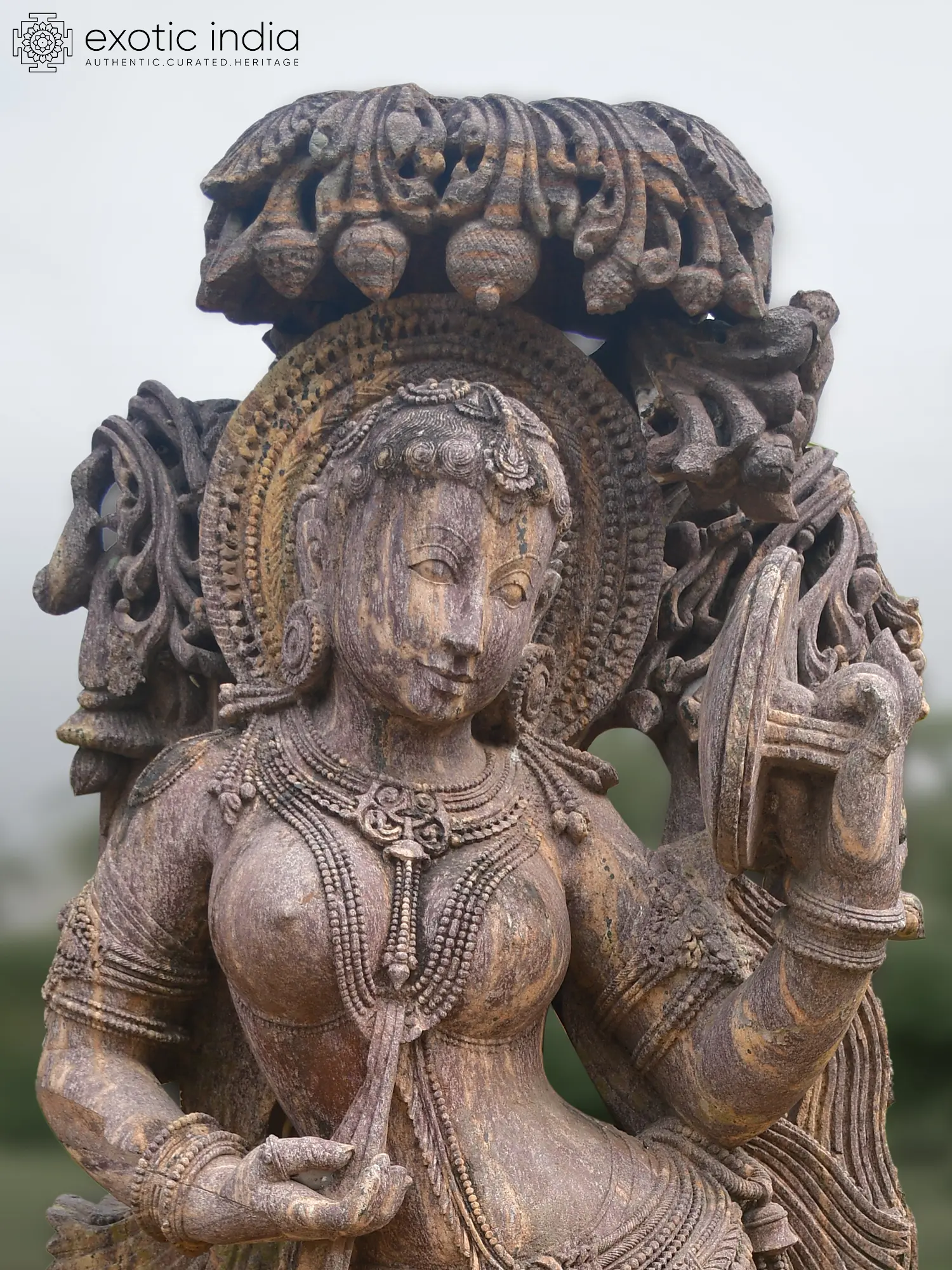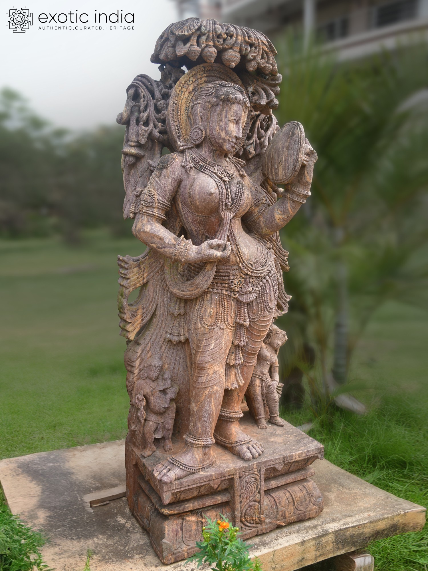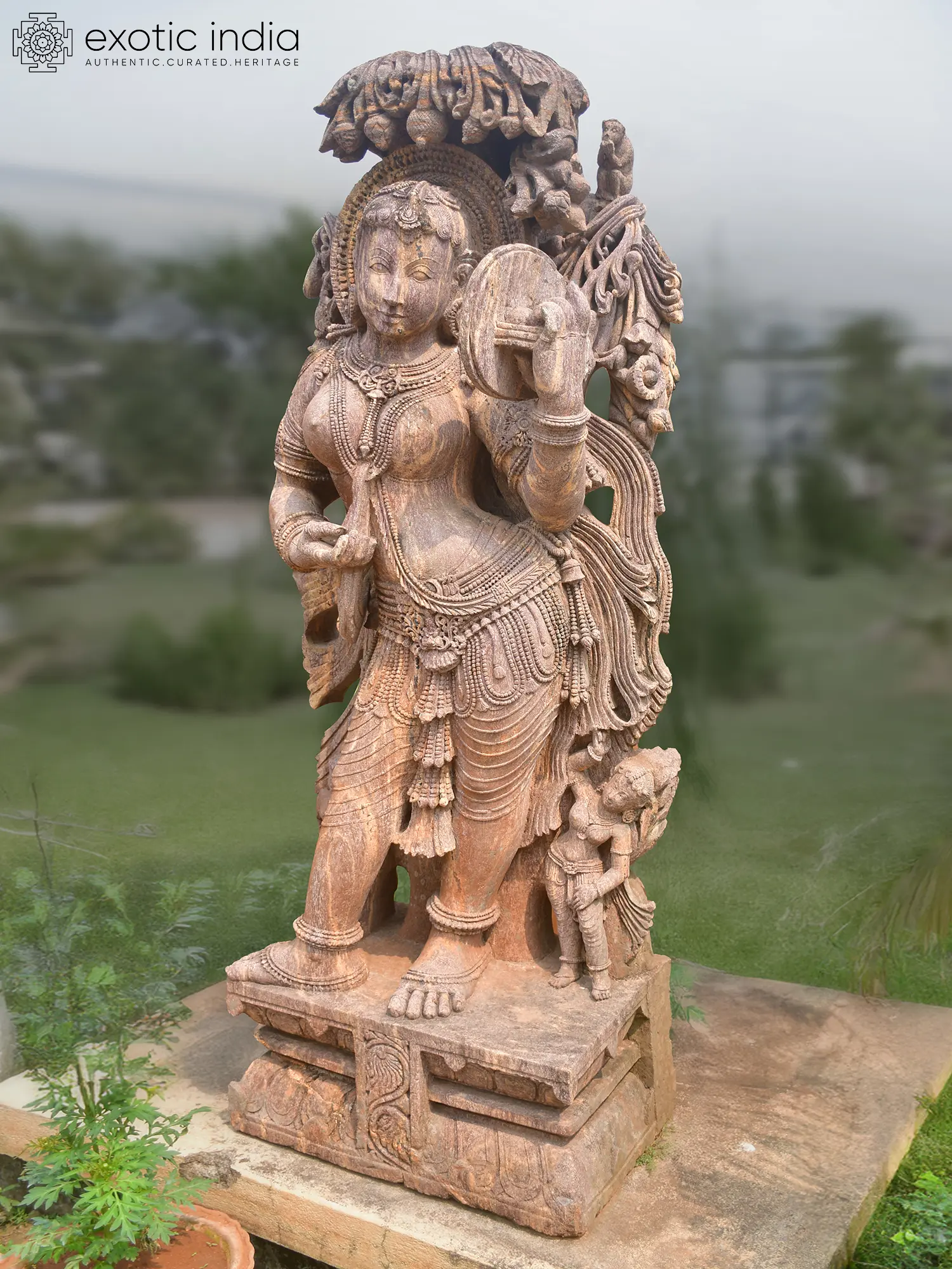 74" Standing Captivating Apsara | Sandstone Statue | Exquisite Handmade Indian Art