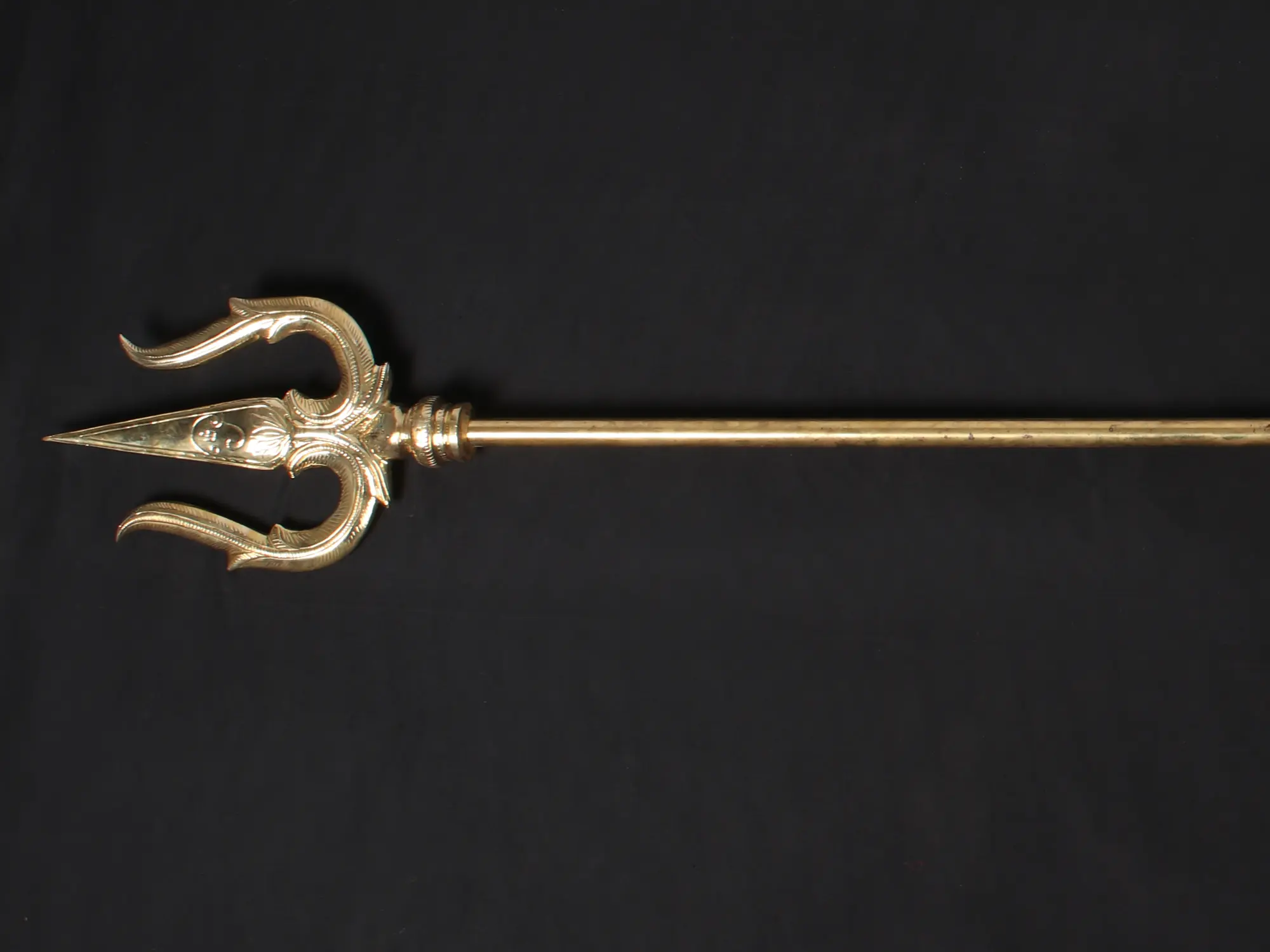 This magnificent, large brass trident is more than just an artifact; it is a powerful representation of cosmic energy and spiritual significance. Standing at an impressive length, it embodies the awe-inspiring might associated with Lord Shiva, the destroyer and transformer in the Hindu pantheon. The very form of the trident, the Trishula, is a potent symbol. Its three prongs are often interpreted as representing the three gunas (Sattva, Rajas, Tamas), the three aspects of the divine (creation, preservation, destruction), or the three states of consciousness (waking, dreaming, deep sleep).