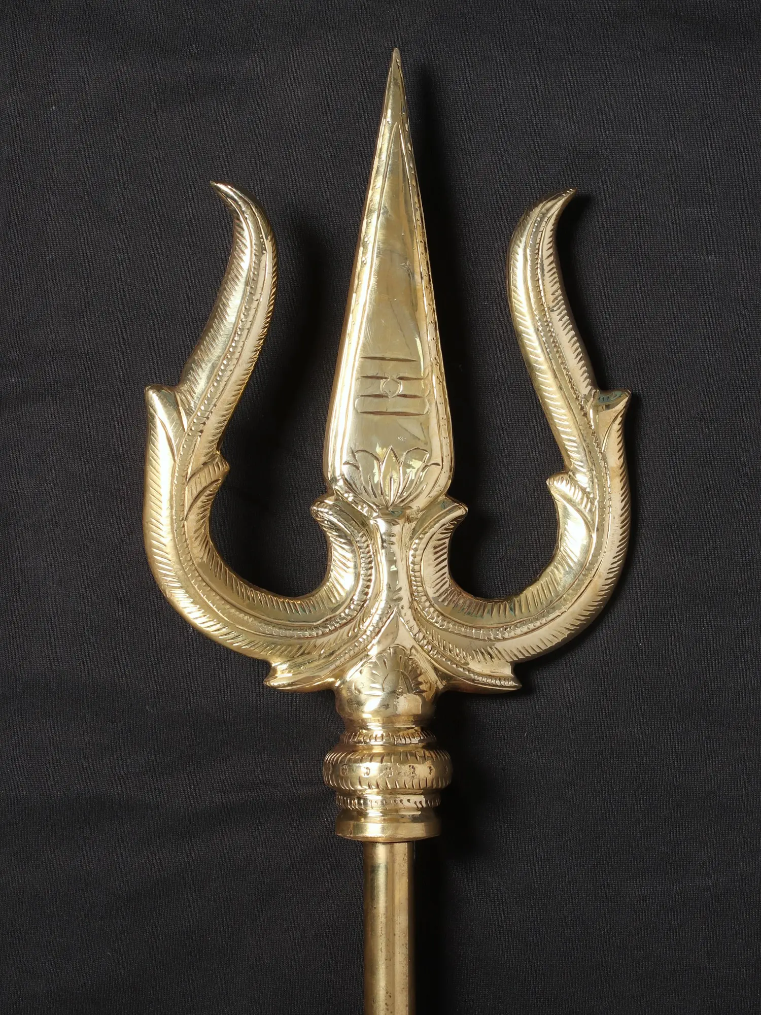 Throughout mythology, the Trishula has been depicted as the primary weapon of Lord Shiva, capable of both immense destruction and potent protection. Tales abound of its use to vanquish demons and uphold cosmic order. It is a symbol of authority, power, and the ability to overcome obstacles. Possessing this brass trident is to hold a tangible connection to these ancient narratives and the spiritual forces they represent. Whether for devotional purposes, as a striking decorative piece, or as a powerful reminder of spiritual strength, this trident is a statement of profound belief and artistic excellence. Its substantial presence and symbolic depth make it a truly remarkable piece for any altar, sacred space, or collection.