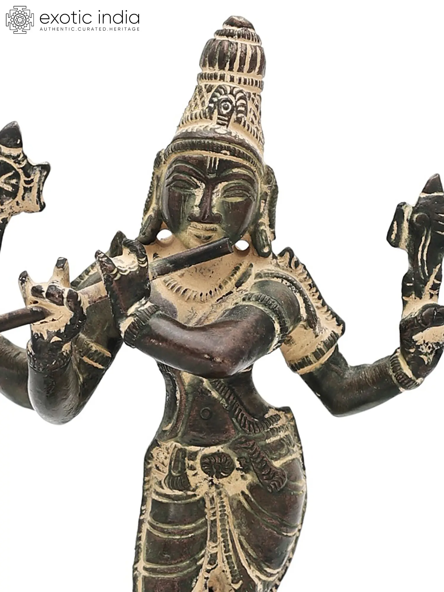 In the heart of the Lord Murli Krishna brass statue lies a convergence of artistry and divine symbolism. Crafted with meticulous precision this masterpiece encapsulates the spiritual essence of Lord Krishna, adorned with a celestial flute. The brass medium lends a timeless charm to the statue, with intricate details that mirror Krishna's playful divinity. Its warm radiance creates an atmosphere that beckons a connection to the cosmic forces. Every nuance reflects a profound dedication, elevating the statue beyond mere art to a conduit for spiritual contemplation. This creation is a testament to the artisan's skill, weaving a narrative of reverence and aesthetic brilliance.
