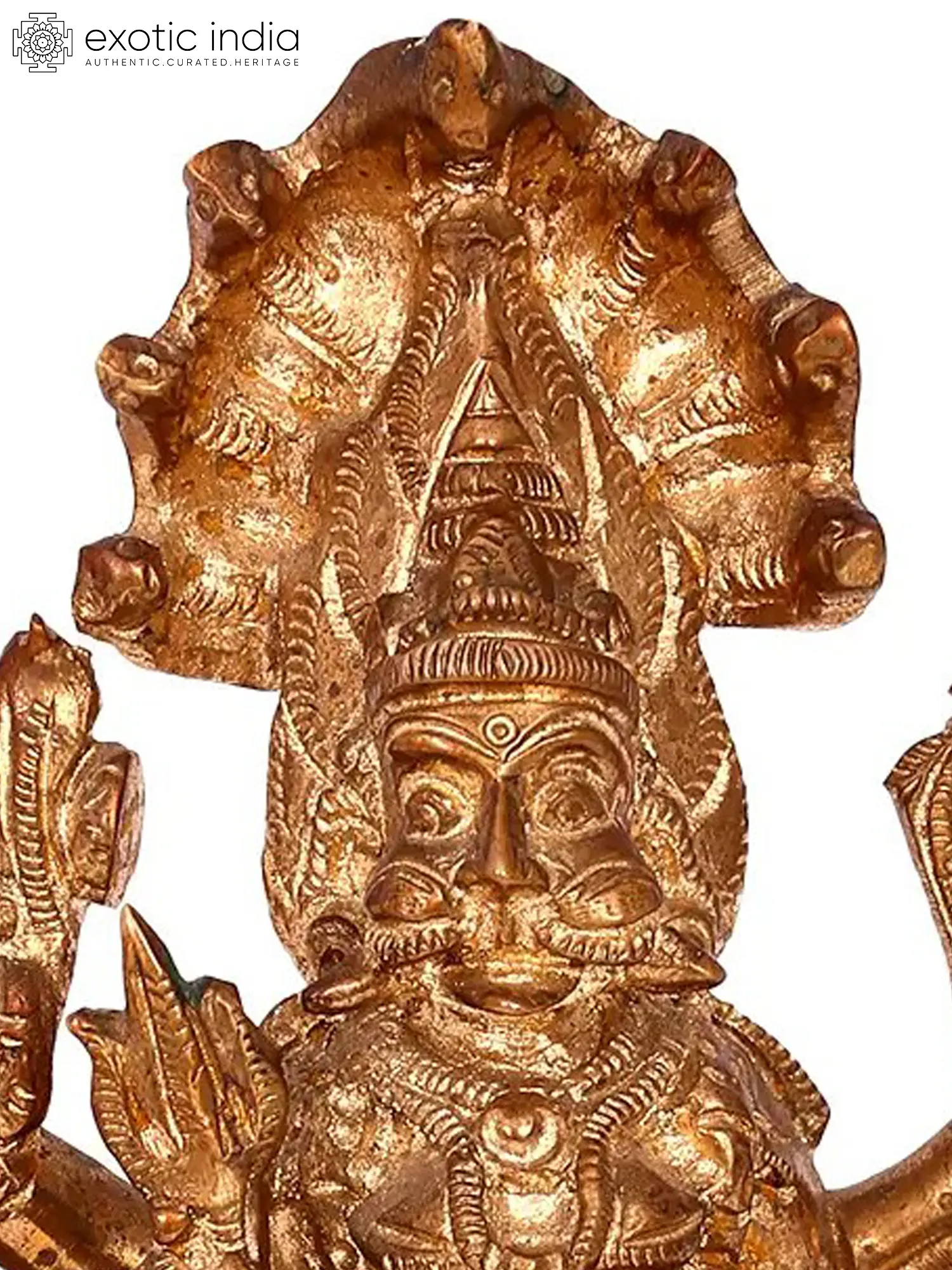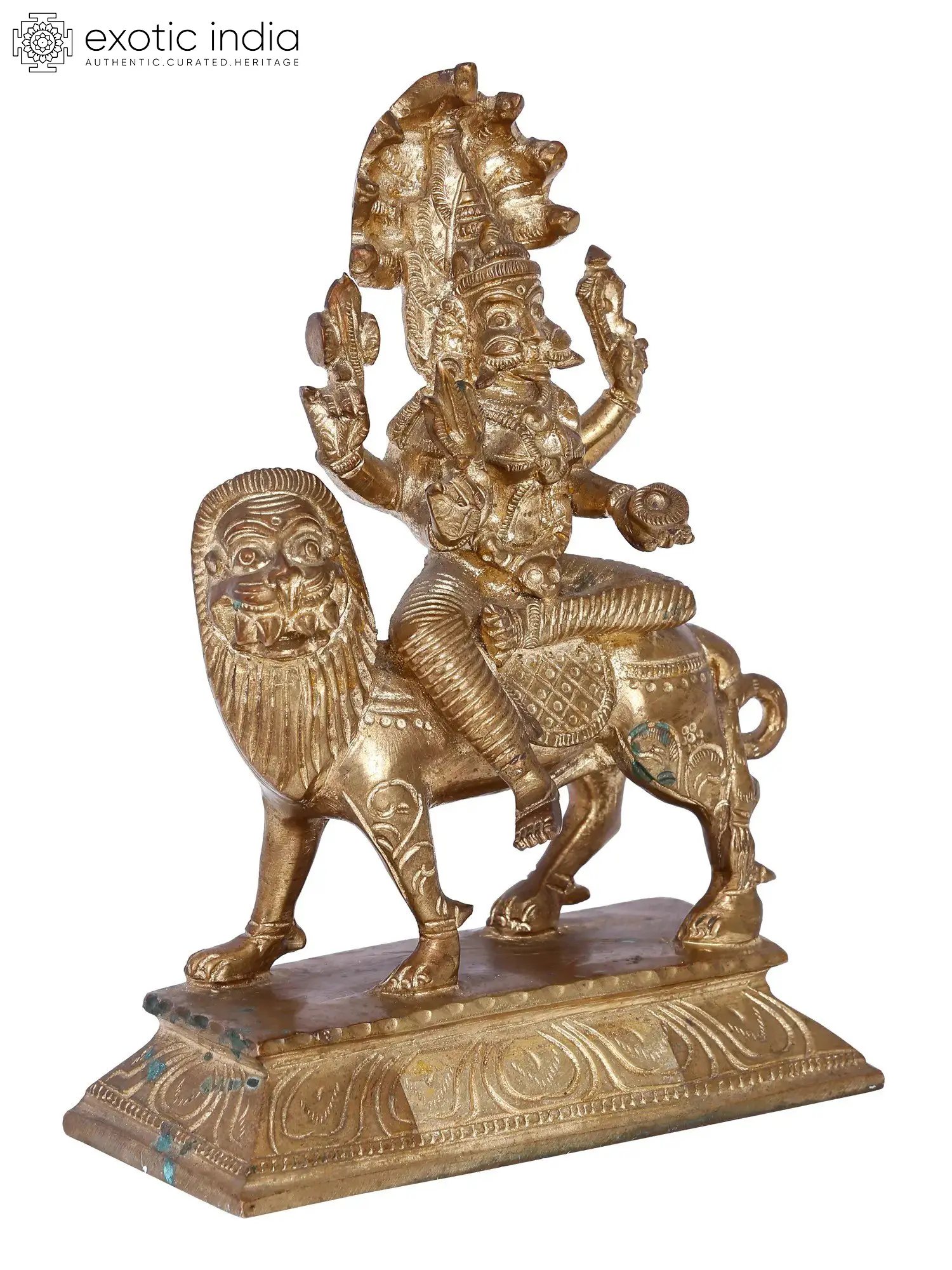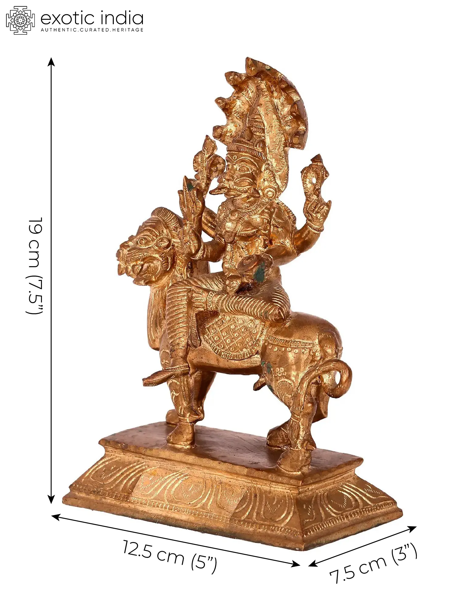 Experience the fierce yet protective energy with our Goddess Pratyangira (Atharvana Bhadrakali) sculpture, a powerful creation through Madhuchista Vidhanam in Swamimalai's Panchaloha Bronze. This artwork beautifully portrays Goddess Pratyangira, symbolising the Hindu philosophical concept of 'Divine Protection.' The lost-wax technique intricately details the fierce form, signifying the goddess's ability to destroy negativity and protect her devotees. Invite the potent energy of Pratyangira into your space, fostering a sense of spiritual strength and divine safeguard.