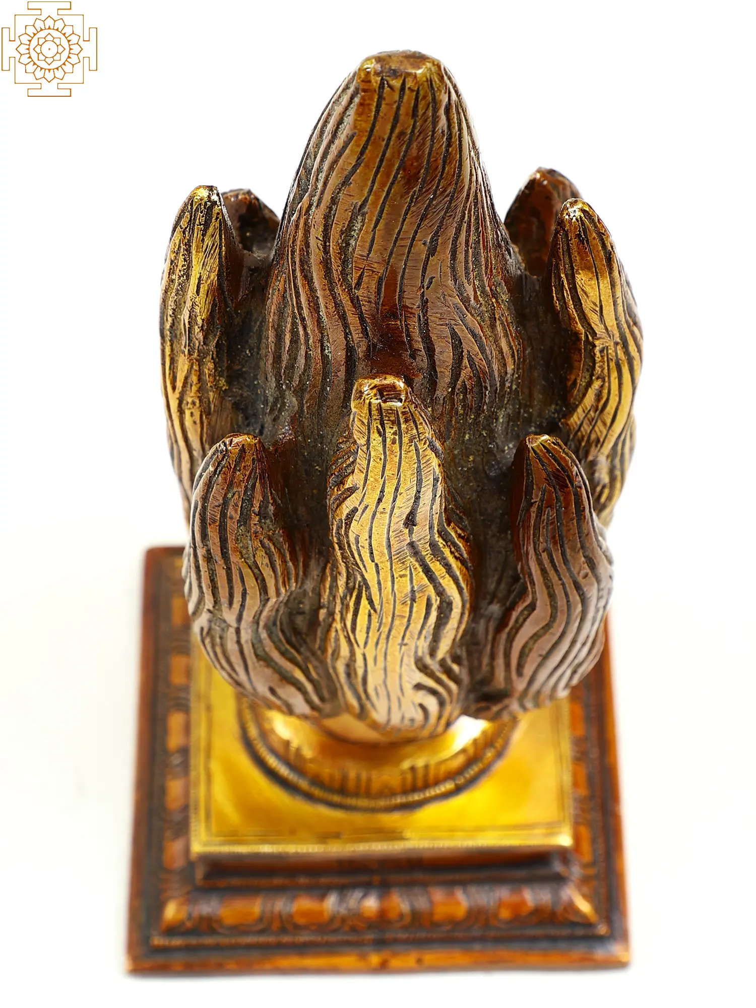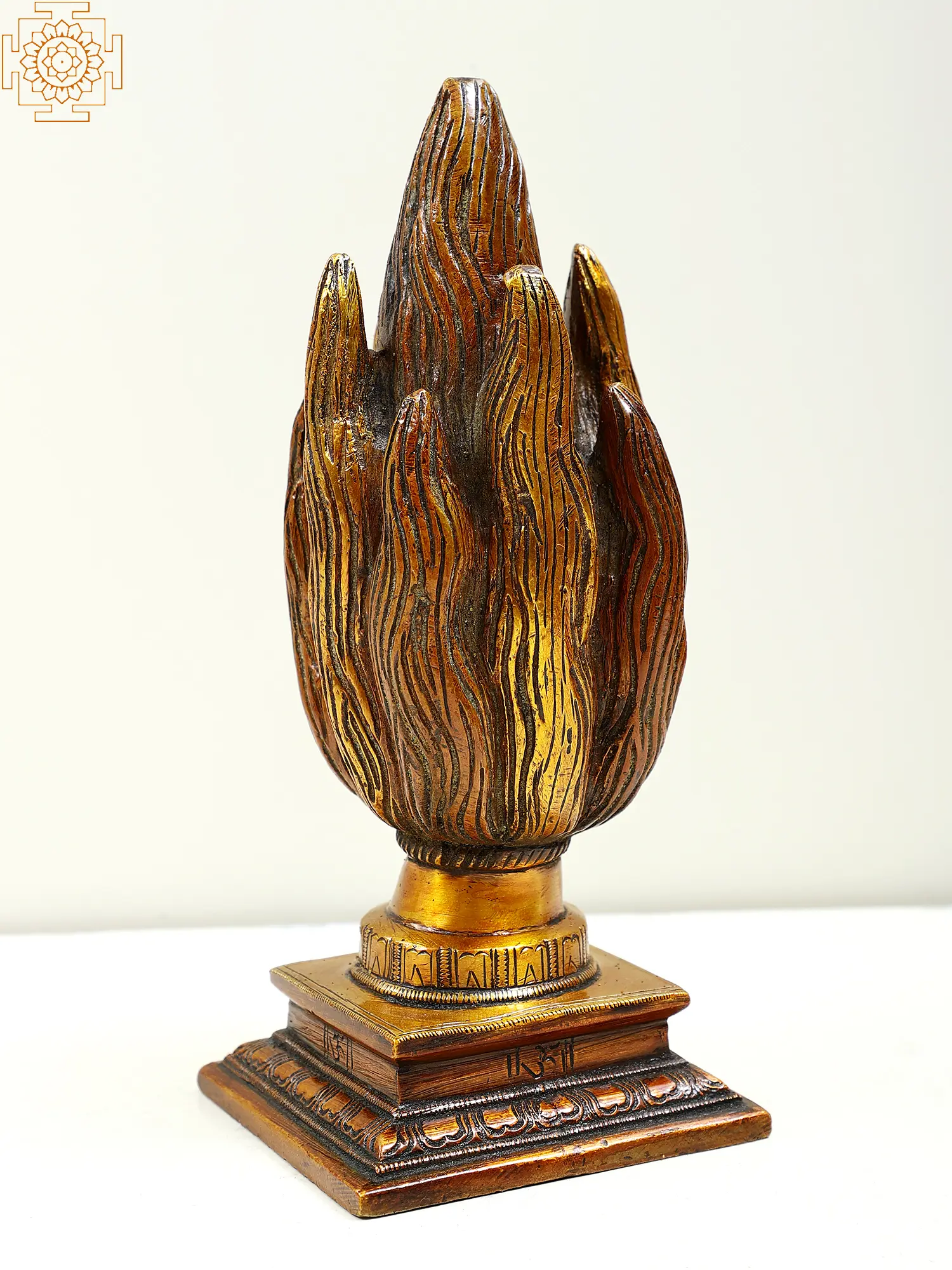 This brass sculpture embodies Agni, the Vedic god of fire and transformation. Flames dance in his hands, symbolizing the cyclical nature of creation and destruction. His presence sanctifies rituals, bridging the physical and spiritual realms. Adorned with intricate motifs, he becomes the very fire that ignites our aspirations. As we gaze upon Agni, we're reminded that within the crucible of life's challenges, transformation unfolds, purifying us like gold in the forge of experience.
