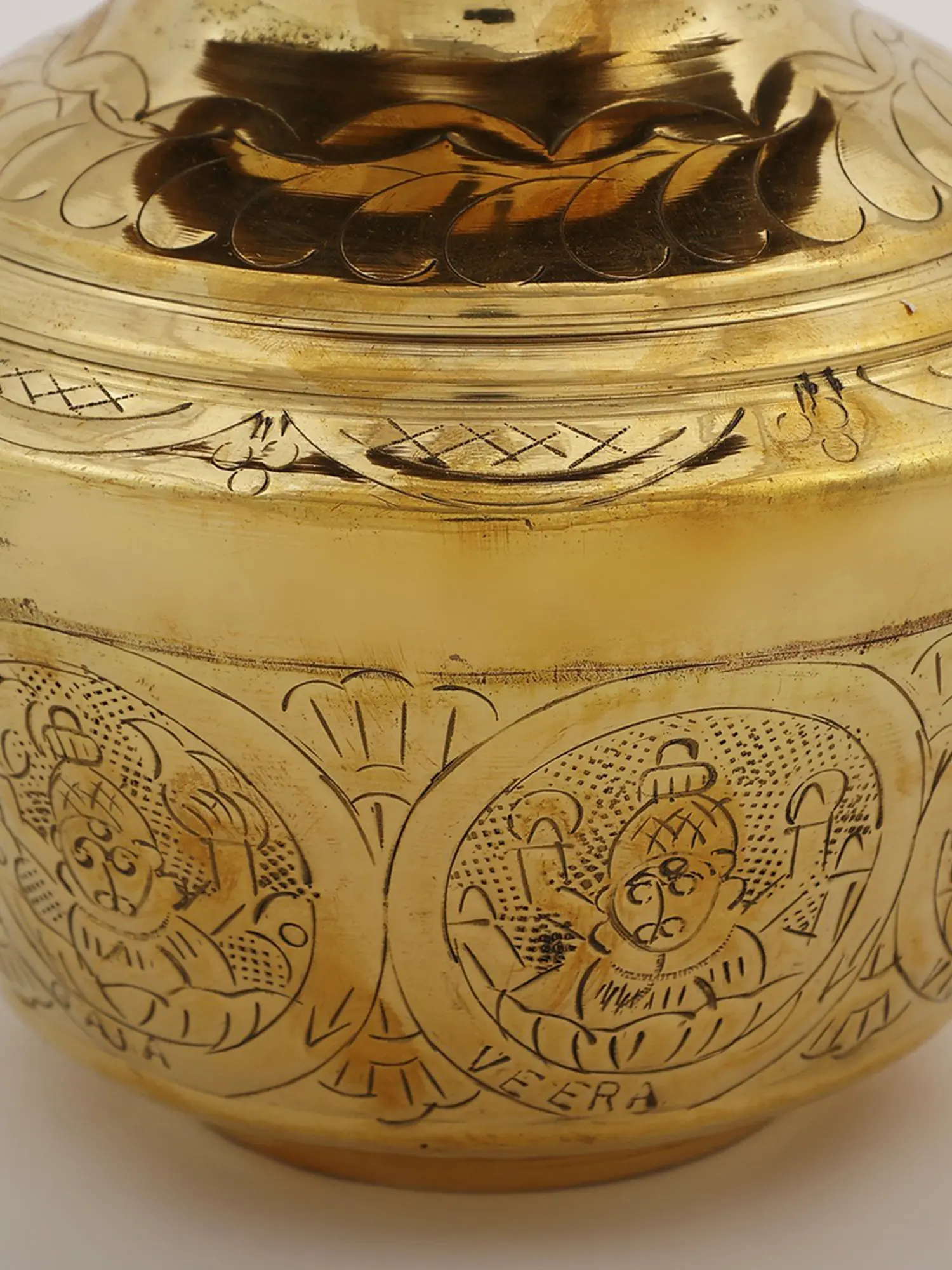 This Ashtalakshmi Puja Kalash is a symbol of wealth, well-being, and spiritual prosperity. In Hindu philosophy, the Kalasha is a sacred pot that embodies cosmic abundance and divine energy. This intricately designed brass Kalasha represents the philosophy that material and spiritual wealth are interconnected. As you worship the Ashtalakshmi, you seek the blessings of the eight forms of the goddess, aligning with the principles of abundance and spiritual growth.