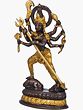 Her stance is fearless and rock-like - both Her feet are on the backs of lowly boars, with one leg raised as if to balance the spear-headed end of Her trishool directed at where the defeated Mahisasura is usually portrayed in Her iconography. This is complemented by the fearsome weapons She wields in each of Her eight (ashta) hands (bhuja). Each of the finish variations this sculpture comes in does great justice to Her beauteous roopa.
