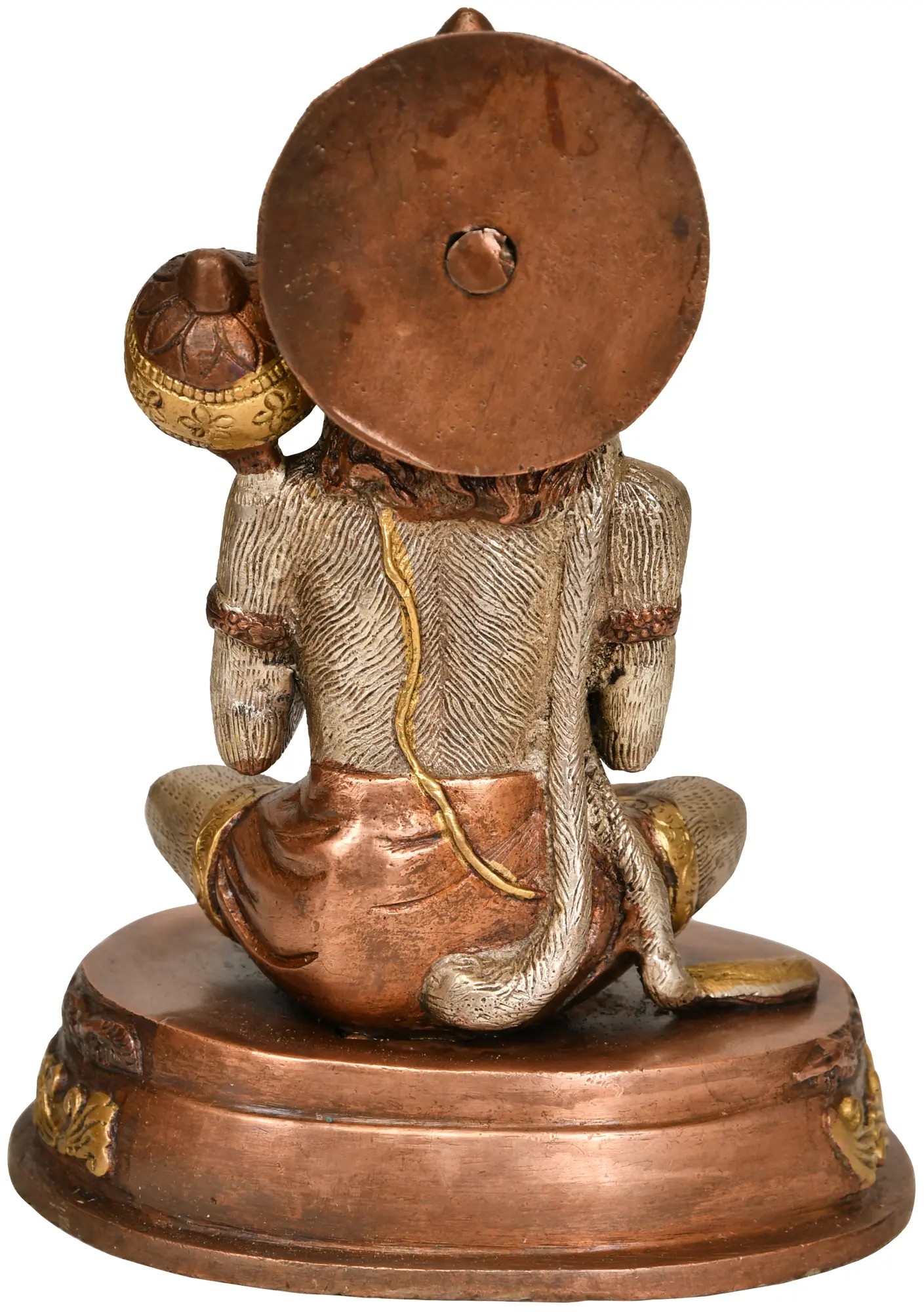 This brass statue portraying, Lord Rama Lives in The Heart of Bhakta Hanuman, captures the essence of unwavering devotion and divine connection. Lord Hanuman, depicted in a meditative posture, radiates serenity as he blesses devotees with the Abhaya Mudra, signifying protection and fearlessness. His mace symbolizes his eternal vigilance and safeguarding of devotees.
