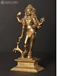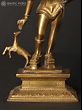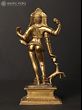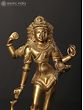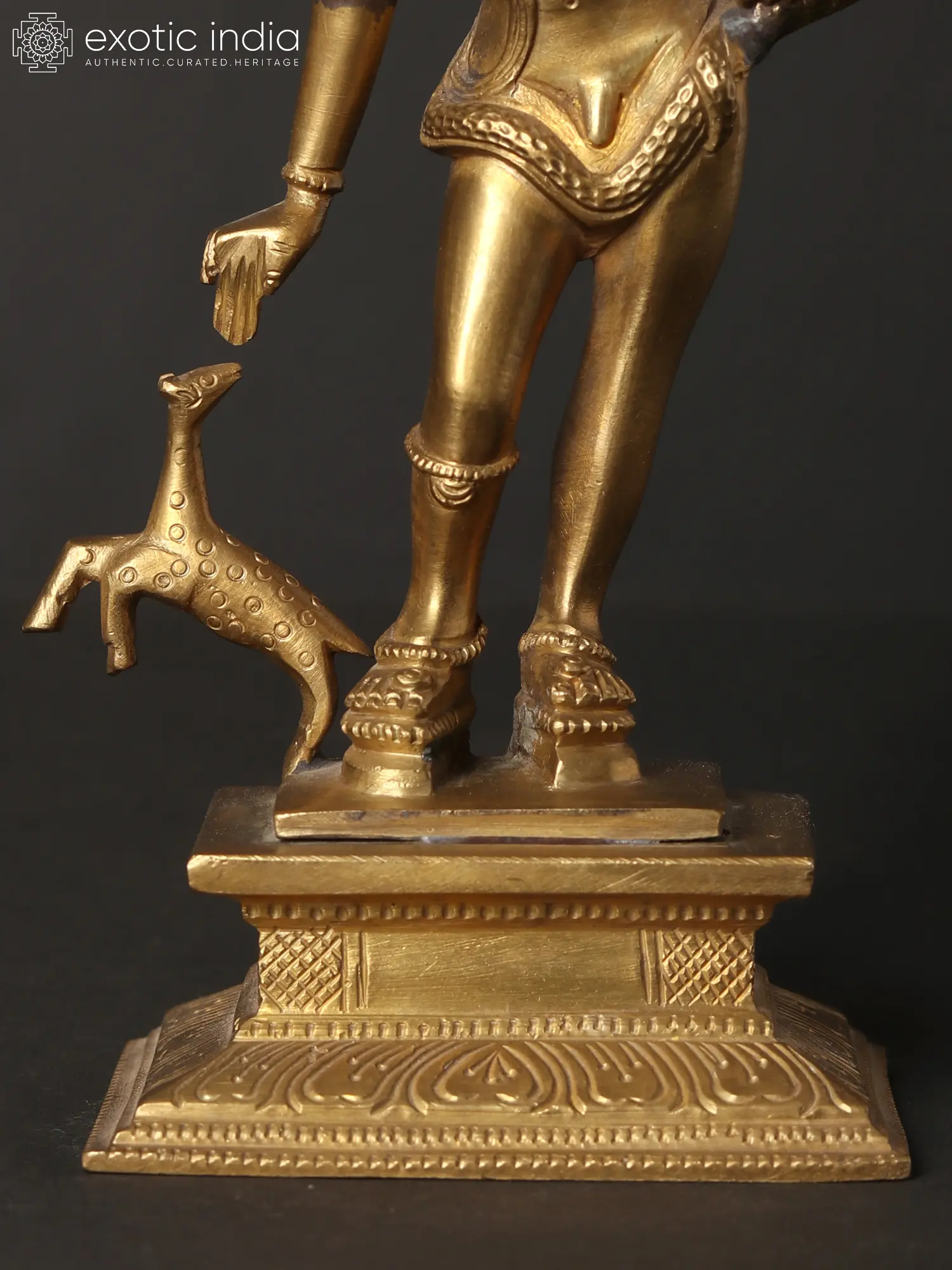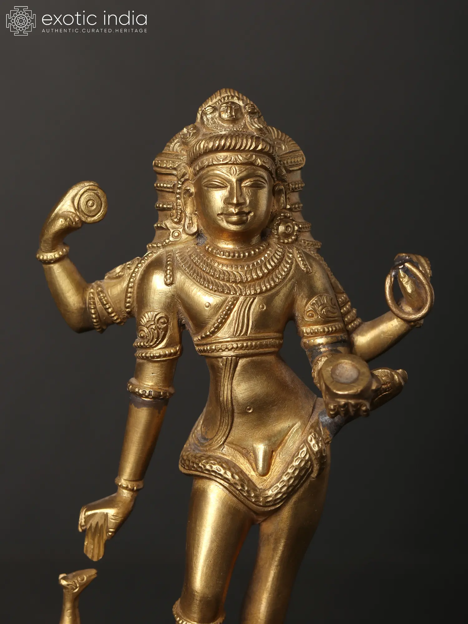 In a startling attire- elaborate hairdo, serpent wrapped around his bare waist, adorned with Yajnopavita (sacred thread) while carrying a skull, wearing the earring of Parvati in his left ear and his own in the right, Bhikshatana Shiva is accompanied by a dog, whose lunging figure adds dynamism to the composition.