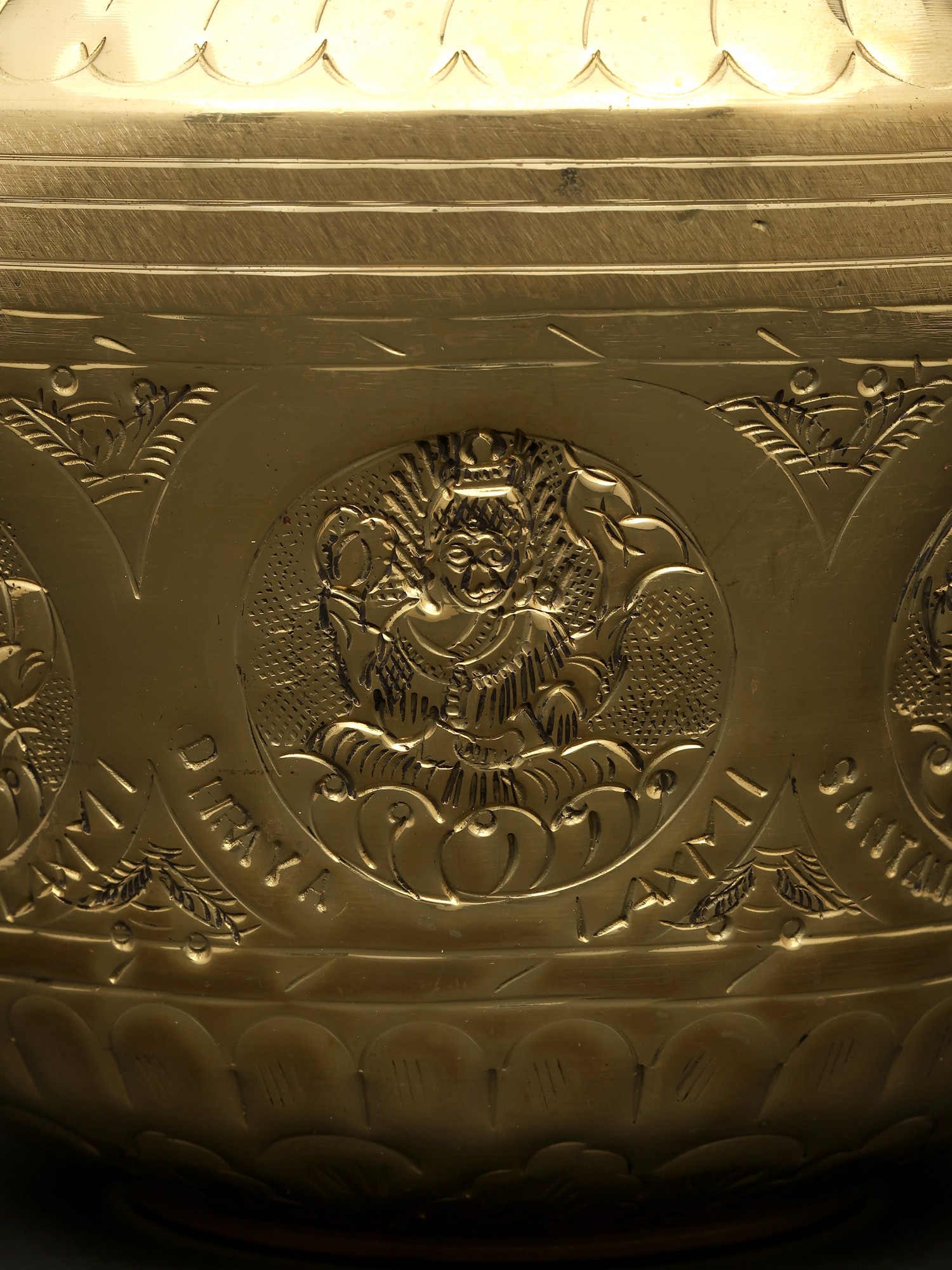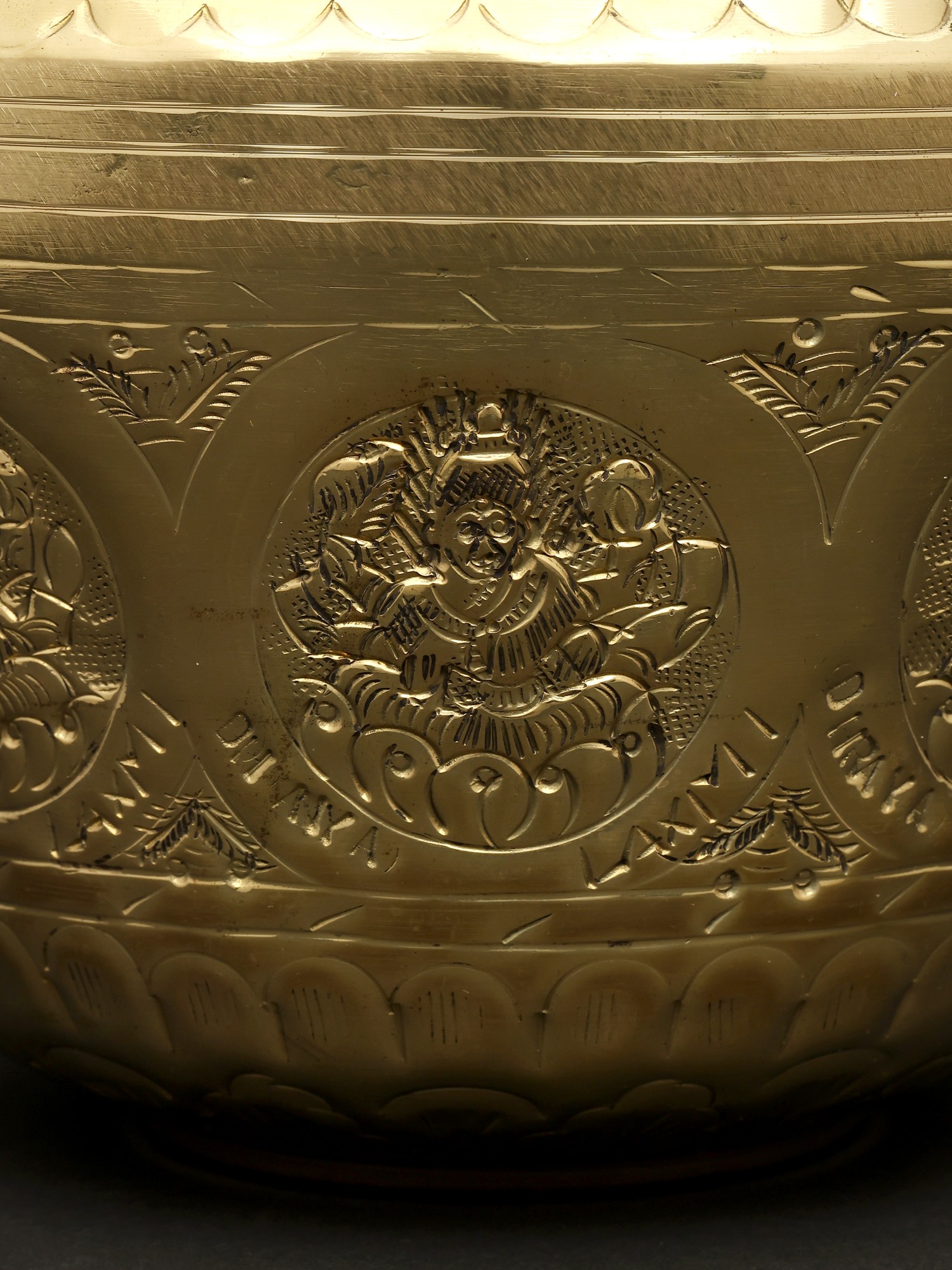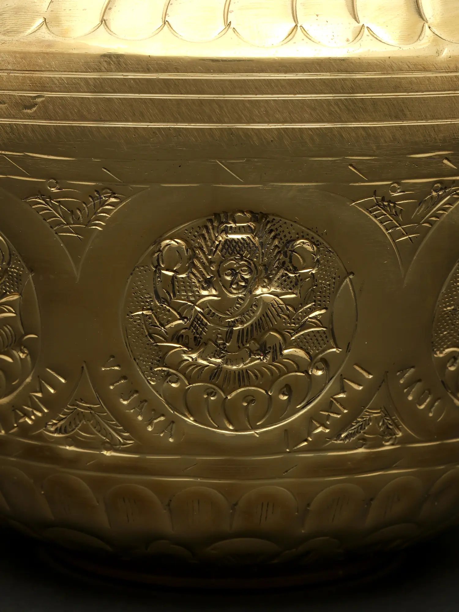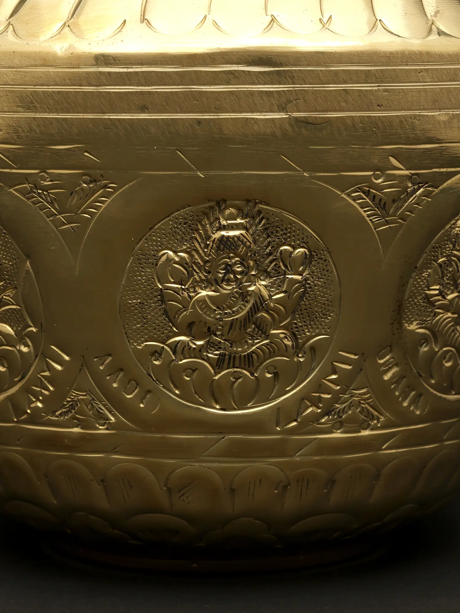 This Ashta Lakshmi Kalash is an excellent addition to any ceremony or puja collection. The surface of this magnificent sculpture depicts the eight manifestations of Goddess Lakshmi, known as Ashta Lakshmi. This metal Kalash is extremely important for auspicious events, bringing good luck and wealth to the home. The Kalash has a rustic appeal with vines and flowers covering its neck. The center ring has exquisitely sculpted Ashta Lakshmi idols, adding to the celestial charm. The golden finish adds to the piece's appeal. The Ashta Lakshmi Kalash is a solemn and graceful addition to any puja location, pouring blessings and auspiciousness into the surrounding environment.
