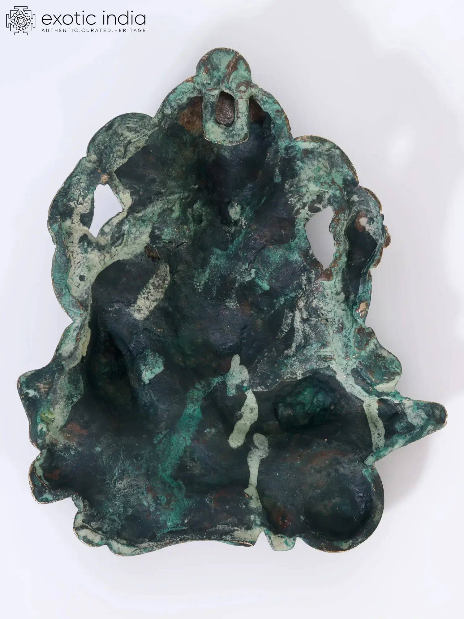 The Brass Chaturbhuja Lord Ganesha Seated on Mushak Wall Hanging is a divine embodiment of artistry and spirituality. Tit portrays Lord Ganesha in a seated posture atop a Mushak (mouse), symbolizing intellect's triumph over worldly desires. The intricate detailing captures the deity's four arms, each holding symbolic objects.