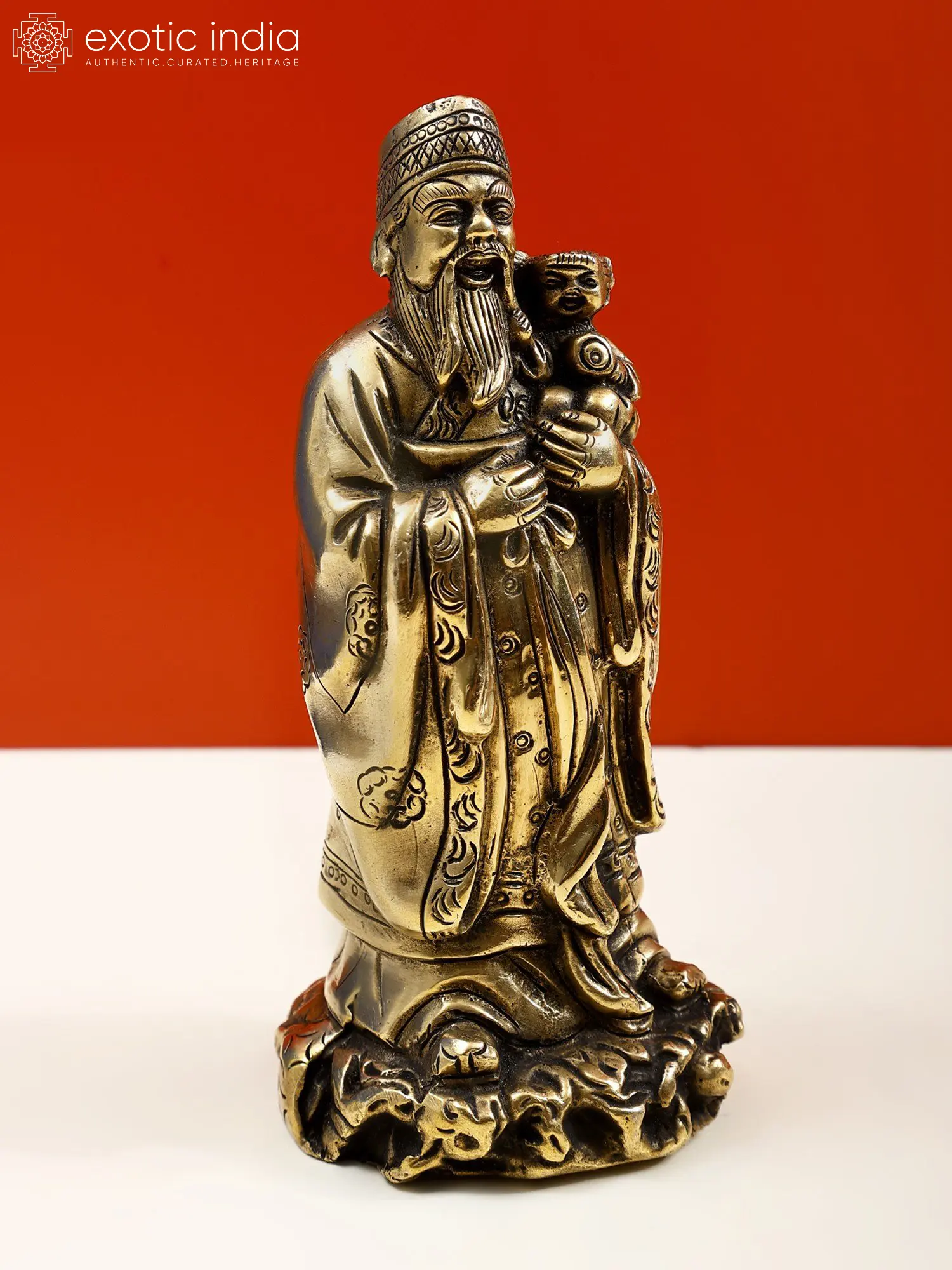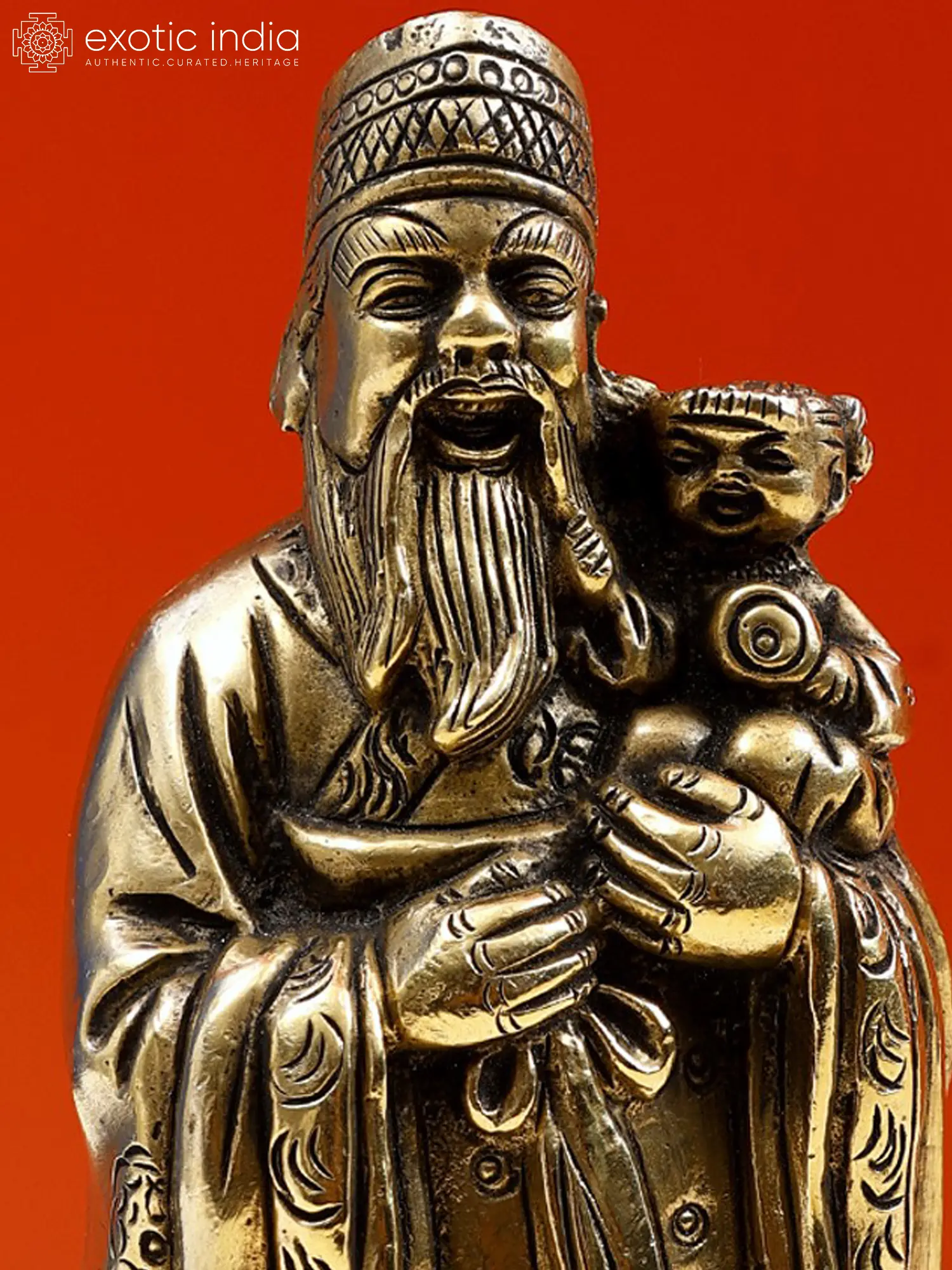 This exquisite brass figurine captures the essence of a revered deity from Chinese folklore, a symbol of immense good fortune, prosperity, and a long, fulfilling life. Meticulously handcrafted, this piece embodies the rich artistic heritage of China, where such figures are not merely decorative but hold deep spiritual and cultural significance. The warm, lustrous sheen of the brass further enhances its auspicious aura, making it a captivating centerpiece for any home or sacred space. The figure depicts a benevolent elder with a flowing beard, a symbol of wisdom and experience. His joyful expression and the gentle way he cradles a child speak volumes about the blessings he bestows: abundance, happiness, and the continuation of family lineage. In Chinese mythology, the presence of children is often associated with good luck and a harmonious household. This deity is often recognized as Fu Xing, the Star of Happiness, who is believed to bring joy, good fortune, and success to those who honor him. He is one of the three star gods (Sanxing) of Chinese mythology, alongside Lu Xing (prosperity) and Shou Xing (longevity), and together they represent the paramount blessings desired in life. ––––––––––––––––––––