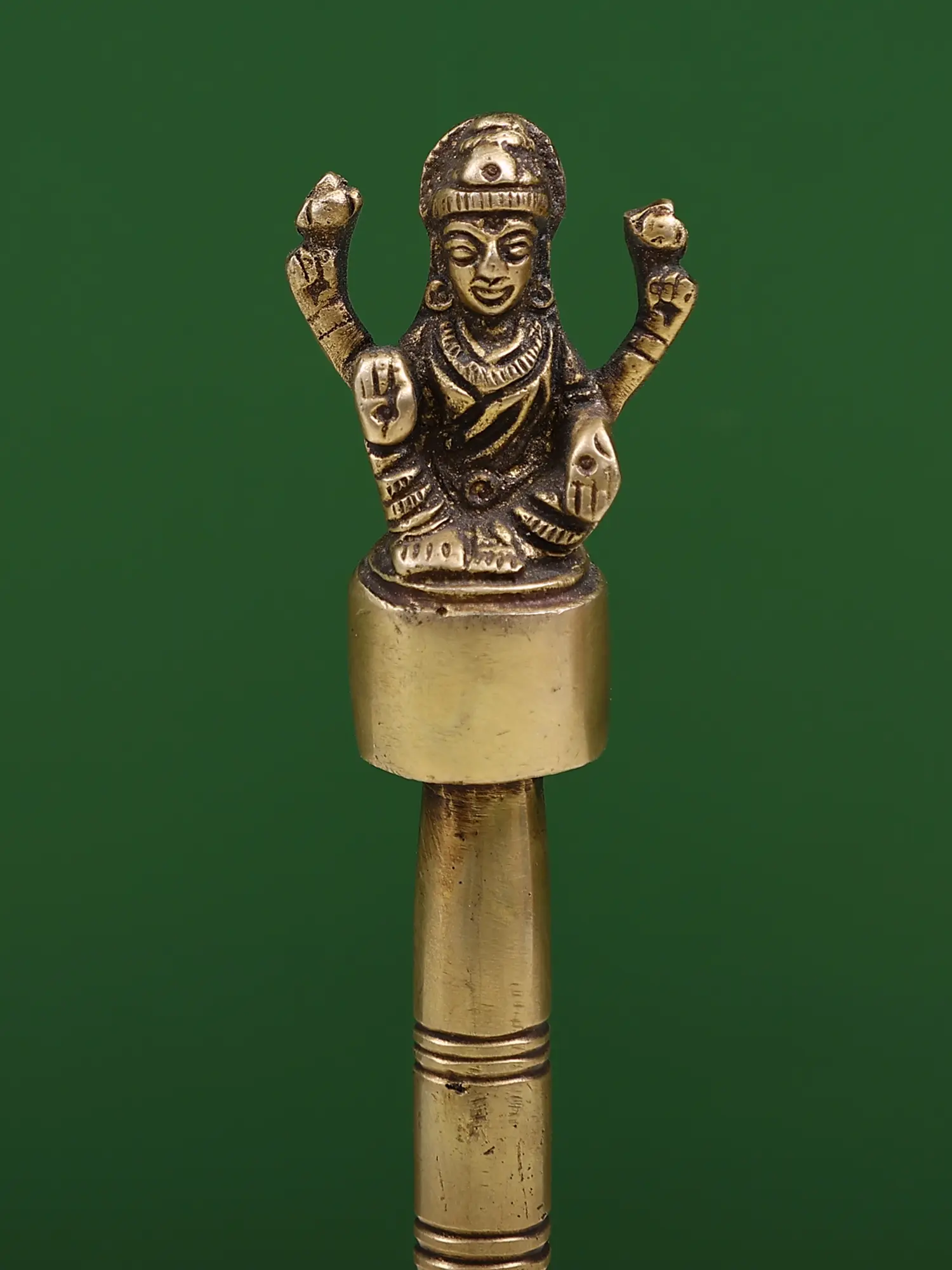 This Lakshmi Handheld Bell is a symbol of prosperity and abundance. In Hindu philosophy, the sound of the bell is believed to attract the goddess of wealth, Lakshmi, into your home, bringing prosperity and good fortune. Ringing this bell during your puja rituals invites the blessings of Goddess Lakshmi, signifying the philosophy that wealth and abundance are a result of devotion and purity of heart. This beautifully crafted brass handheld bell is a reminder that your material and spiritual well-being are interconnected, and your devotion resonates with the divine.