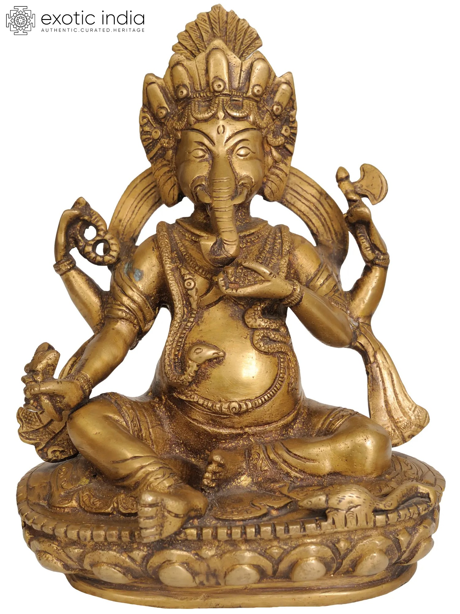 7" Brass Lord Ganesha Idol In Nepalese Style