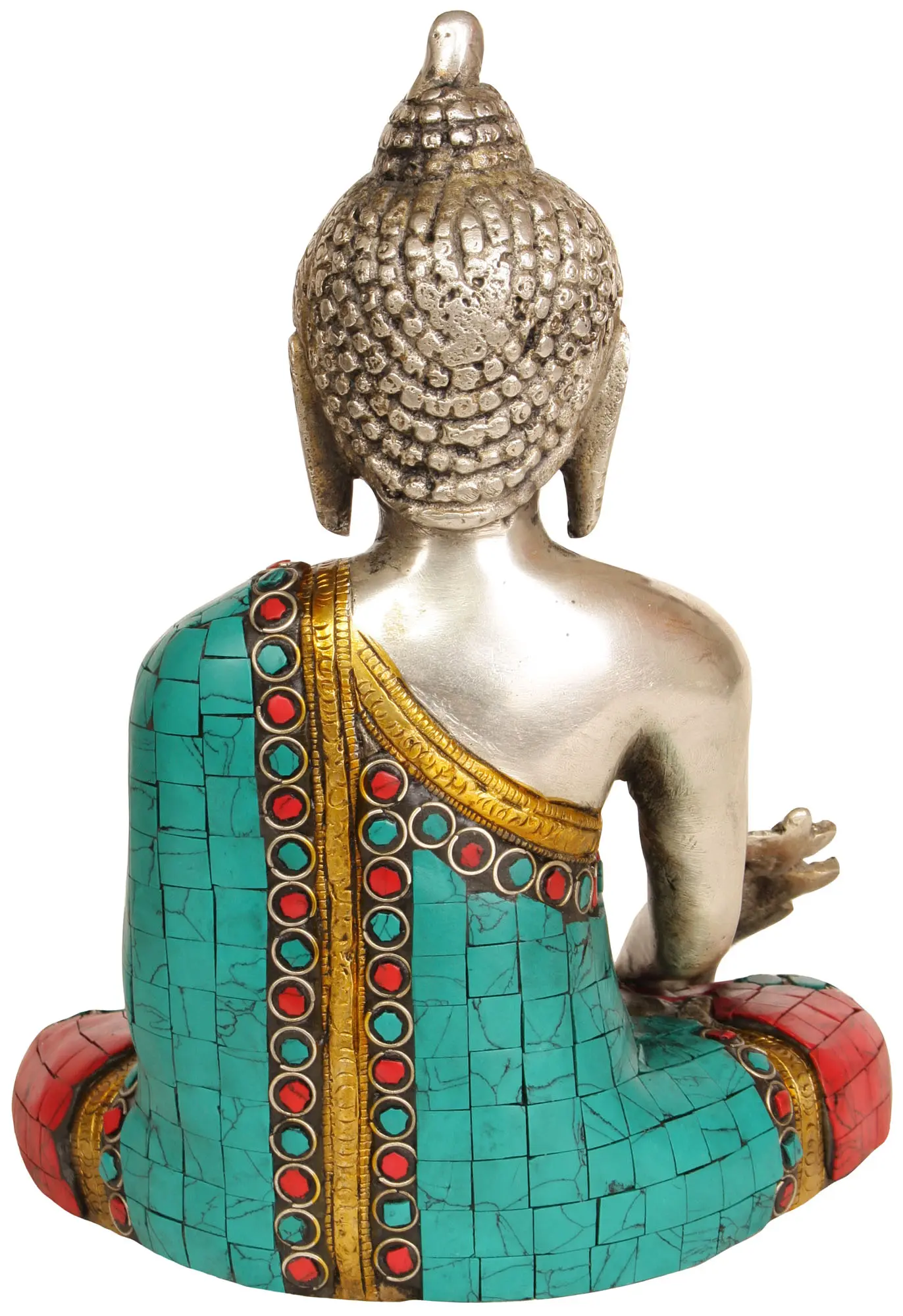 This idol carries the essence of the Tibetan Buddhist belief in the Medicine Buddha's ability to alleviate physical and spiritual afflictions. The amalgamation of brass and inlay details creates an enchanting interplay of light and colour, representing the transformative power of the Medicine Buddha's blessings. Placing this gorgeous piece within your space invites an ambiance of healing and spiritual guidance. As you meditate upon the Medicine Buddha's form, you are drawn into a realm of compassionate healing, an invitation to surrender your worries and find solace in the skies of divine energy.