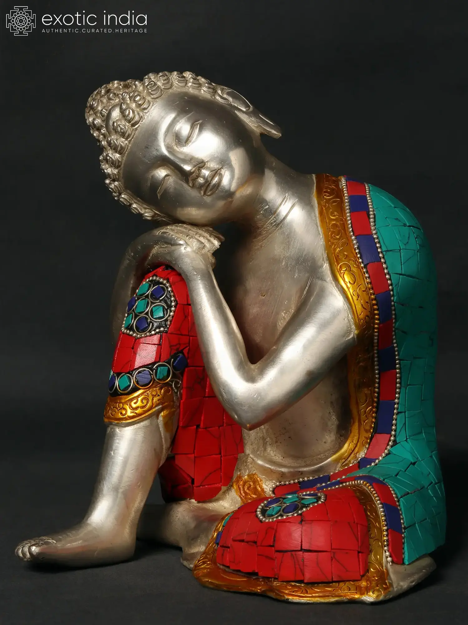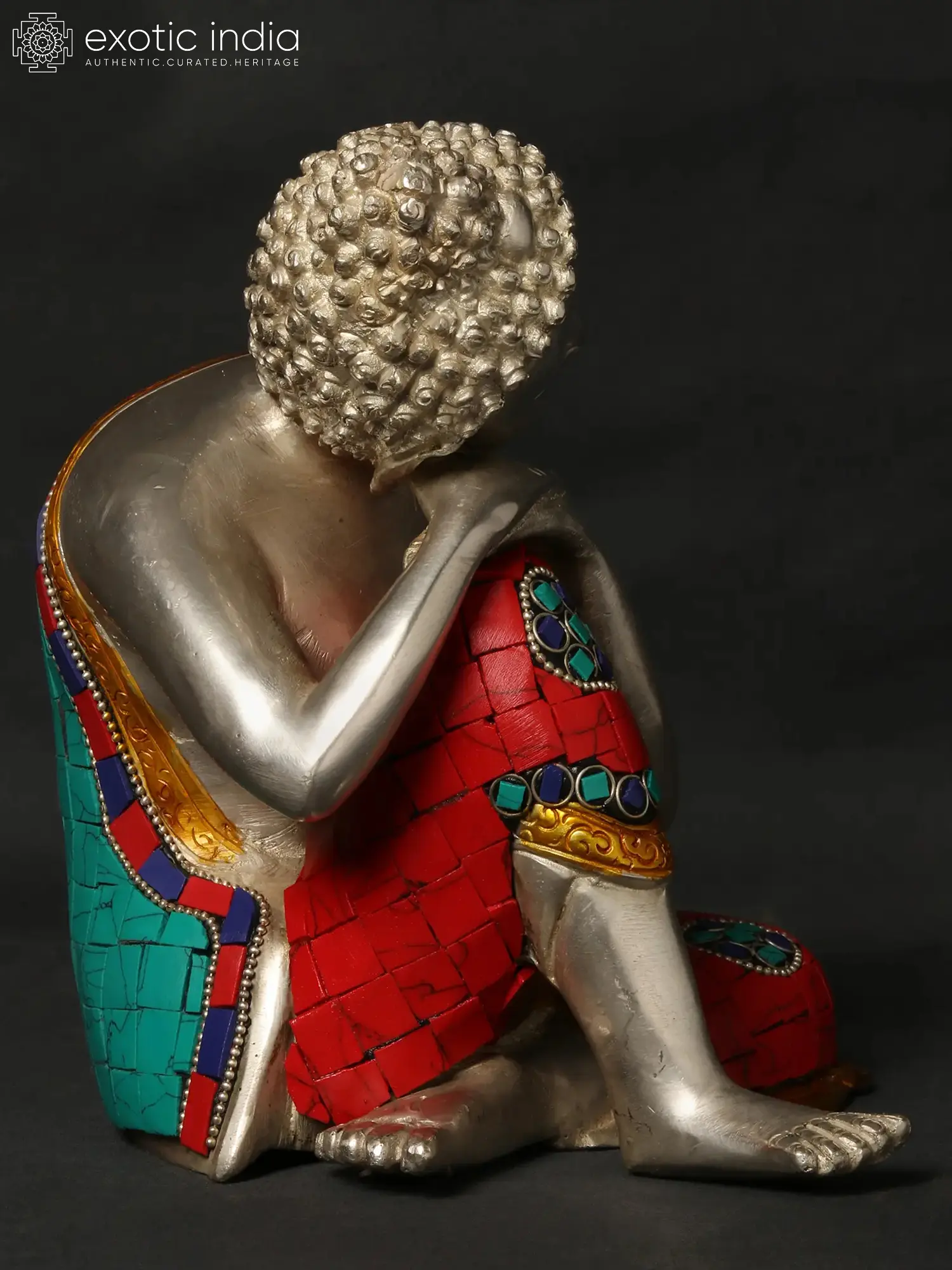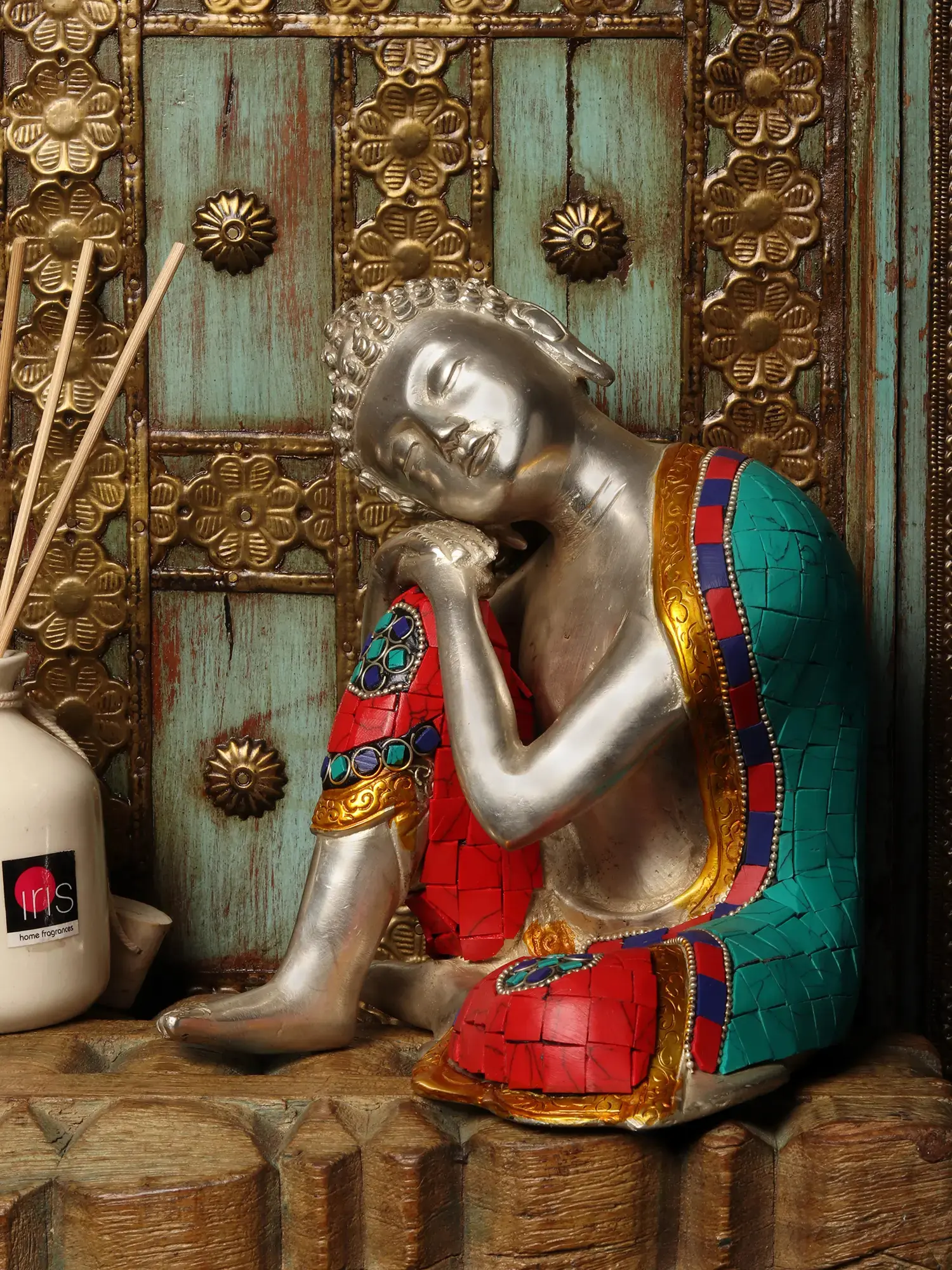 Lord Buddha, in deep contemplation, rests the side of cheek on his knee symbolising a tranquil state of inner realisations. The Buddha's journey to enlightenment was marked by deep introspection and meditation. The sculpture serves as a reminder that the path to wisdom and spiritual awakening lies within, accessible to anyone willing to undertake the journey of self-discovery.