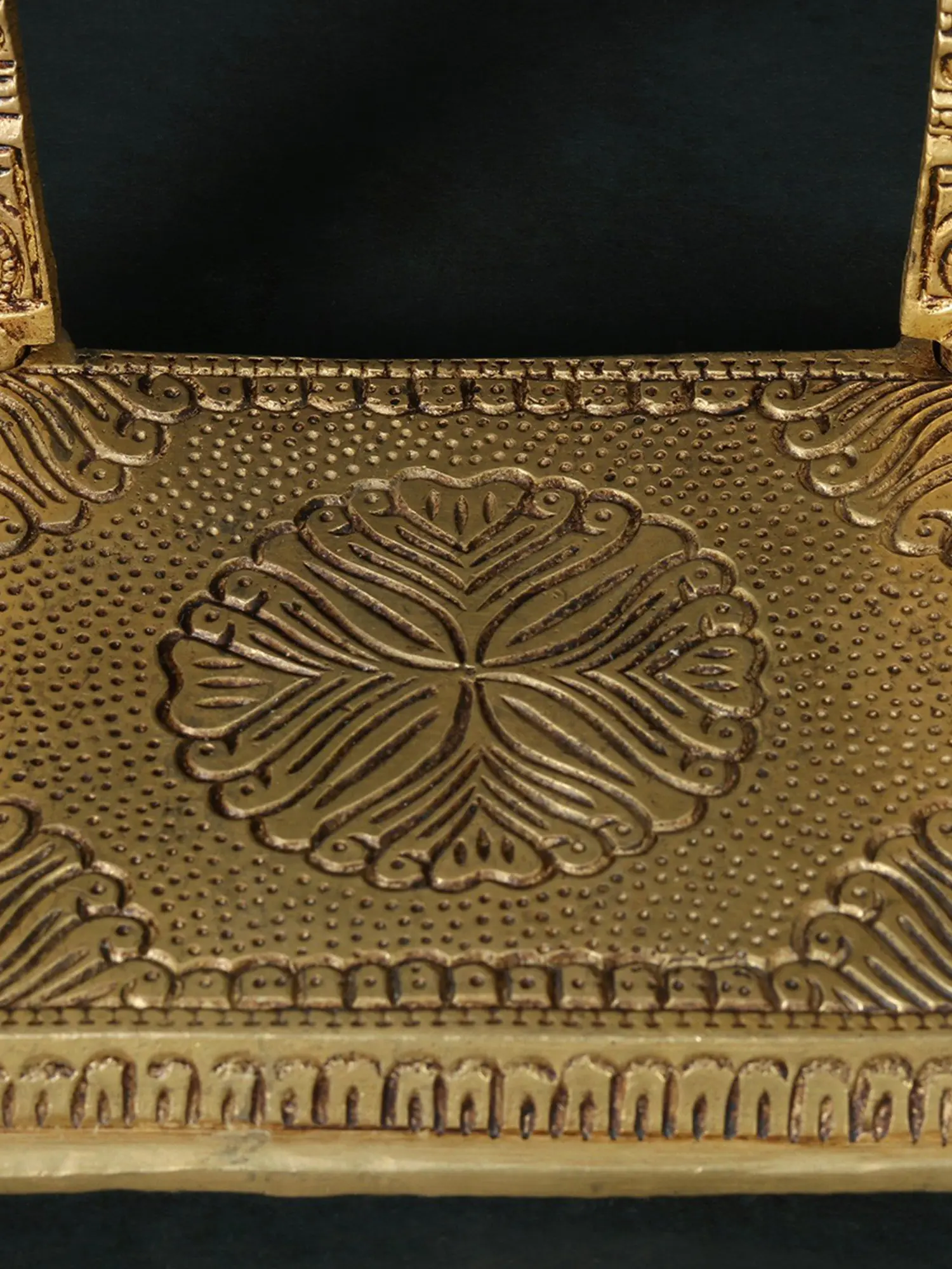 This exquisite brass throne is more than just a decorative piece; it is a symbol of divinity, power, and sacred space. Crafted from high-quality brass, its rich golden hue evokes a sense of regality and timeless elegance. The intricate detailing speaks to the mastery of traditional Indian craftsmanship, where every curve and contour is imbued with meaning and artistry.