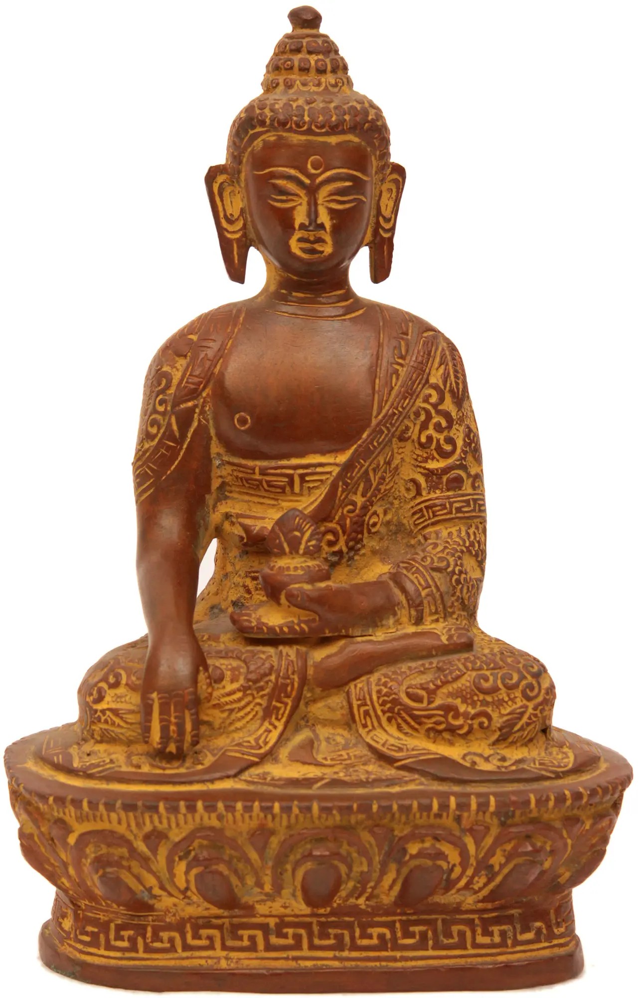 Seated in the Vajrasana pose, Buddha's hands rest gently in his lap, palms facing up, denoting meditation and receptivity. The intricately detailed robes, adorned with auspicious symbols like the lotus flower and endless knots, convey the depth of spiritual significance and the promise of his enlightenment. Let this sculpture serve as a reminder of the transformative power of inner stillness and the potential for spiritual awakening.