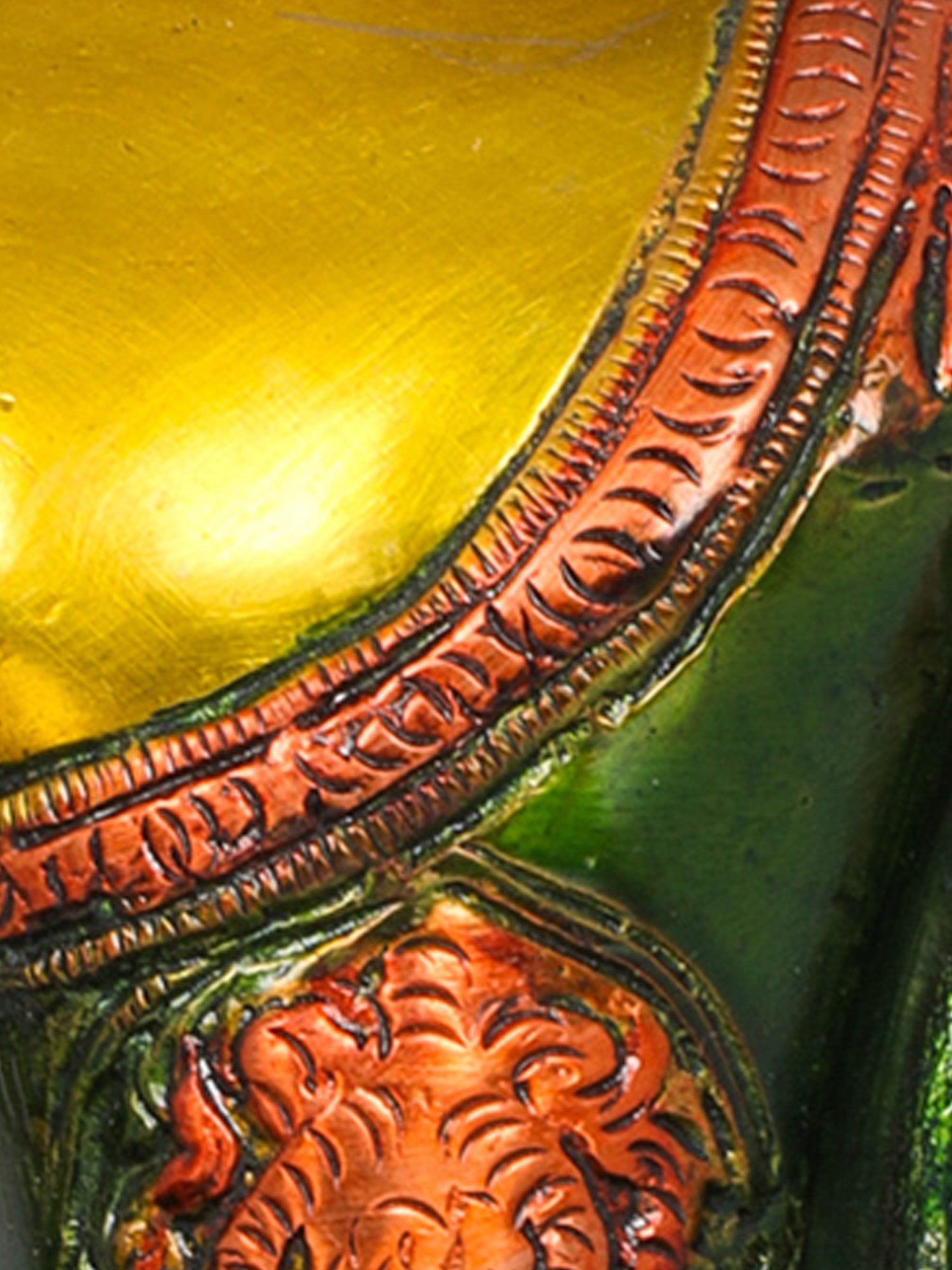• In case you have a colored brass statue, you may apply mustard oil using a soft brush or clean cloth on the brass portion while for the colored portion of the statue, you may use coconut oil with a cotton cloth.