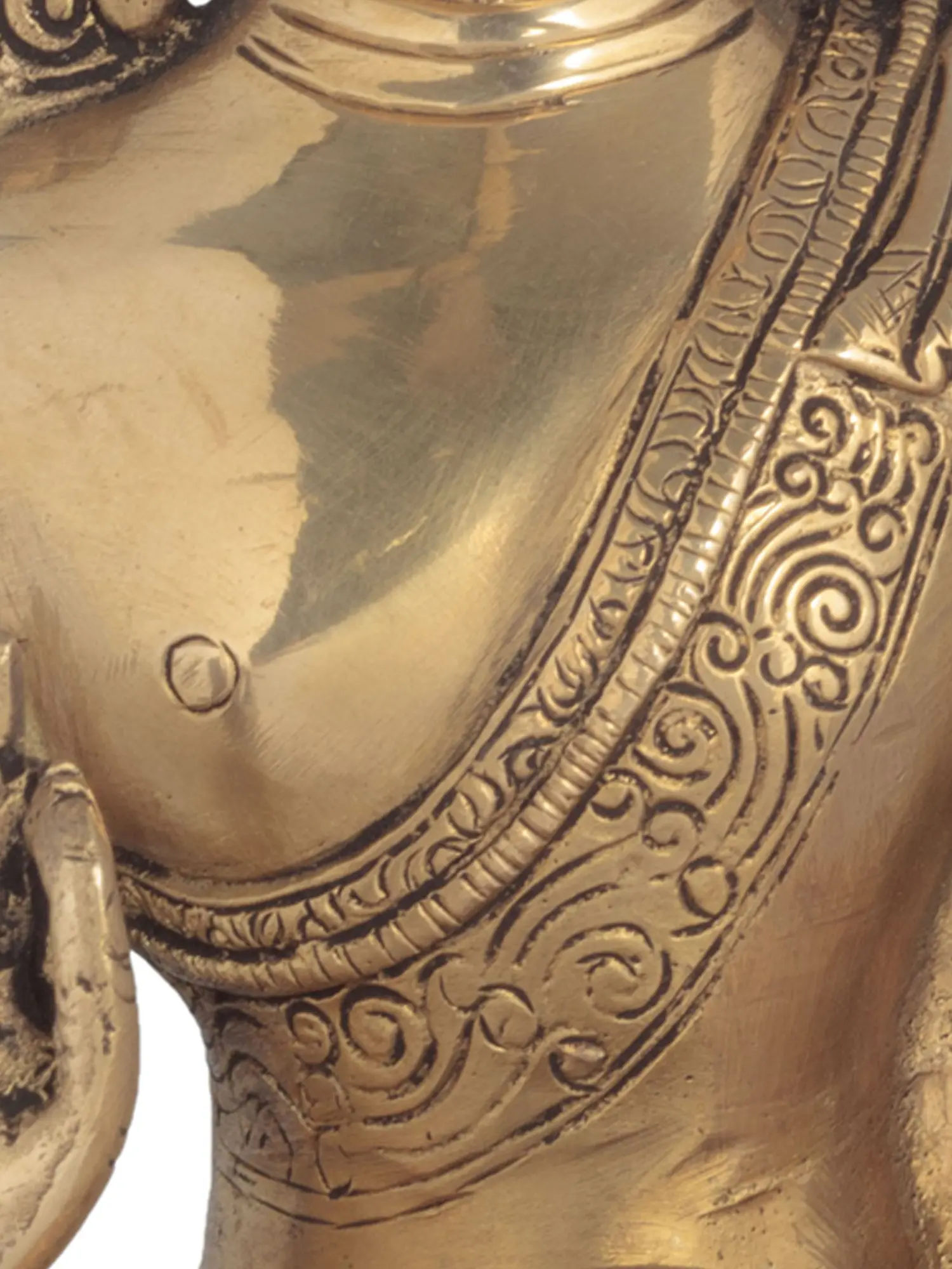 This 7-inch brass statue is a testament to the enduring legacy of Buddhist art and philosophy. Its presence can transform any space into a sanctuary of peace and reflection. Whether you are a practitioner of Buddhism, an admirer of fine art, or someone seeking to bring a sense of tranquility into your life, this statue offers a profound connection to spiritual wisdom and artistic mastery. The intricate detailing on the robes and the serene expression make it a captivating piece that draws the viewer into a meditative state. It is a beautiful embodiment of the path to liberation, presented through the skilled hands of Indian artisans who have preserved these sacred traditions for centuries.