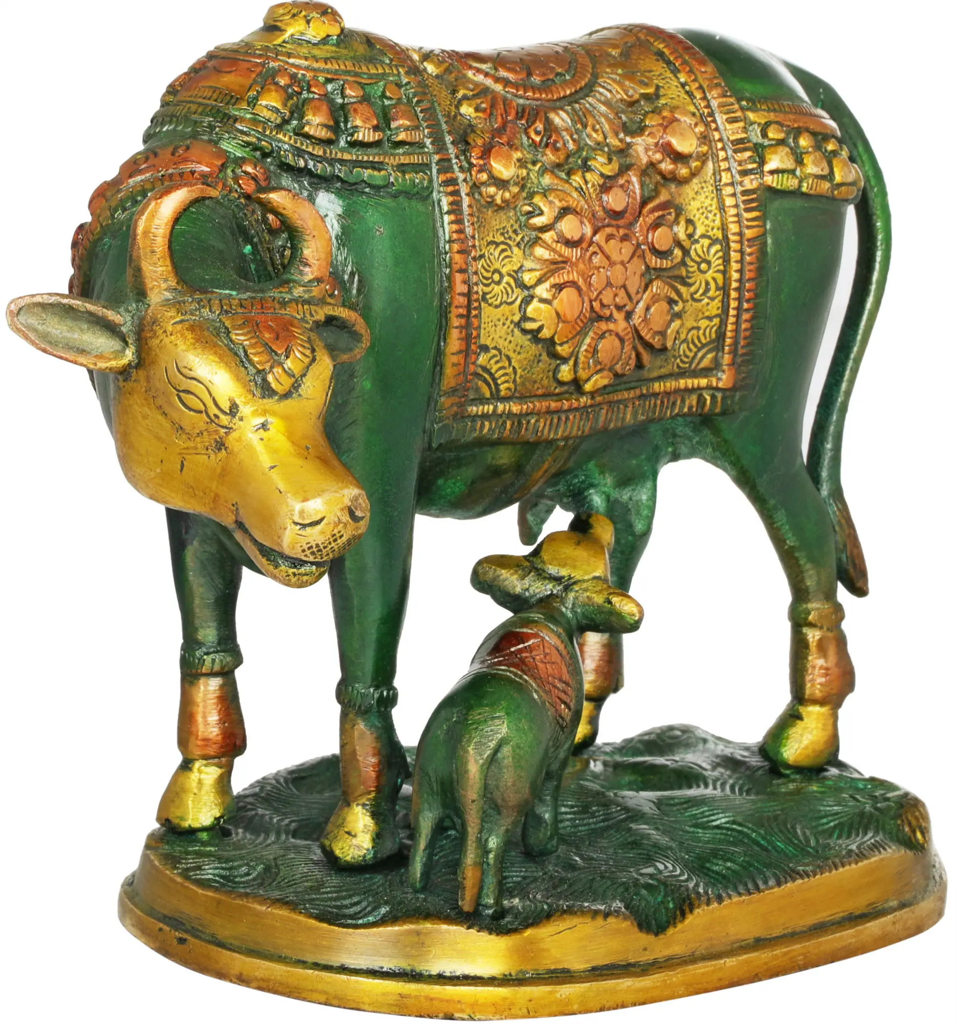 Sculpted in golden and brown tones, this sculpture captures the soul of the mother cow and her baby with fine features and superb finish. This wonderful piece of art honours India’s rich cultural history.