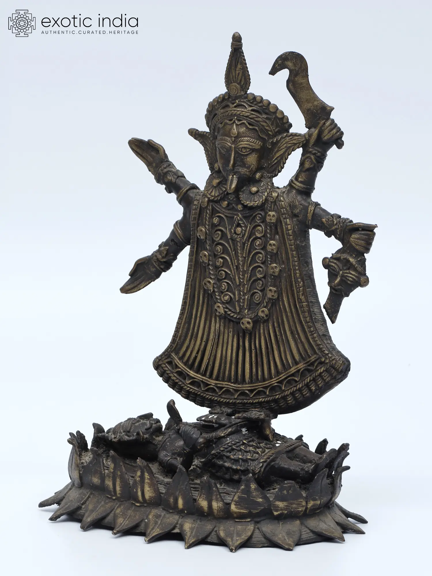 This statue embodies the essence of Dakshin Kali, who is revered as the protector and destroyer of evil forces.