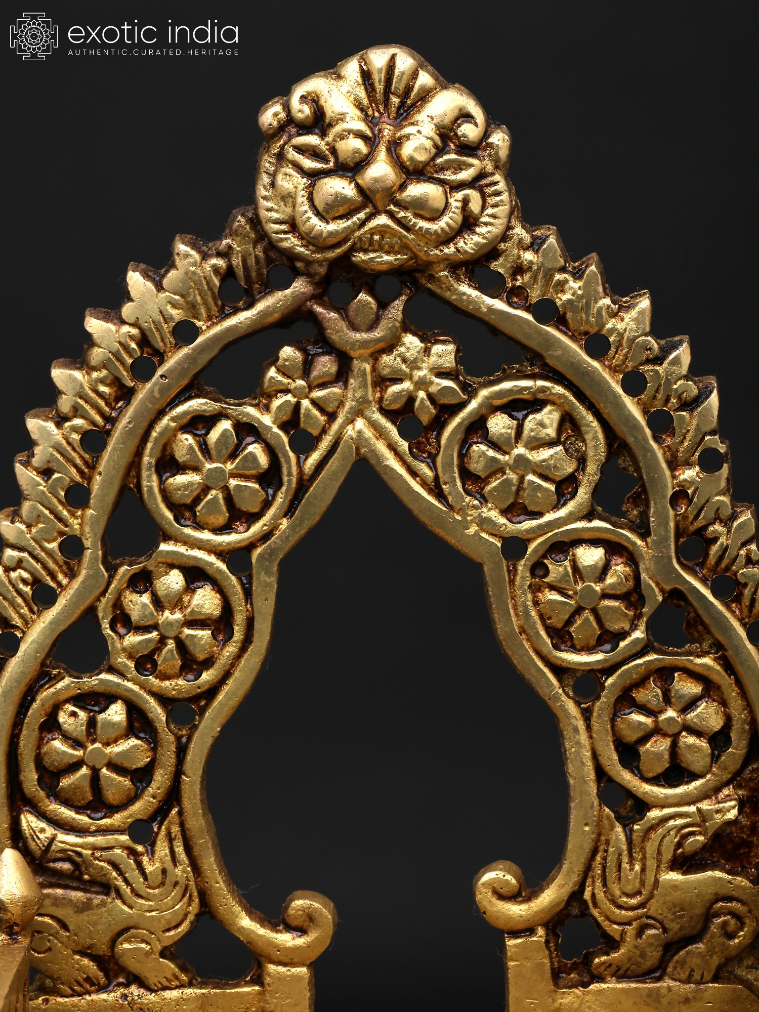4" Small Superfine Goddess Rajarajeshvari Seated on Kirtimukha Throne | Brass Statue